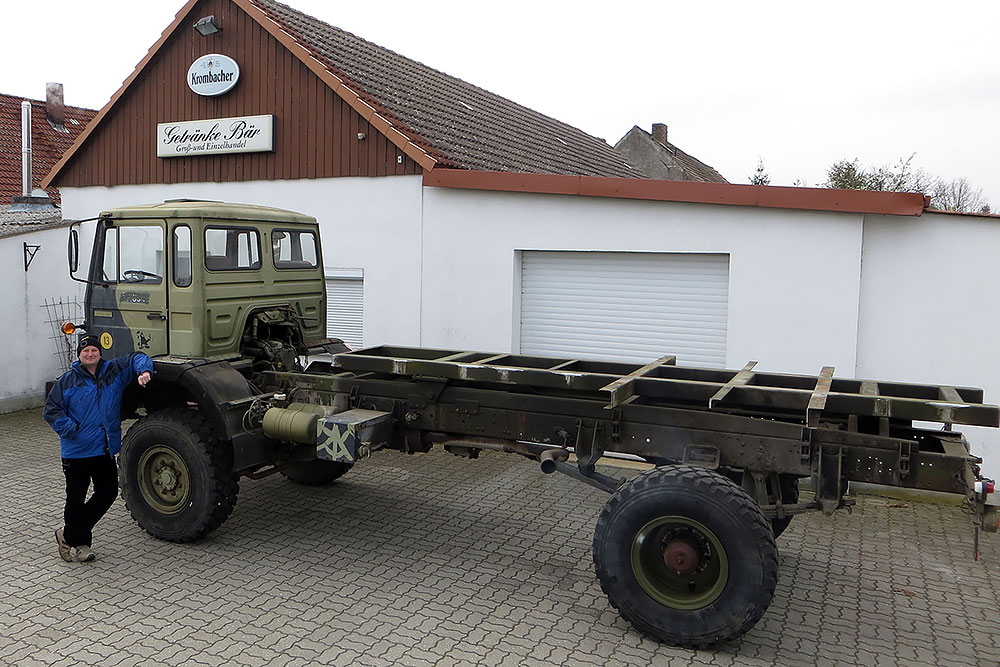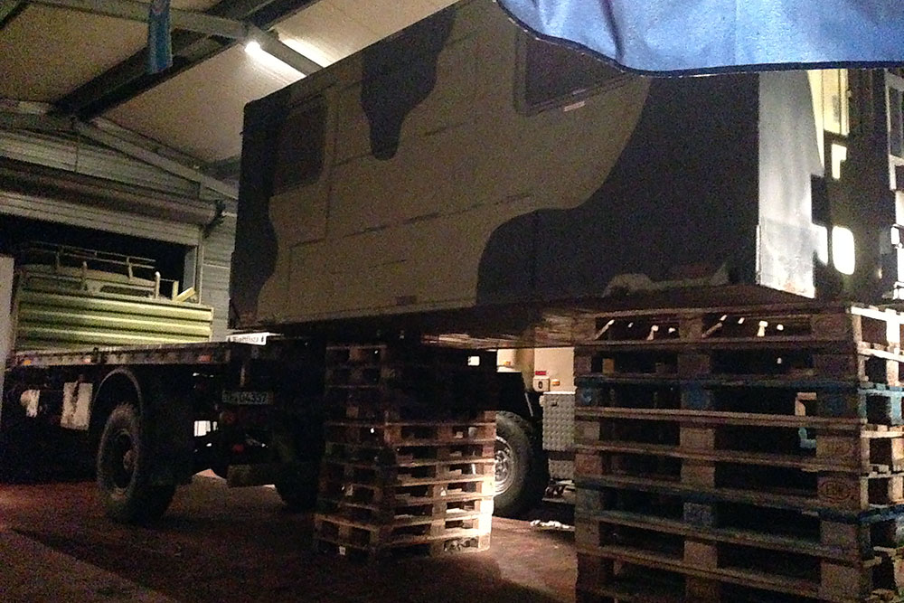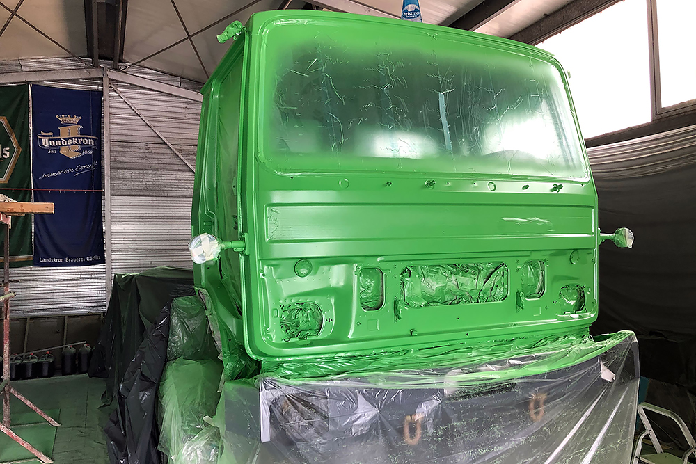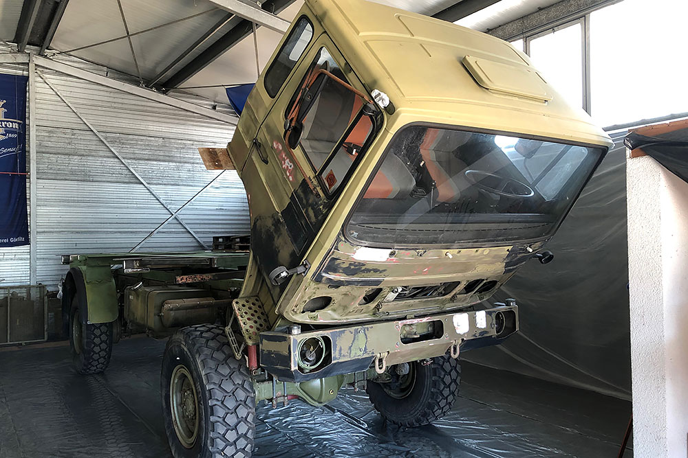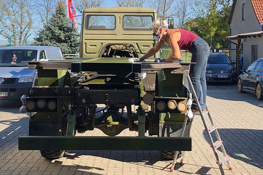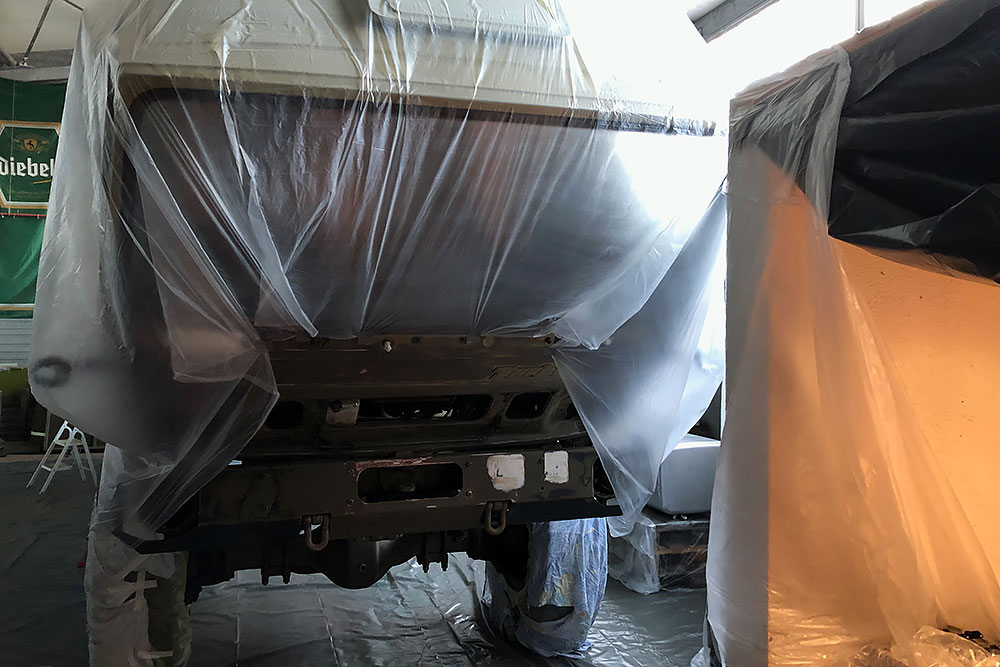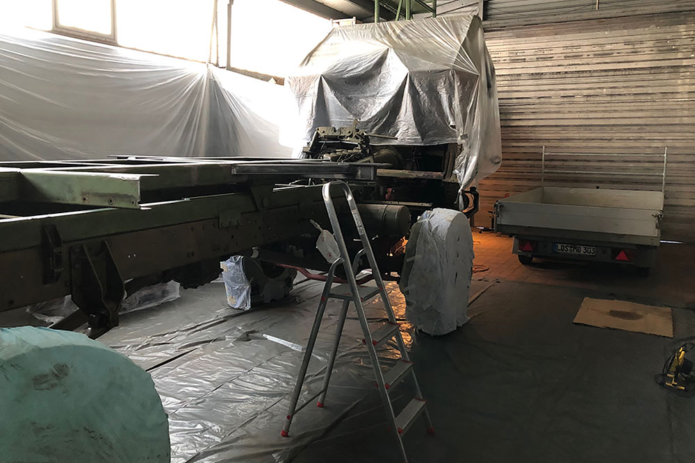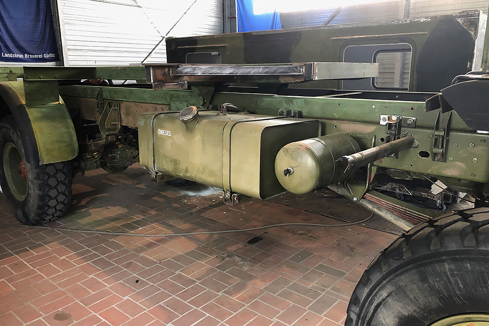 August 2019 - Der LKW wurde von den Soldaten einmal in Wachs getaucht! Es folgt daher vor der erneuten Lackierung wochenlanges reinigen, schleifen, spachteln, reinigen, schleifen, spachteln, reinigen, schleifen, spachteln, reinigen, schleifen, spachteln... würg...!