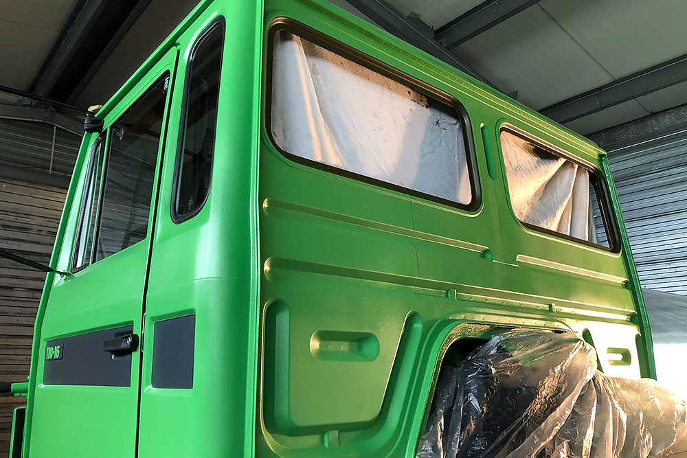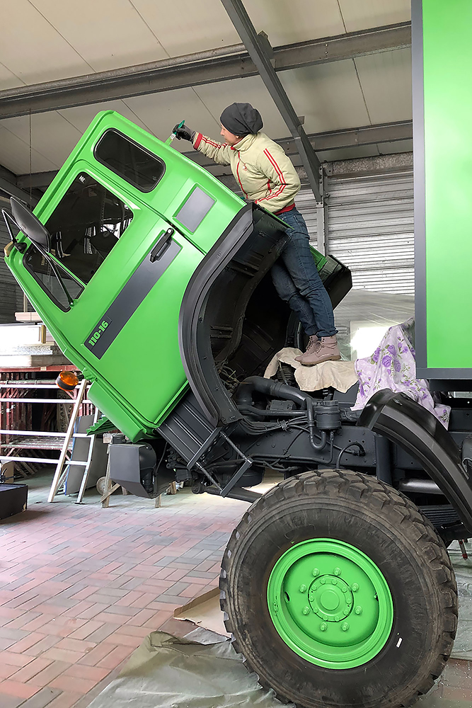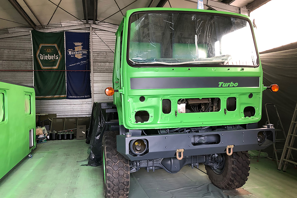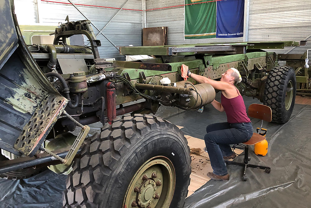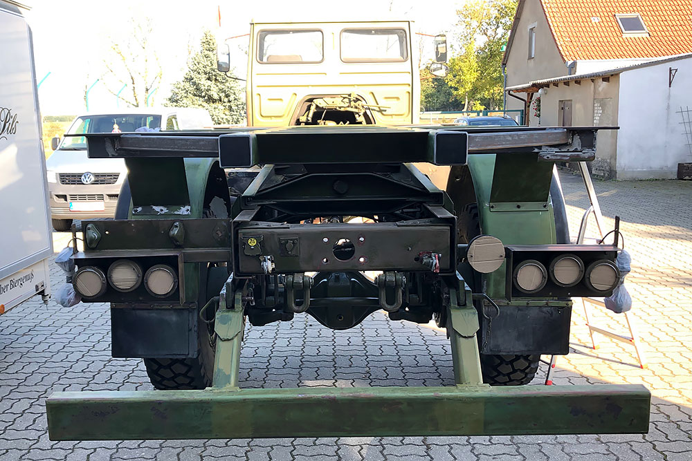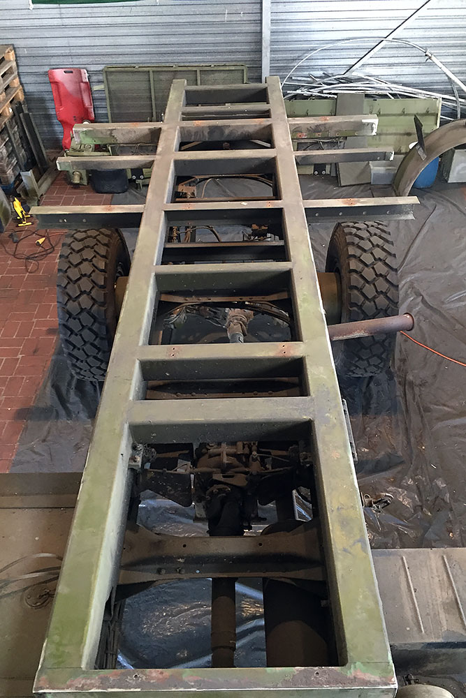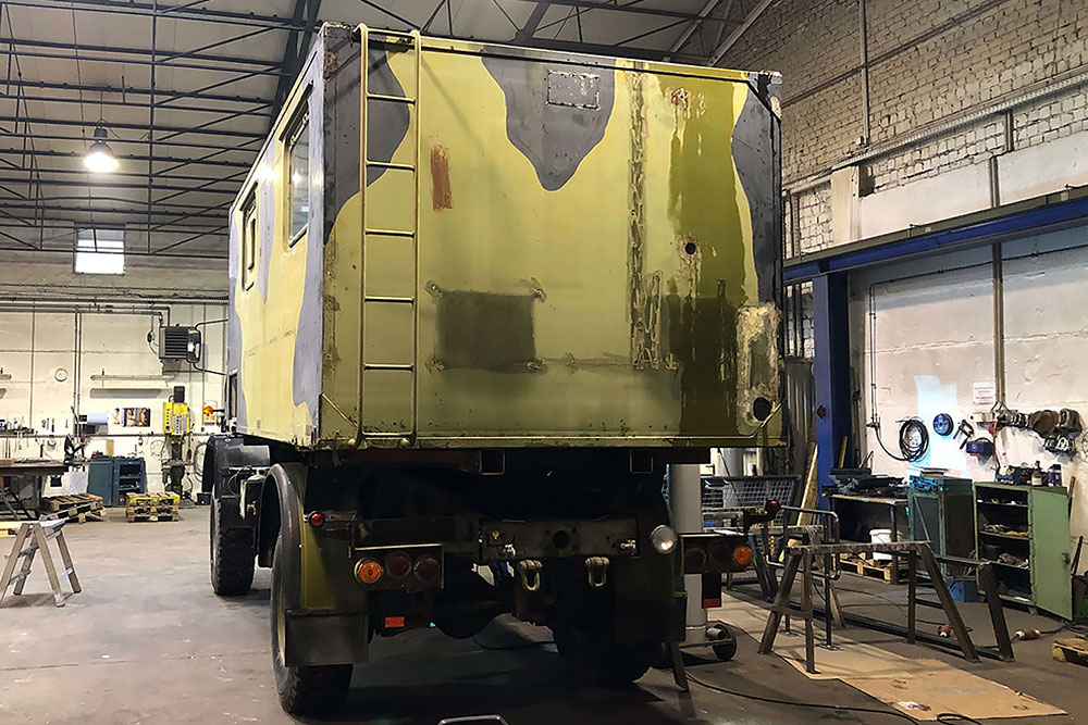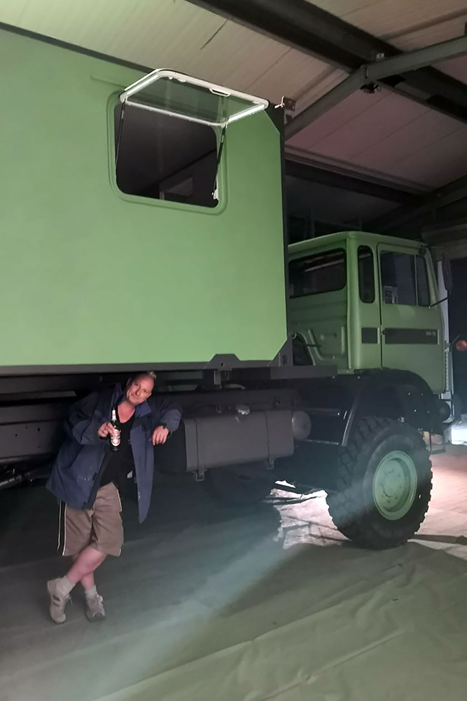 August 2019 - Der LKW wurde von den Soldaten einmal in Wachs getaucht! Es folgt daher vor der erneuten Lackierung wochenlanges reinigen, schleifen, spachteln, reinigen, schleifen, spachteln, reinigen, schleifen, spachteln, reinigen, schleifen, spachteln... würg...!