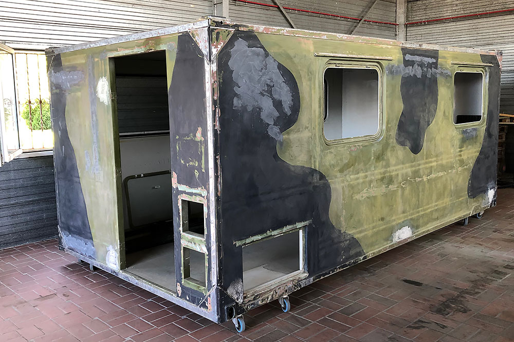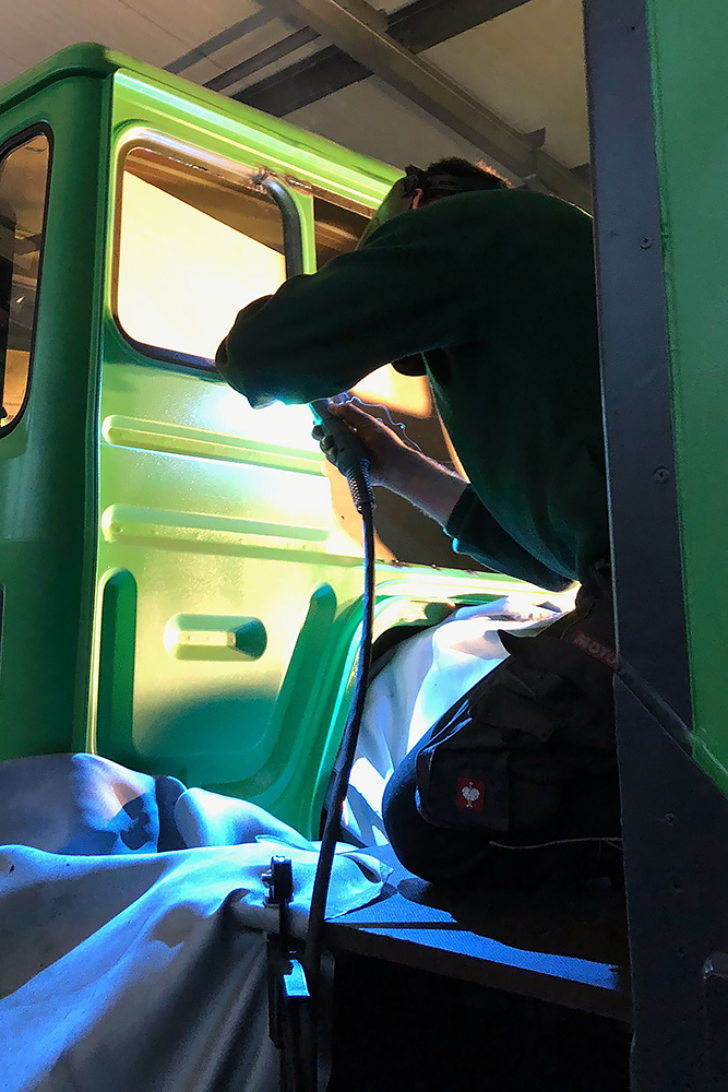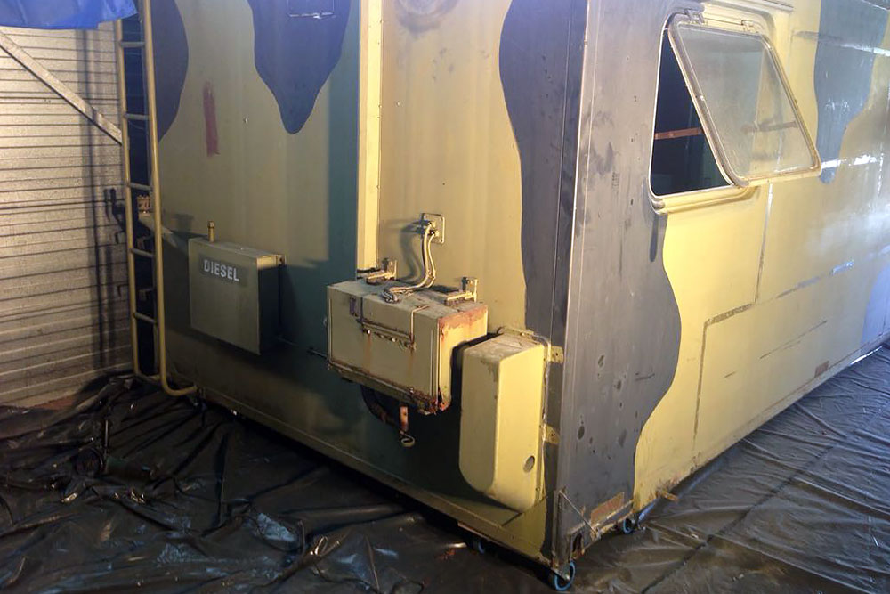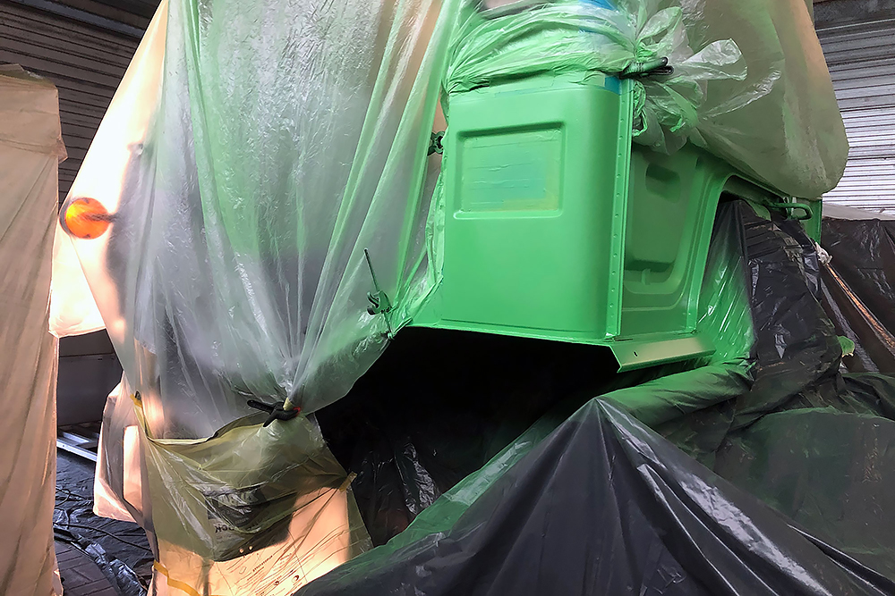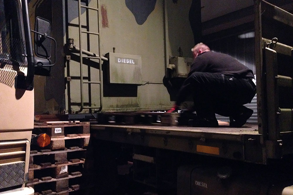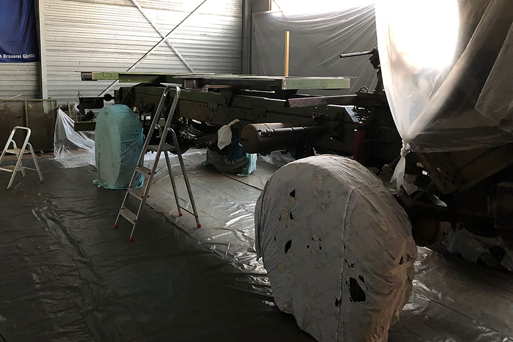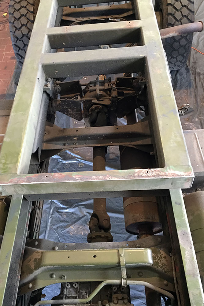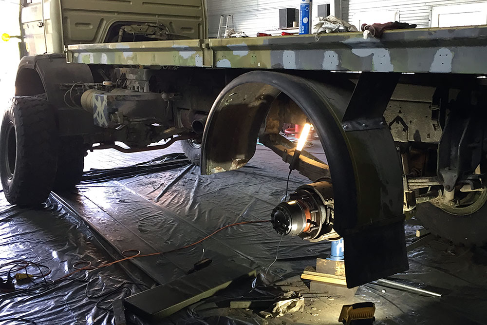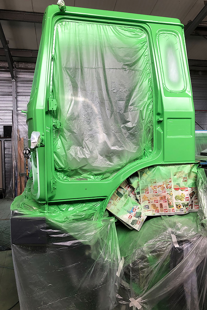 August 2019 - Der LKW wurde von den Soldaten einmal in Wachs getaucht! Es folgt daher vor der erneuten Lackierung wochenlanges reinigen, schleifen, spachteln, reinigen, schleifen, spachteln, reinigen, schleifen, spachteln, reinigen, schleifen, spachteln... würg...!