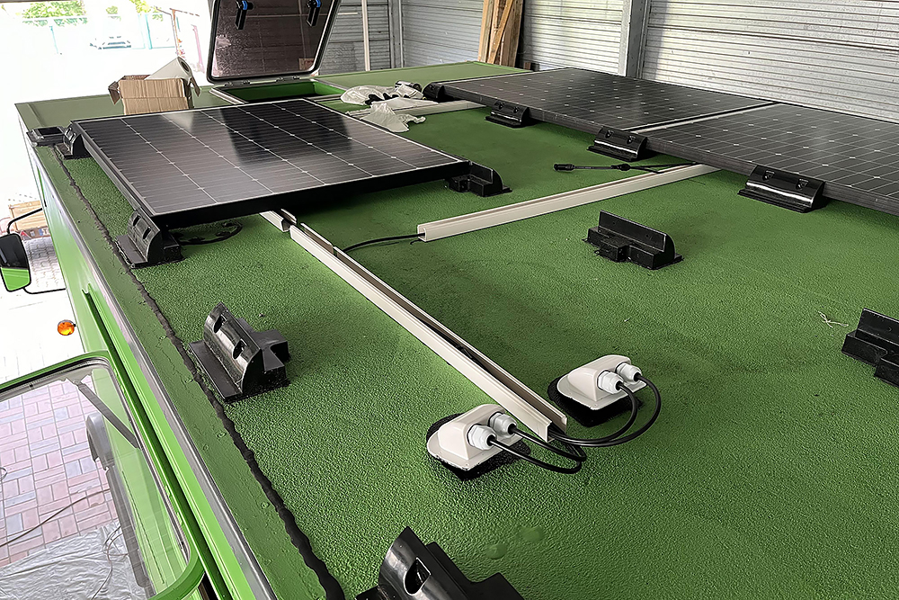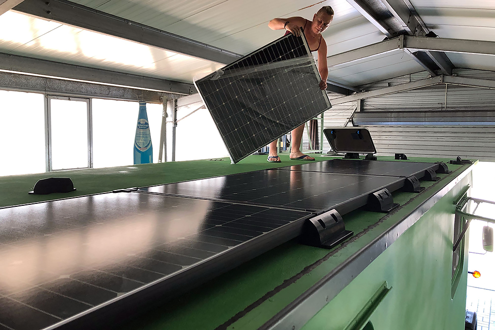 Für Strom ist auch bereits gesorgt, 8 x 180Wp, 4 x 160Ah LiFePO: