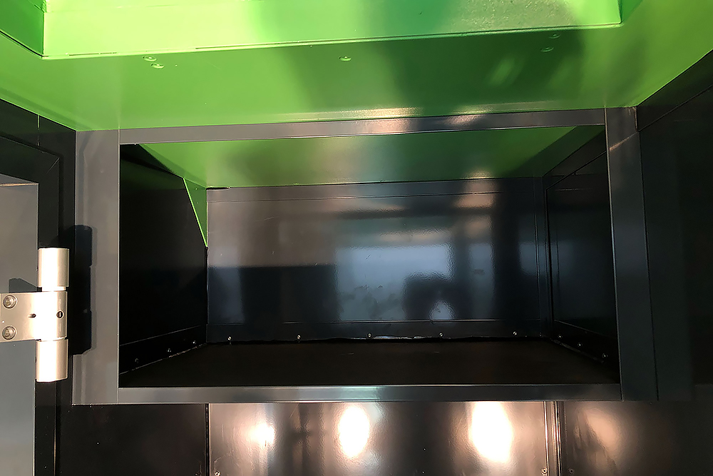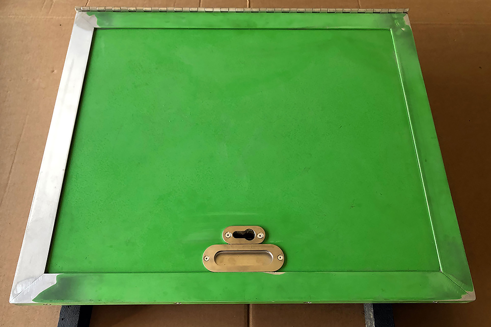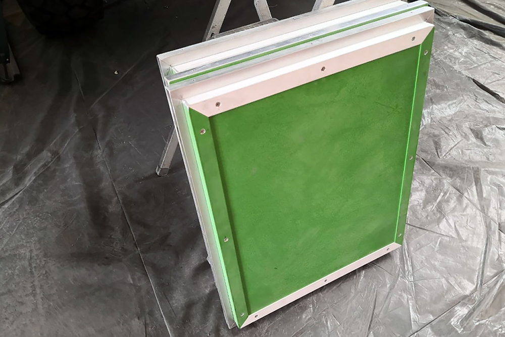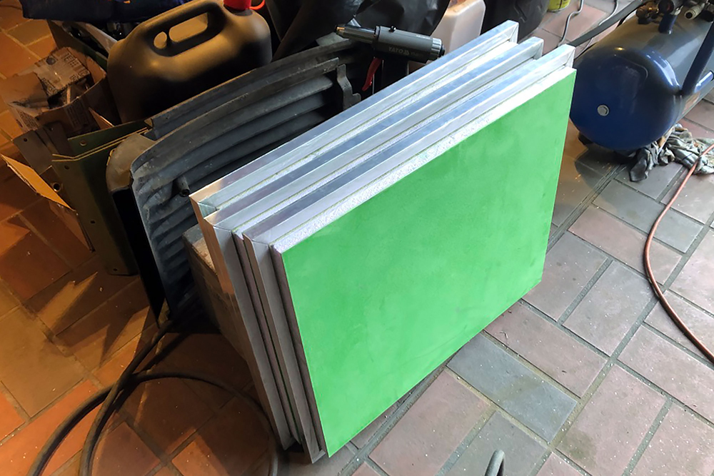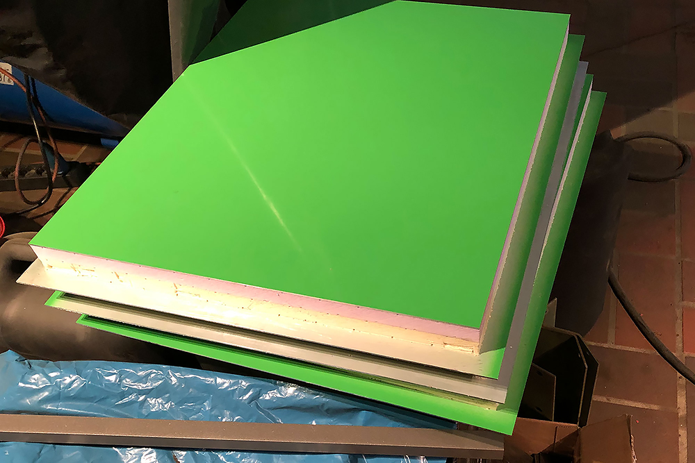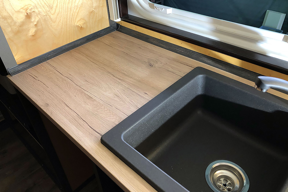 Die Schranktüren fertigen wir aus leichten Alu-Verbundplatten. Im Hängeschrank in der Küche findet dahinter auch noch ein versteckter Kosmetikspiegel seinen Platz: