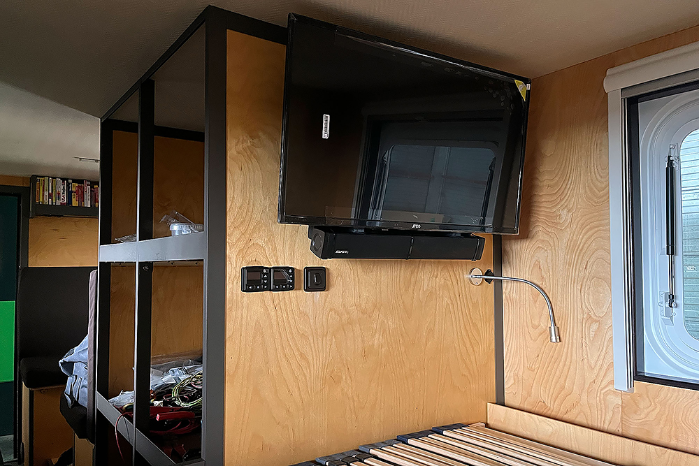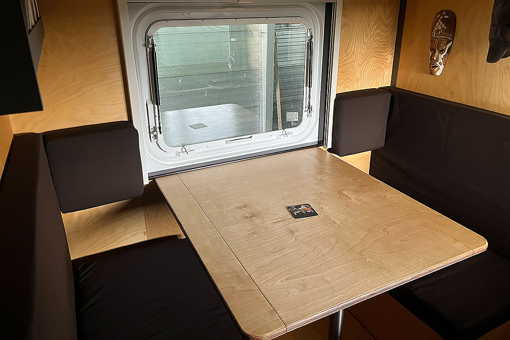 07.05.2024 Der TÜV hat uns nicht geschieden und wir starten mit den letzten Arbeiten, wie zum Beispiel der Fertigstellung unserer Sitzbänke und dem Tisch. Jede Bank erhält seitlich noch eine 230V- und eine 65W USB C-Dose.