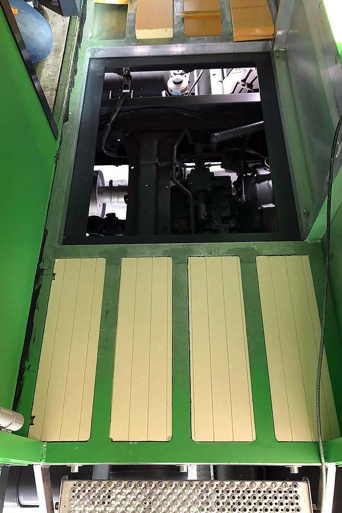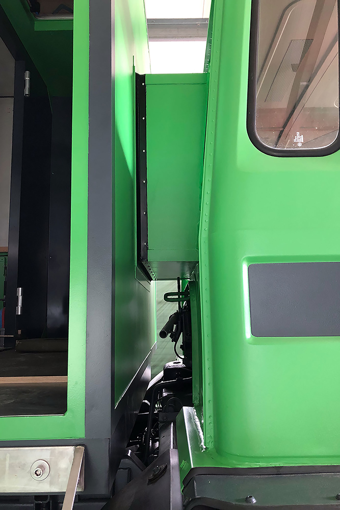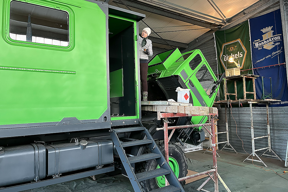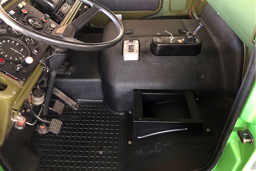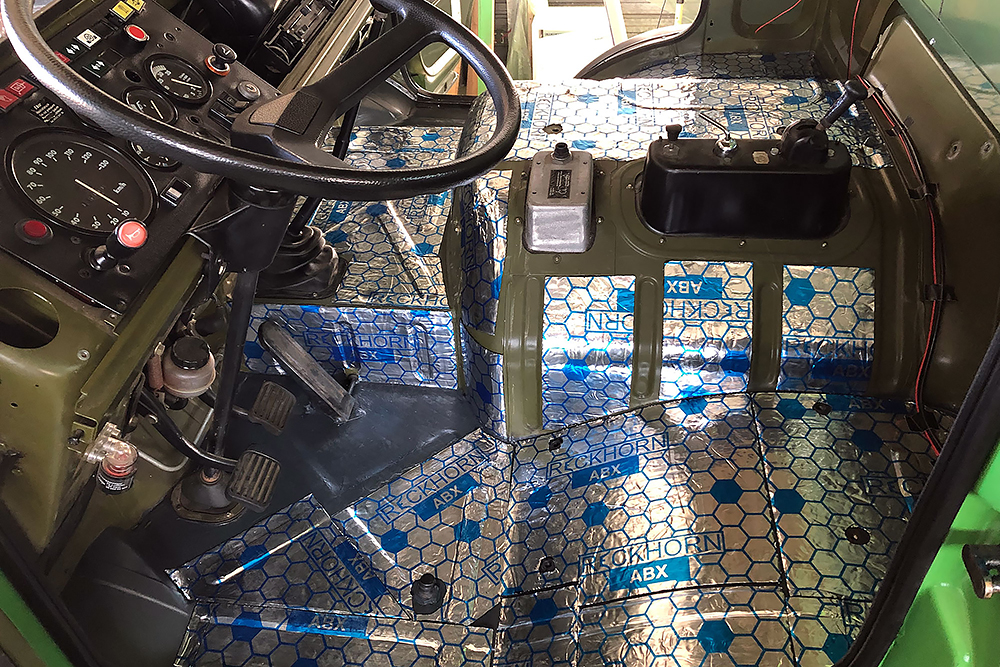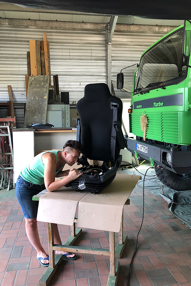 Die Kabine haben wir schallisoliert und durch 2 luftgefederte ISRI-Sitze, die aus Holland eingeflogen kamen, etwas bandscheibenfreundlicher gestaltet: