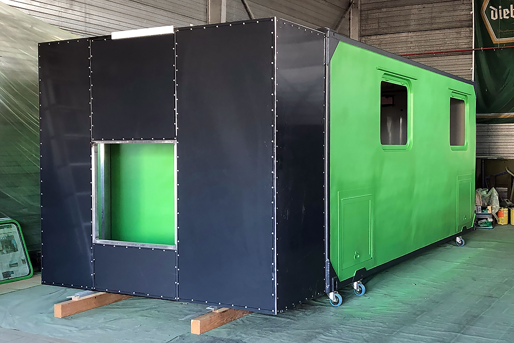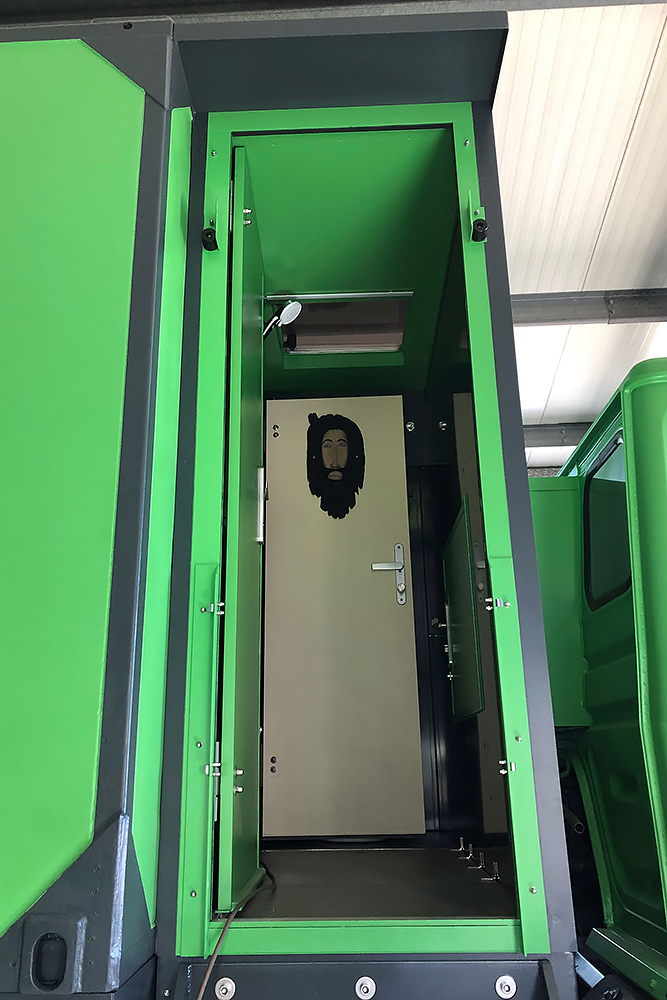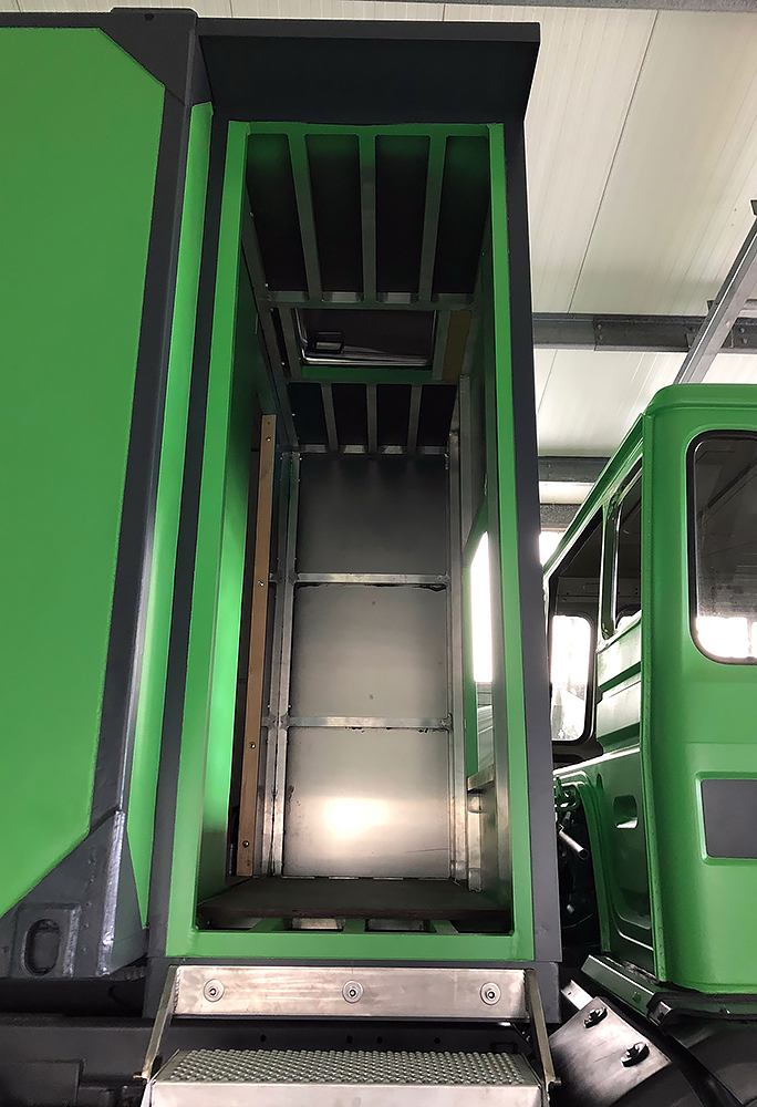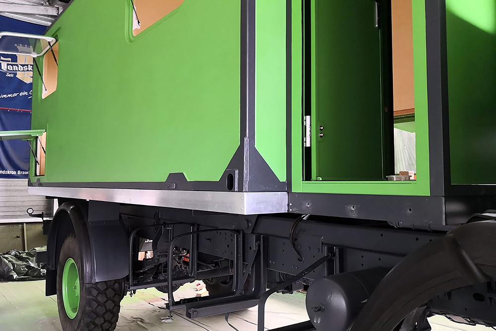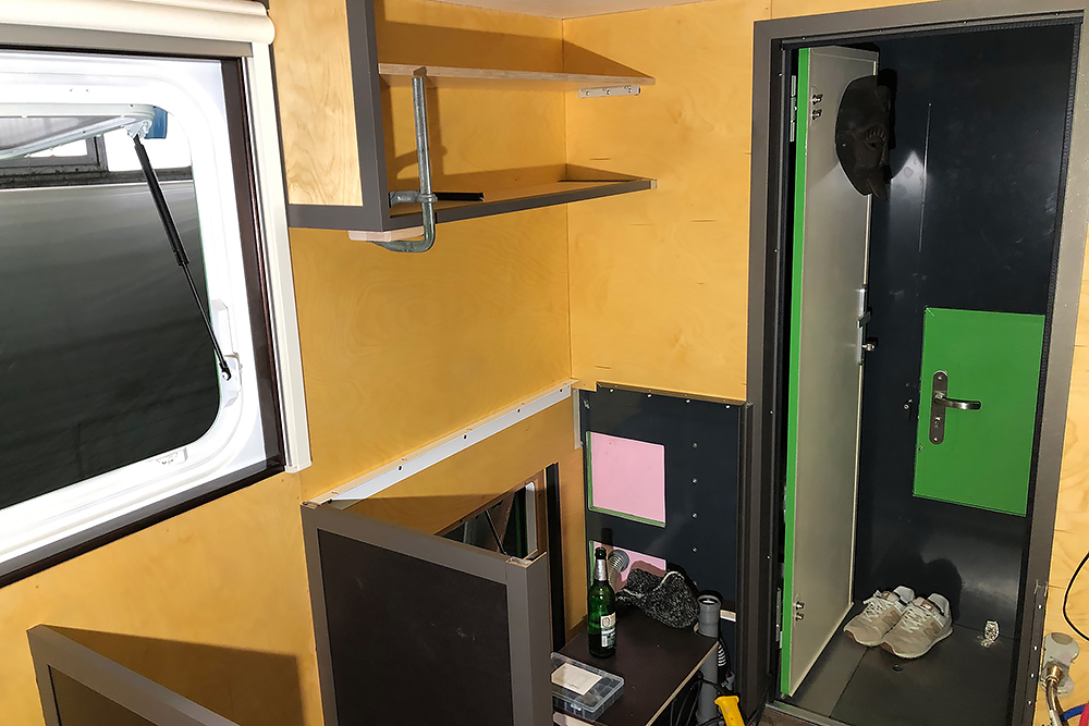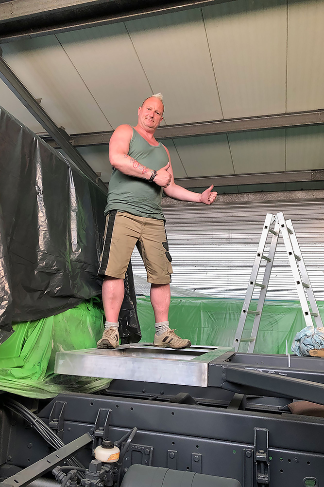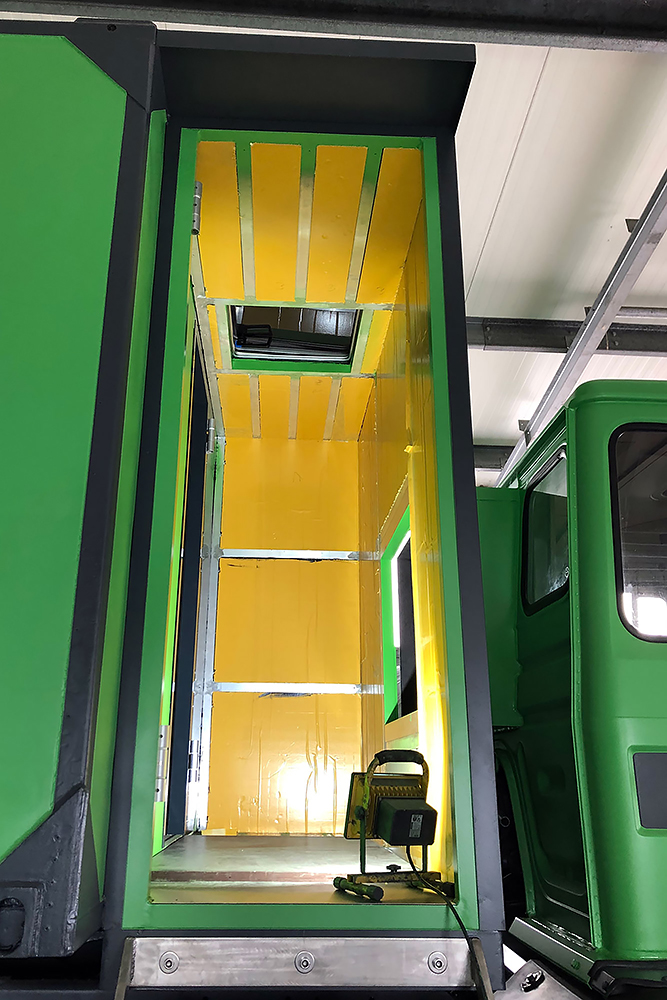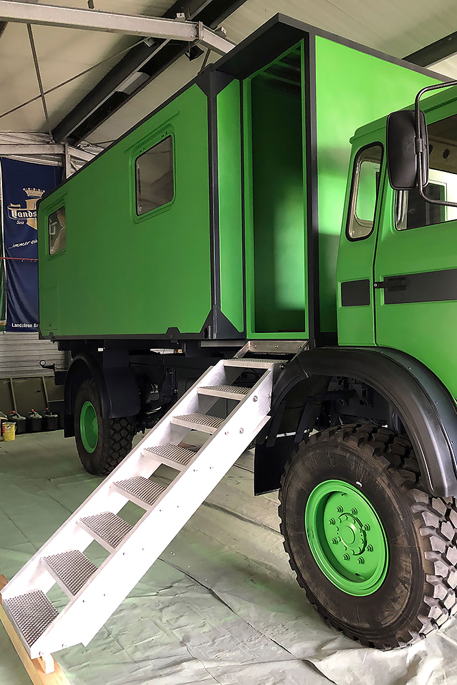 13.07.2020 - Aus einer Idee ist mal wieder Realität geworden: die Verlängerung unseres Wohnkoffers mit Öffnung für den Einstieg links, für den Durchgang zur Fahrerkabine vorn, für den Dachausstieg oben, für die Duschwanne unten und zum Eingang in den eigentlichen Wohnkoffer hinten!