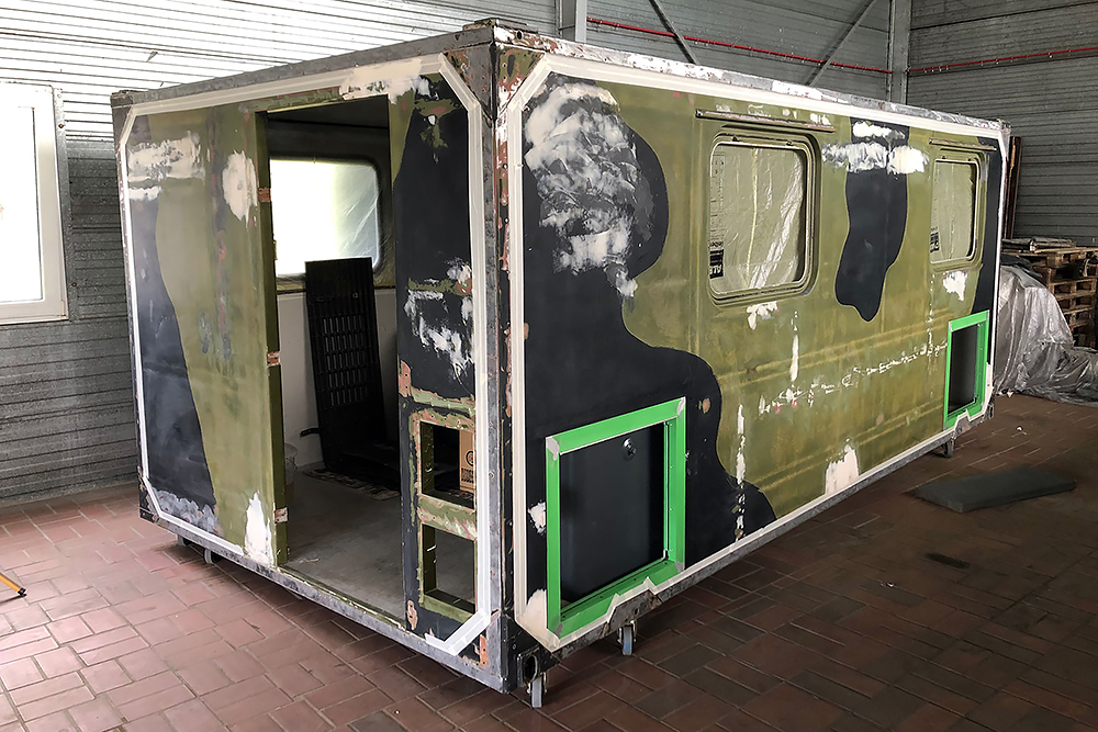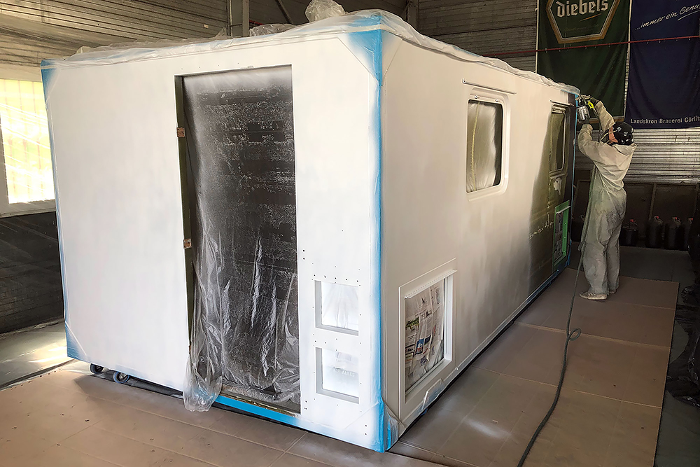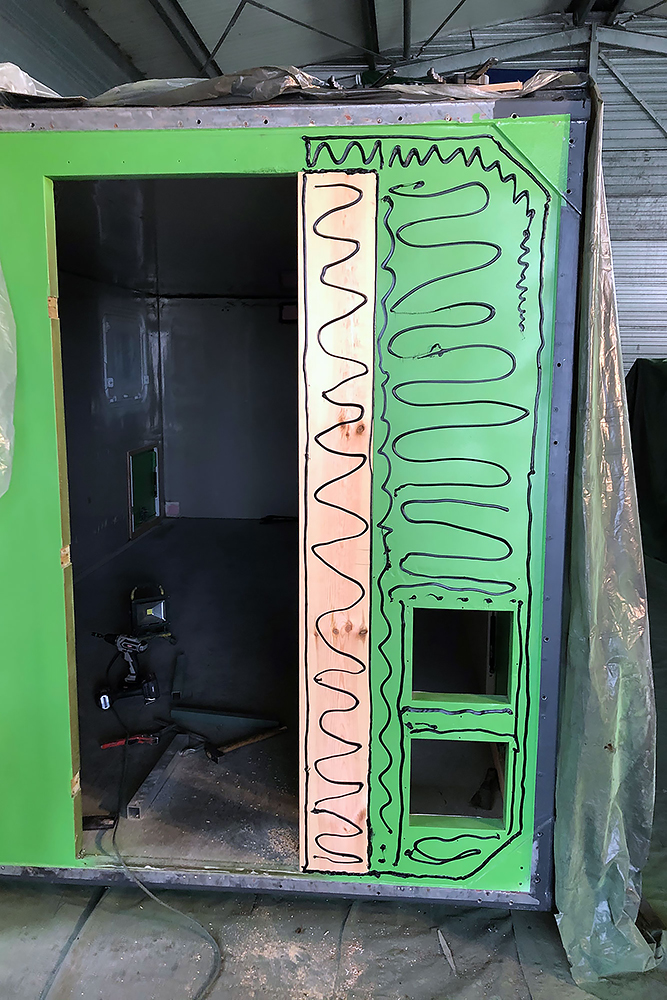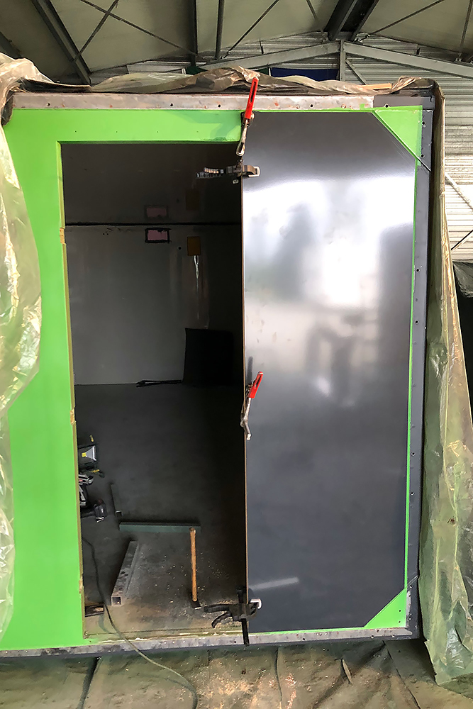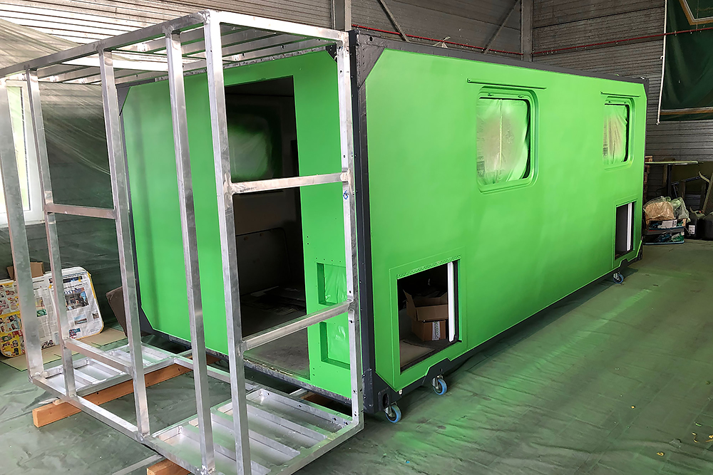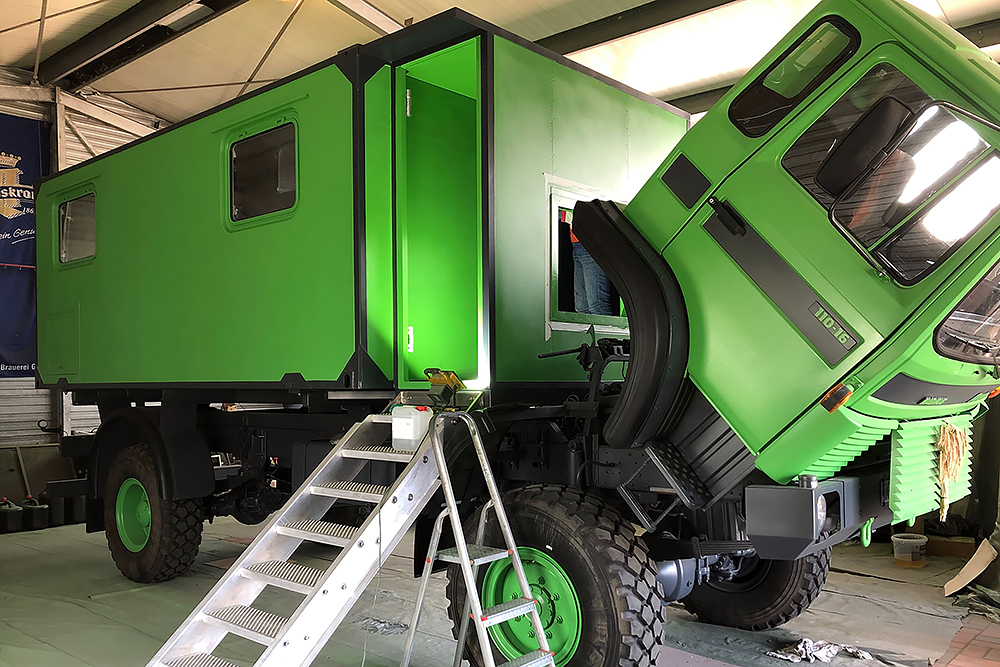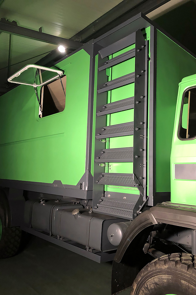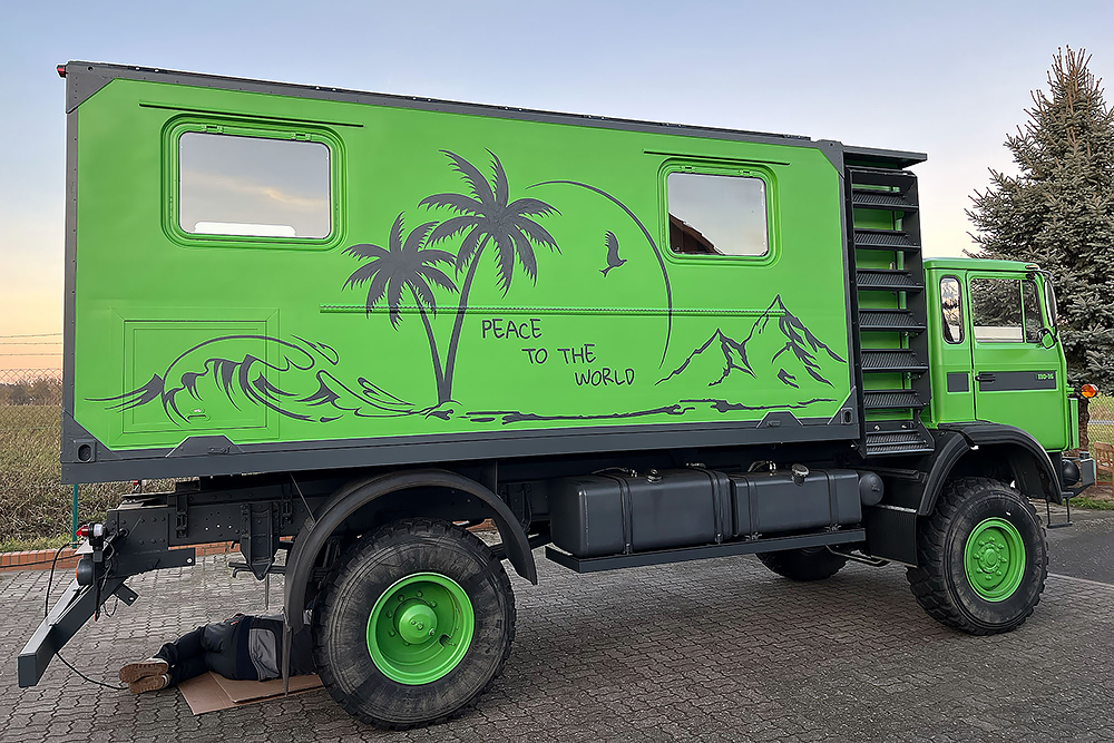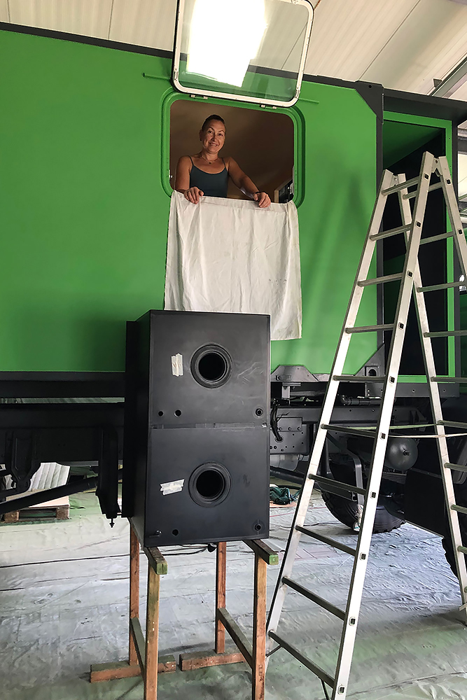 13.07.2020 - Aus einer Idee ist mal wieder Realität geworden: die Verlängerung unseres Wohnkoffers mit Öffnung für den Einstieg links, für den Durchgang zur Fahrerkabine vorn, für den Dachausstieg oben, für die Duschwanne unten und zum Eingang in den eigentlichen Wohnkoffer hinten!