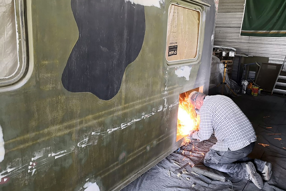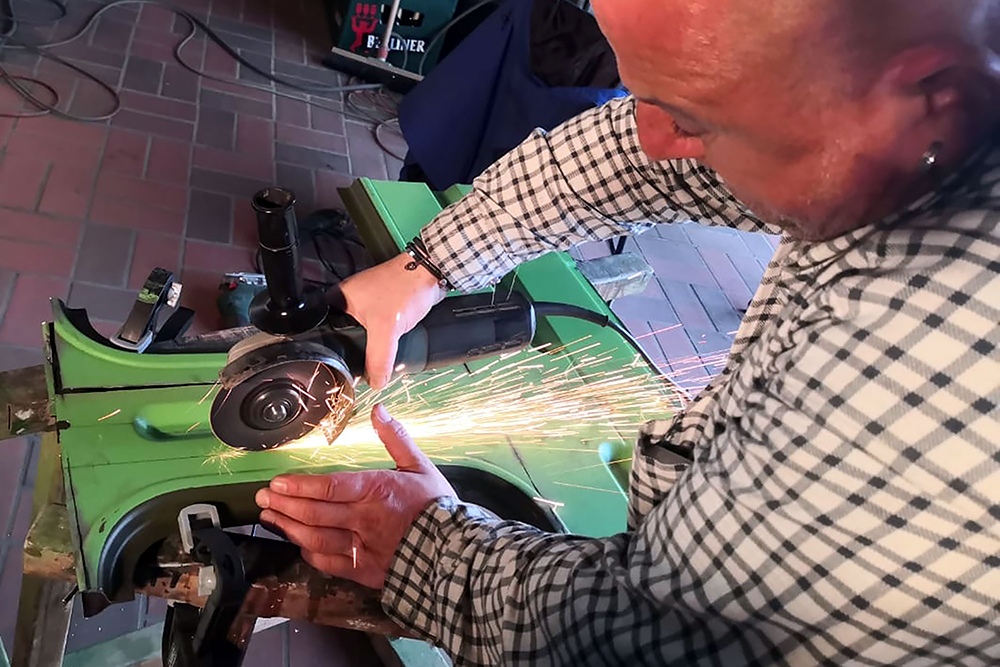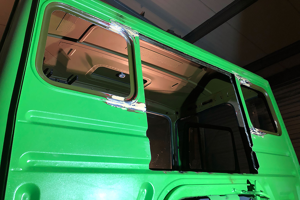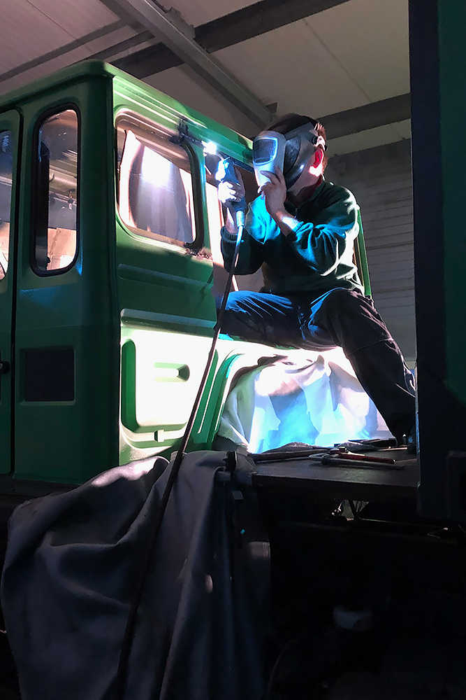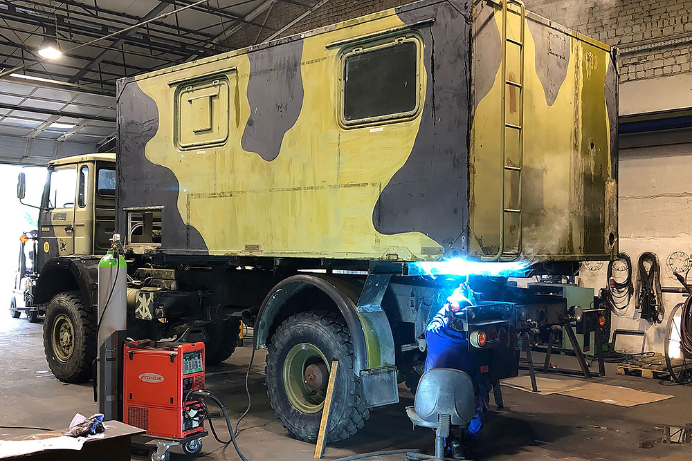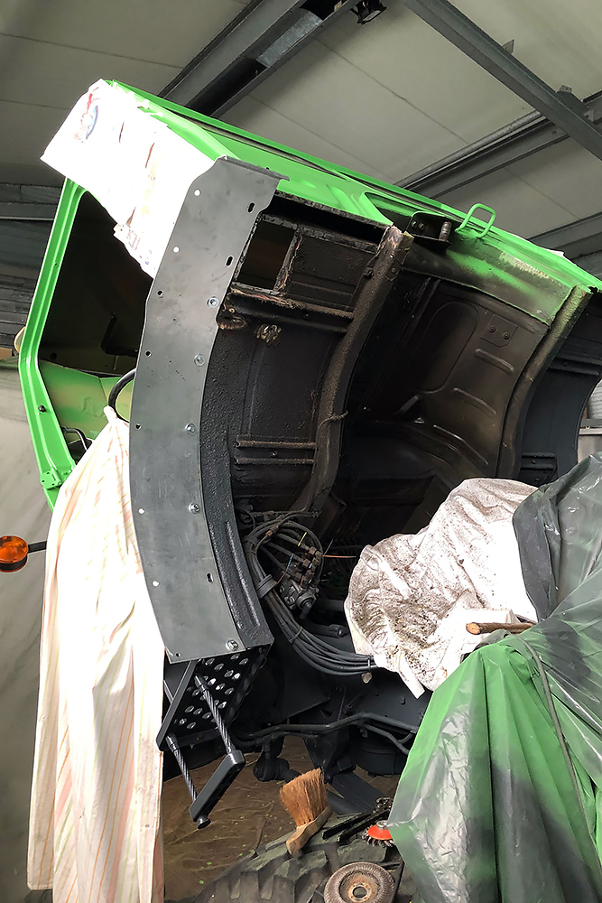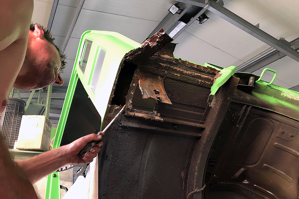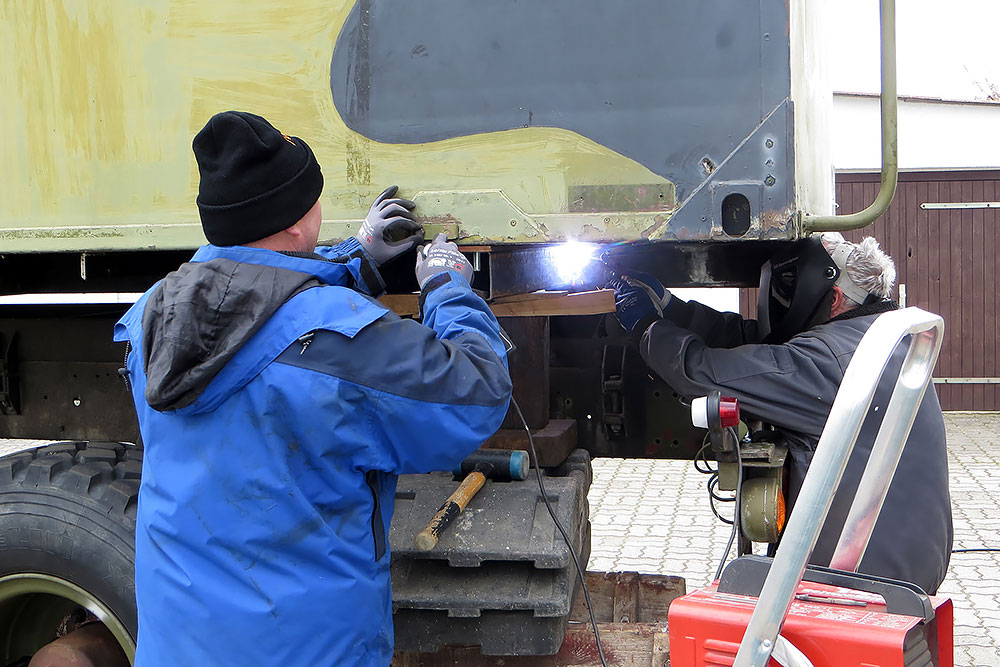 28.08.2020 - Viel Rost hatte das alte Mammut zum Glück noch nicht angesetzt, aber auf dem Ende der Kabine sind wohl ein paar Soldaten zuviel rumgelatscht und das Blech fing an zu gammeln. Ein guter Freund und Karosseriebauer schweißt uns daher zwei neue Kantteile ein. DANKE Andreas!!!