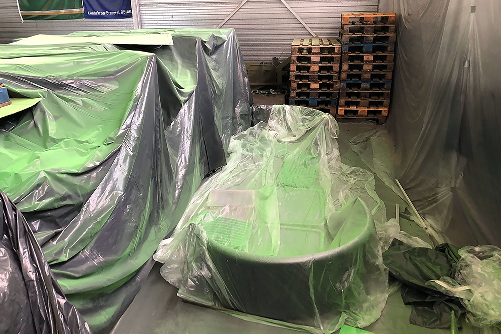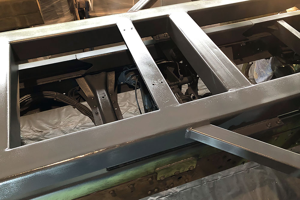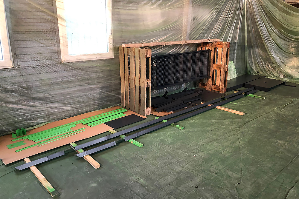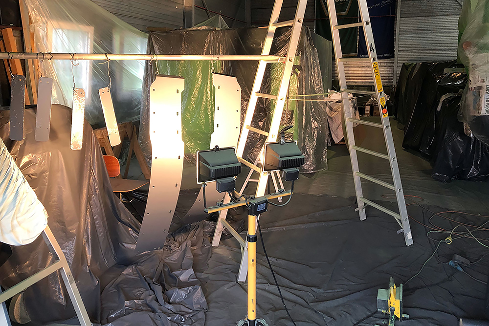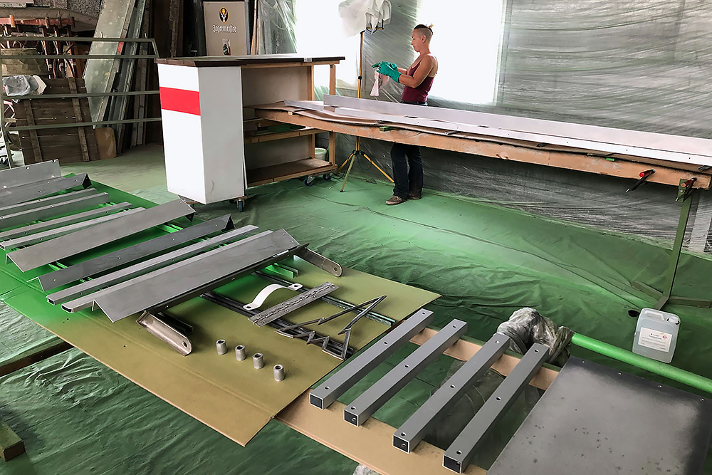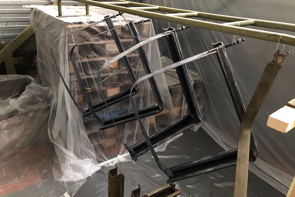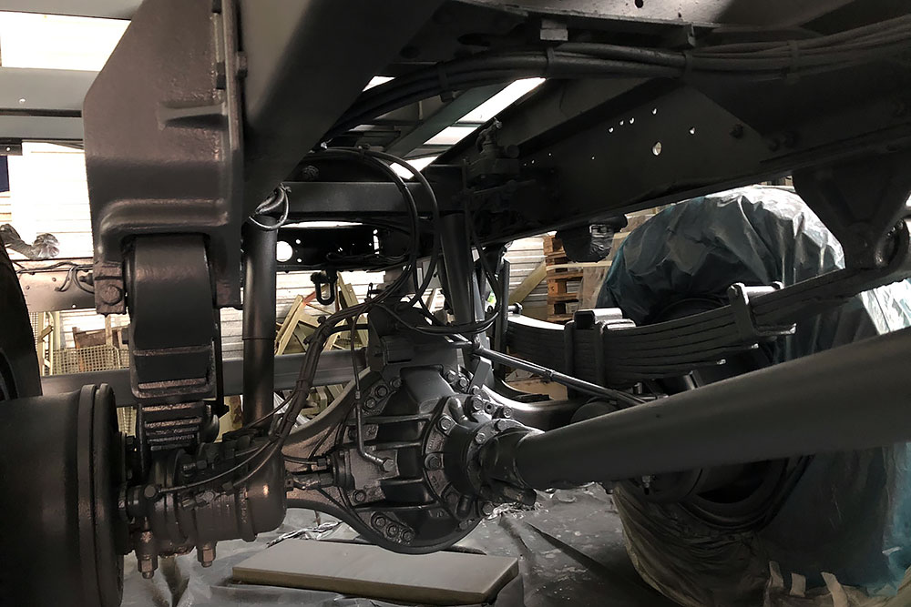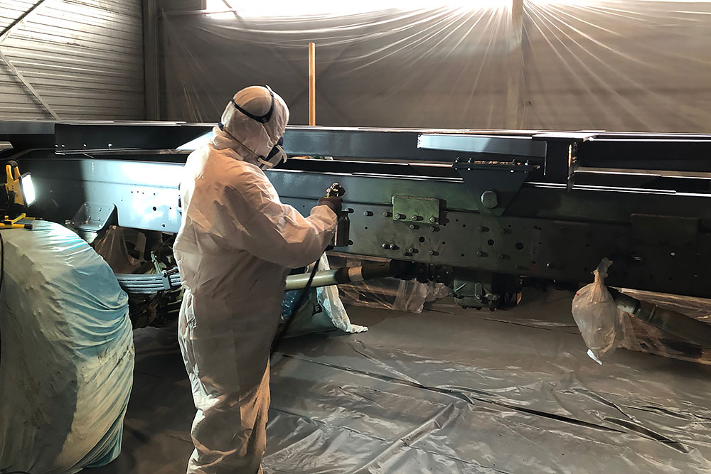 Oktober 2019 - Das Fahrgestell samt neuen Tanks lackieren wir 30h lang, mit 20L Lack, anthrazitgrau: