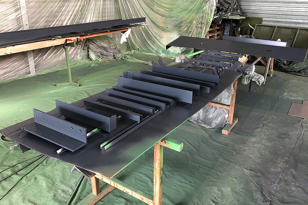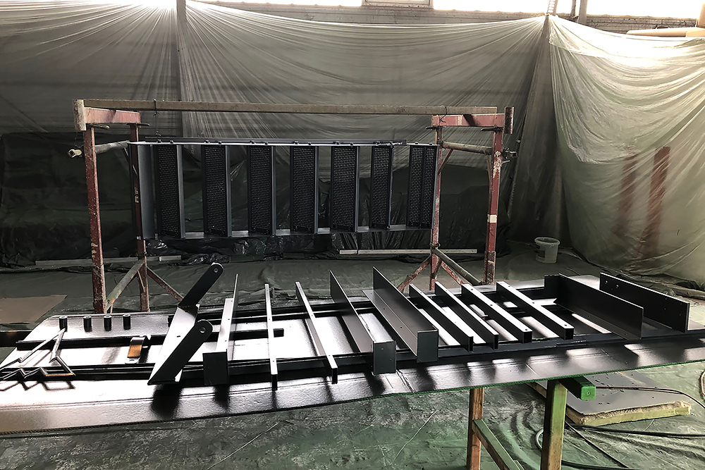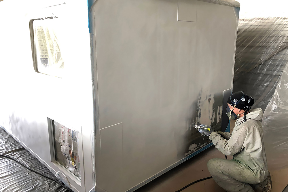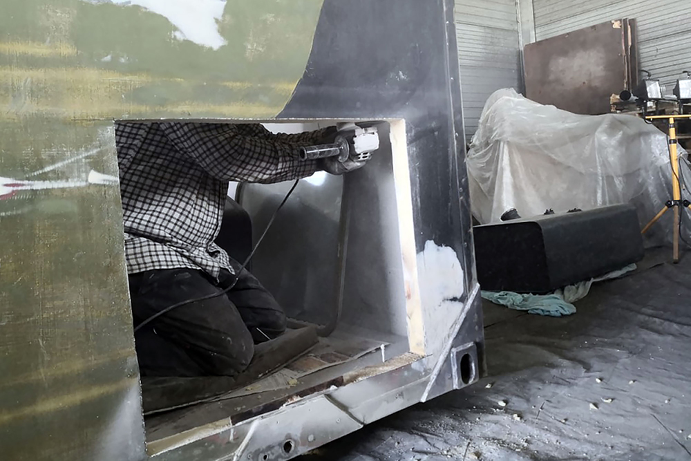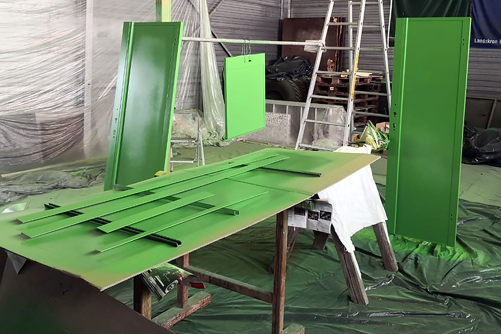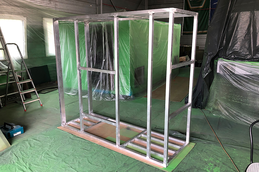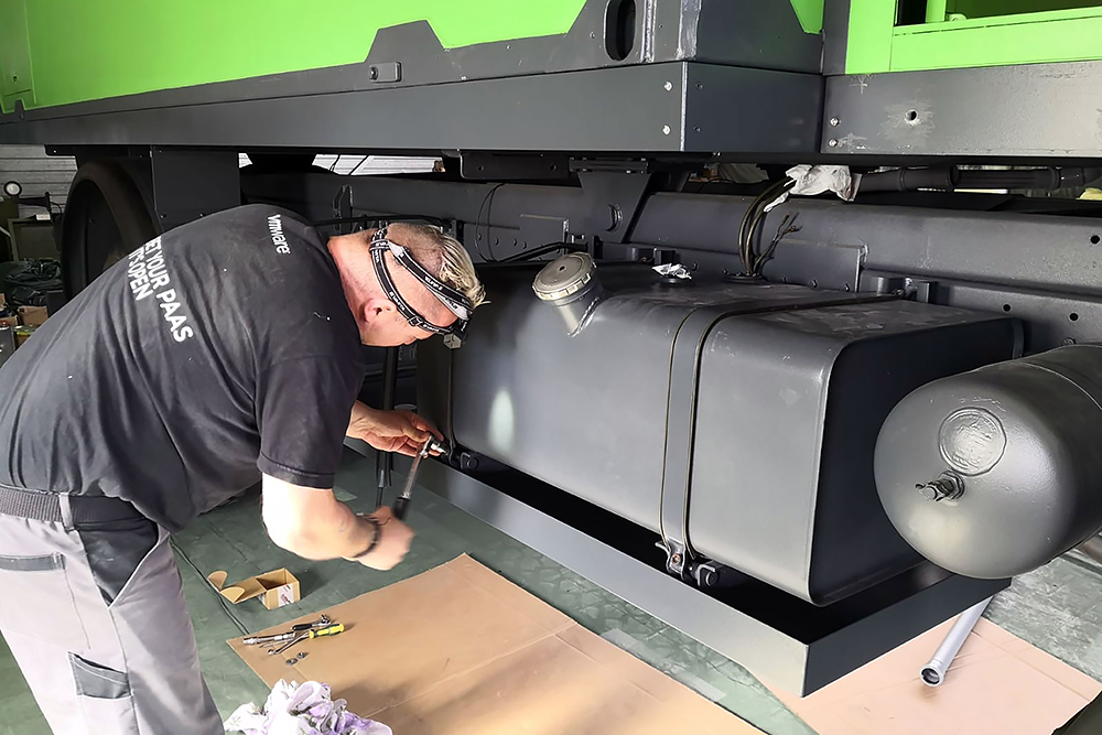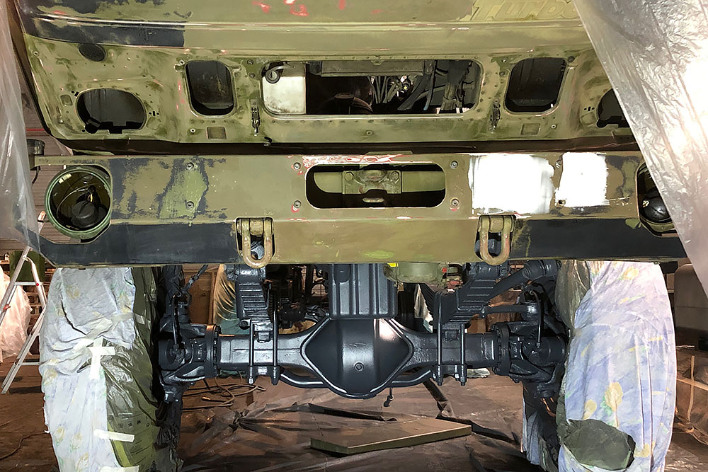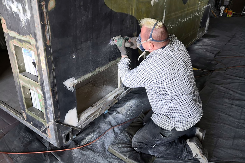 Oktober 2019 - Das Fahrgestell samt neuen Tanks lackieren wir 30h lang, mit 20L Lack, anthrazitgrau: