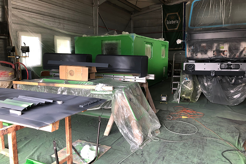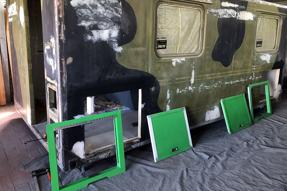21.11.2020 Der Tunnel für den Durchstieg zwischen Fahrerkabine und Wohnkoffer soll bis Ende März inkl. Türen und Lackierarbeiten in unserer "Winterpause" fertig werden, denn im März steht ja beim TÜV die Sicherheitsprüfung an, die wir nicht wieder versäumen wollen oder besser sollen! ;-)