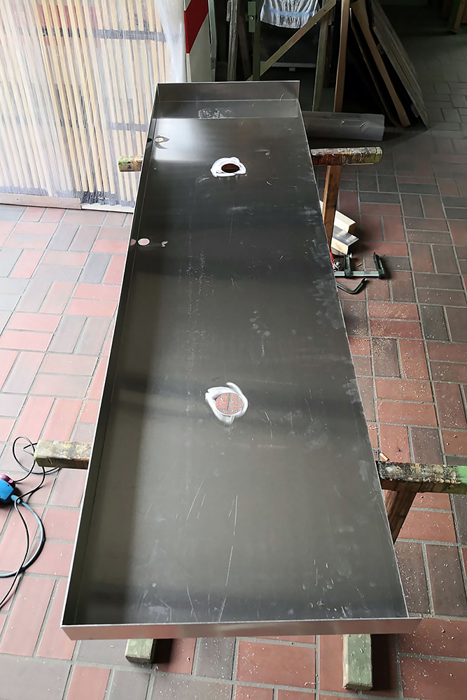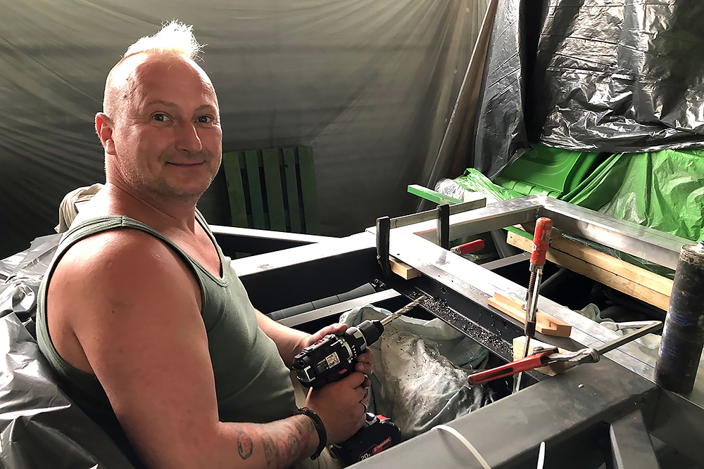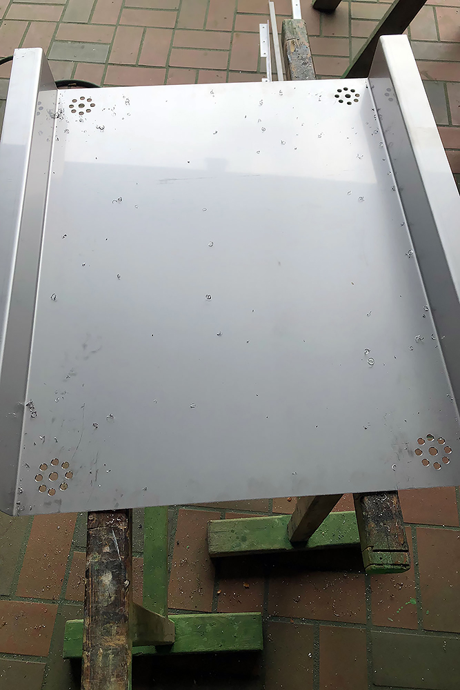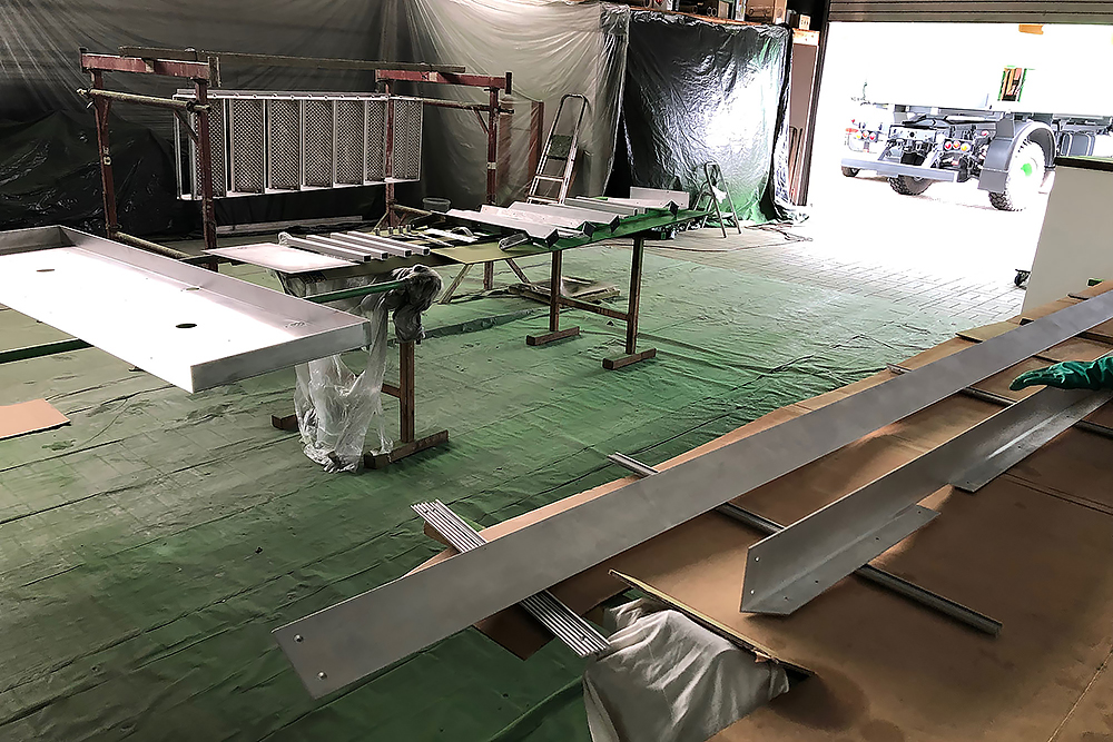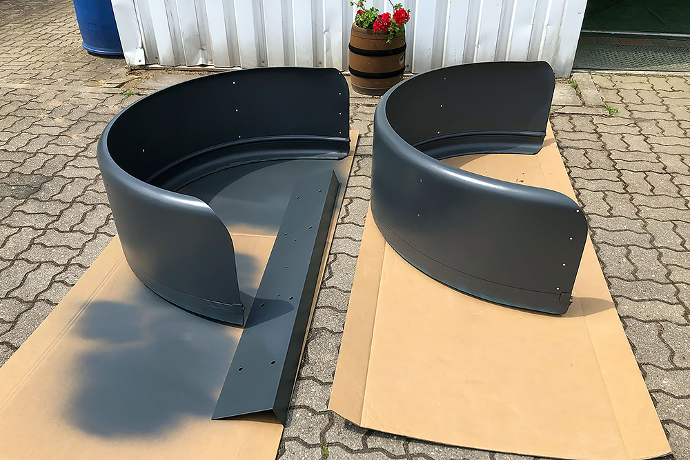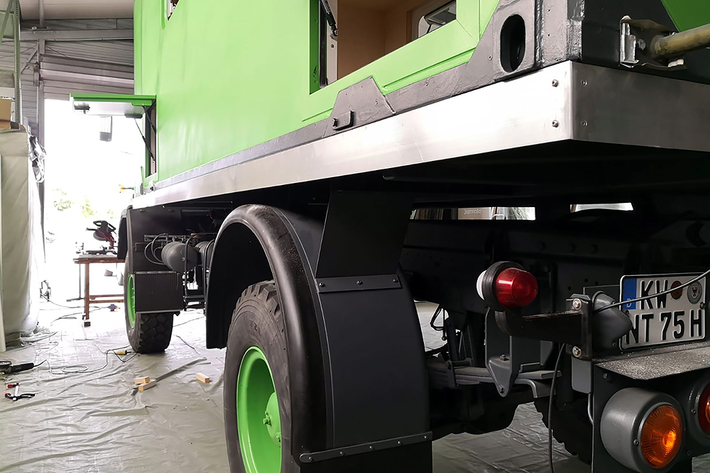 21.08.2020 - Auch die Aluminium-Einstiegstreppe haben wir fast fertig, sowie neue Schutzbleche aus verzinktem Stahlblech (t= 2mm). Das erste habe ich noch mit dem Trennschneider ausgefiedelt und beim zweiten dann nach einem Versuch festgestellt, dass dies auch wunderbar mit einer Stichsäge funktioniert. Man lernt halt nie aus, ich bin begeistert!