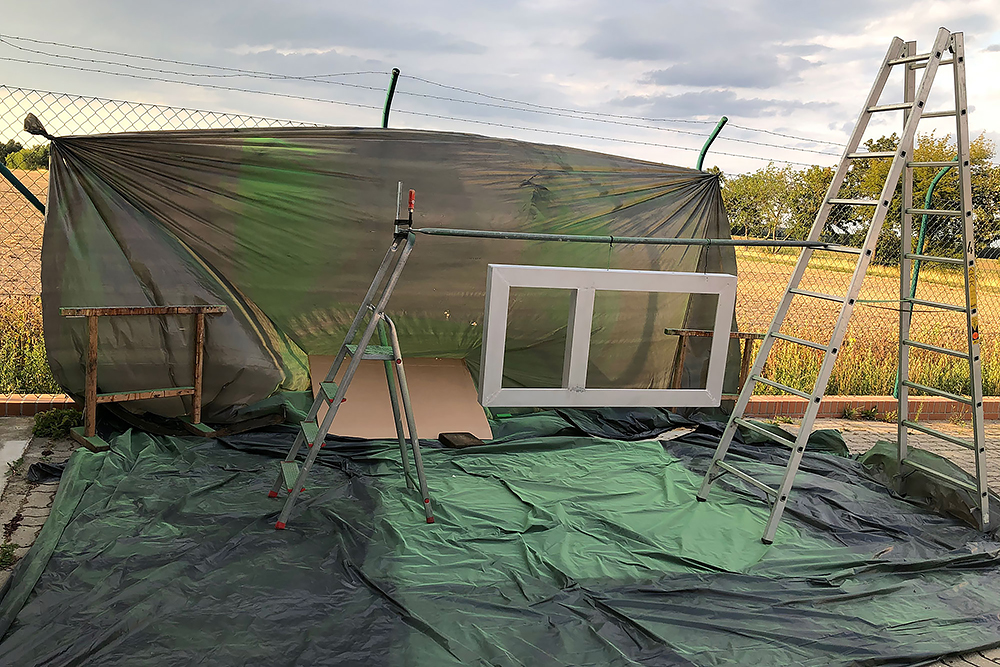 21.05.2021 Voller Freude zum TÜV, um die längst fällige Sicherheitsprüfung machen zu lassen und voller Enttäuschung wieder zurück, weil man uns abblitzen lassen hat! "Die ist ja zwei Monate überfällig, da müssen wir erst einmal wieder die Hauptuntersuchung durchführen, kommen Sie bitte nächsten Donnerstag noch einmal wieder!" Na toll! Auch das der Kilometerstand fast der gleiche wie nach der letzten HU ist, wollten Sie nicht gelten lassen! Wir nutzen die Tage und bohren ein paar Löcher in unsere Duschwanne und tapizieren mit Glasfasertapete die Decke vom Wohnkoffer.