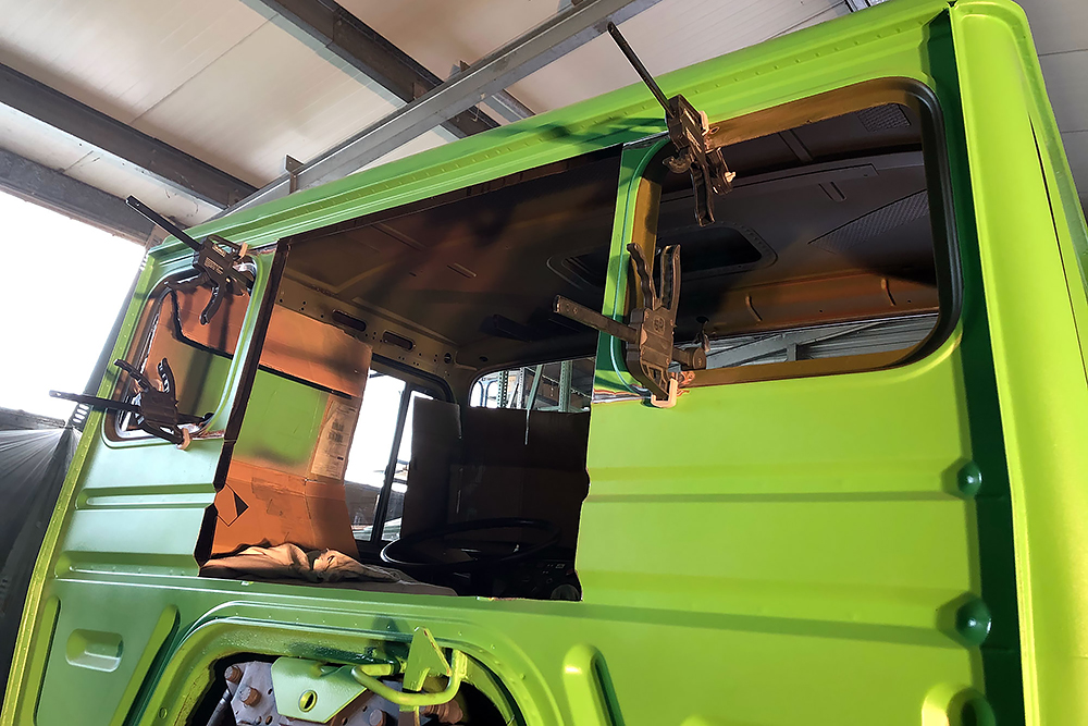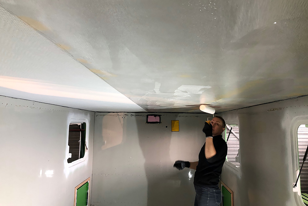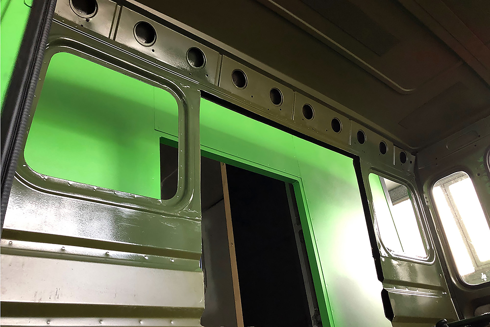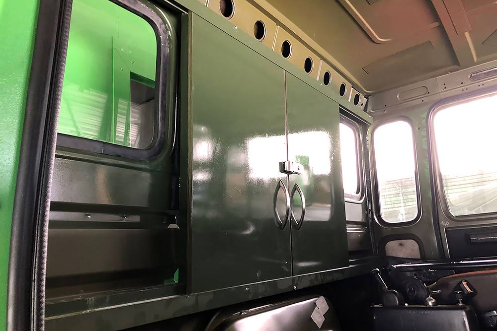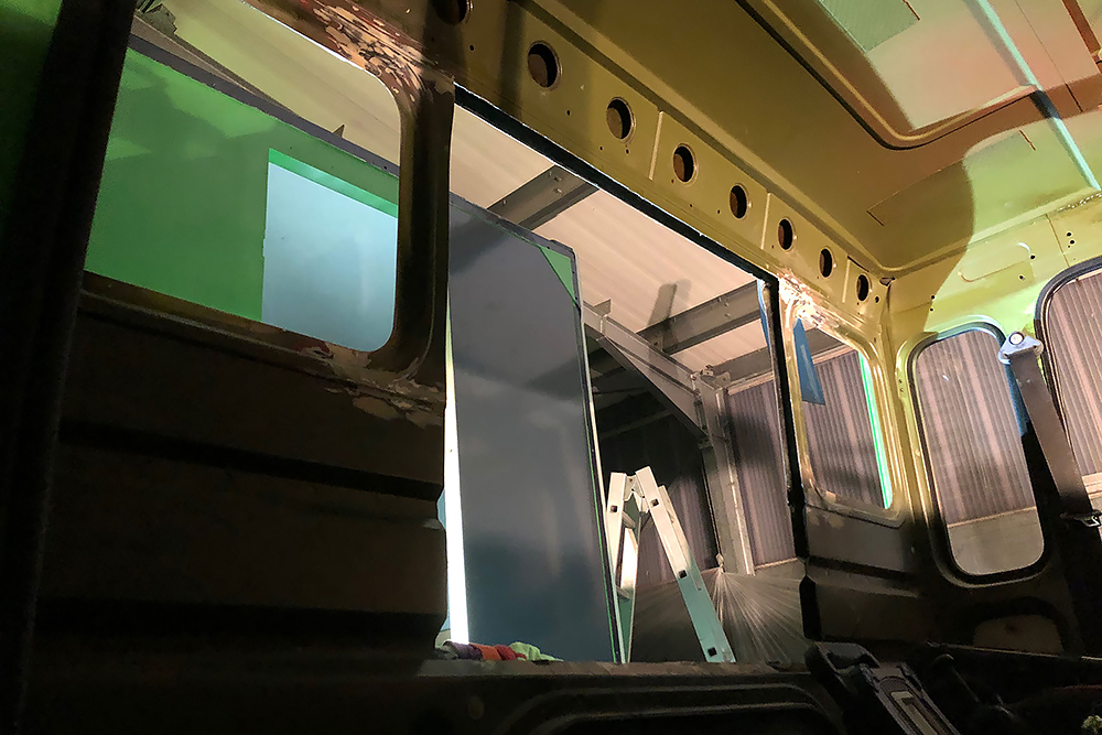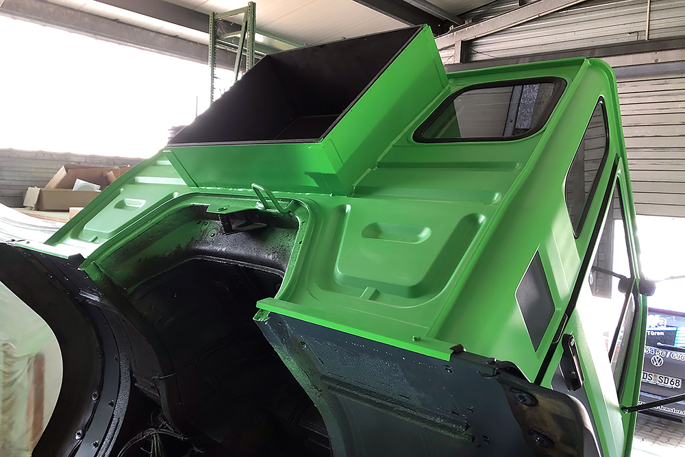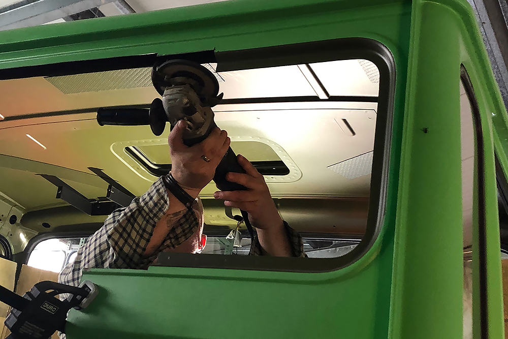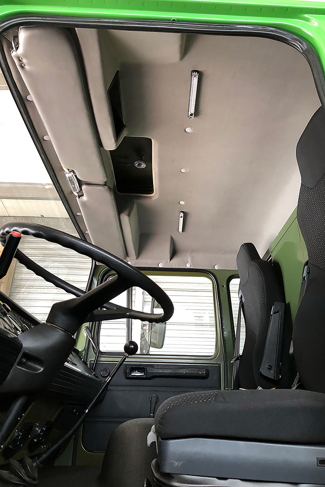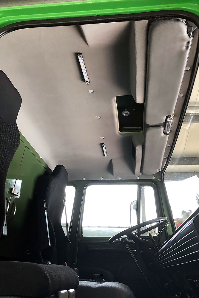 06.05.2022 ein Wunder ist geschehen, trotz dem ganzen Umbau bekommt der Oldtimer wieder TÜV! Die Freude ist dementsprechend groß und wir beginnen die Fahrerkabine fertig zu stellen. Den Himmel und die Sonnenblenden haben wir neu beziehen lassen und diese landen als Erstes zusammen mit ein paar neuen LED-Leuchten wieder an ihren Platz.