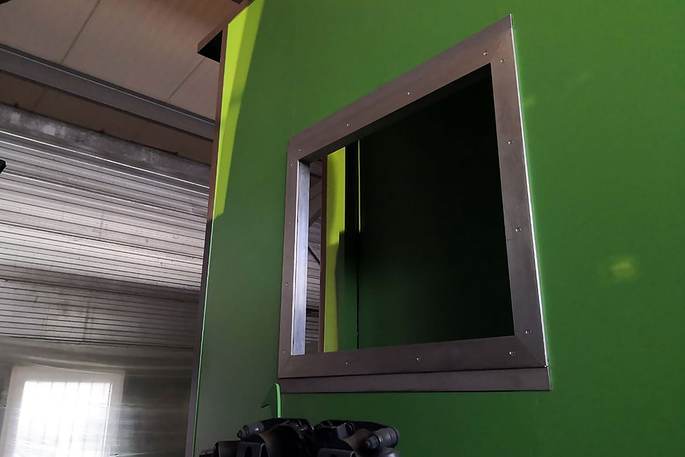 Die Fensteröffnungen sind nun mit Rotholz, das wir 3 x braun beizen und 3 x lackieren, verkleidet und der Sonnen-/Insektenschutz ist auch schon angebracht: