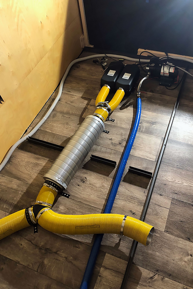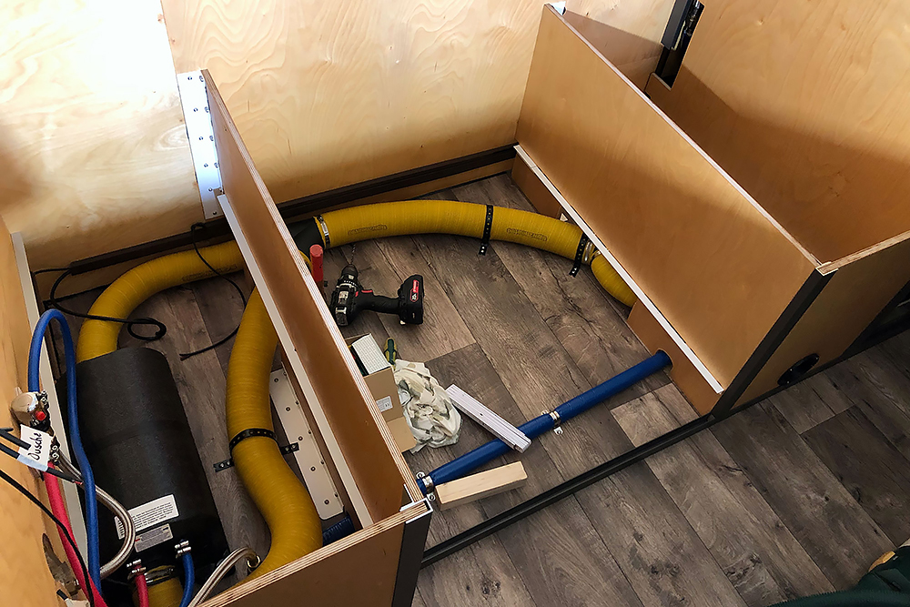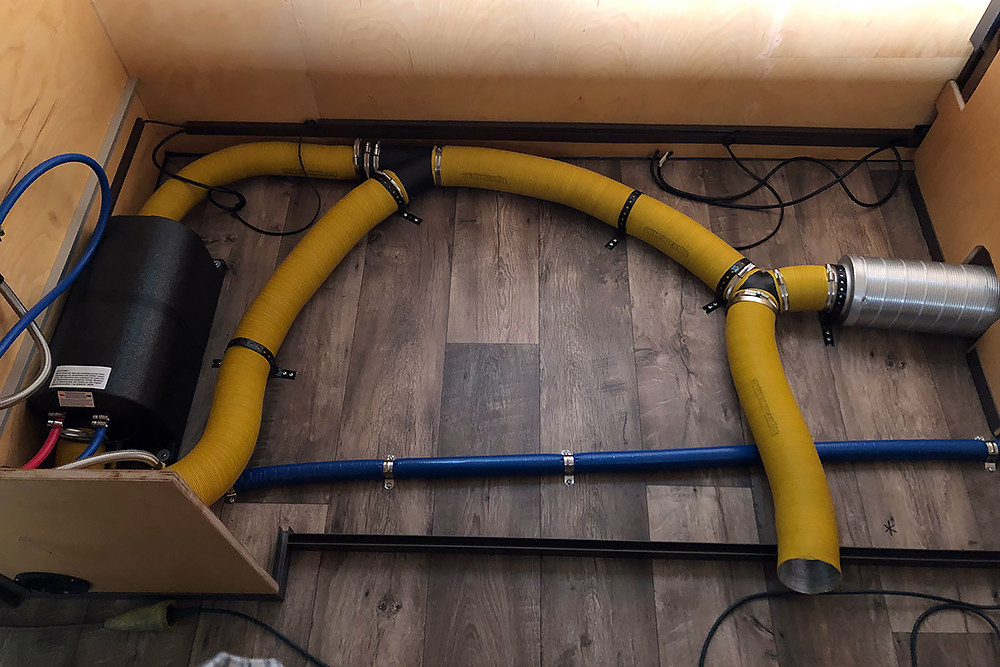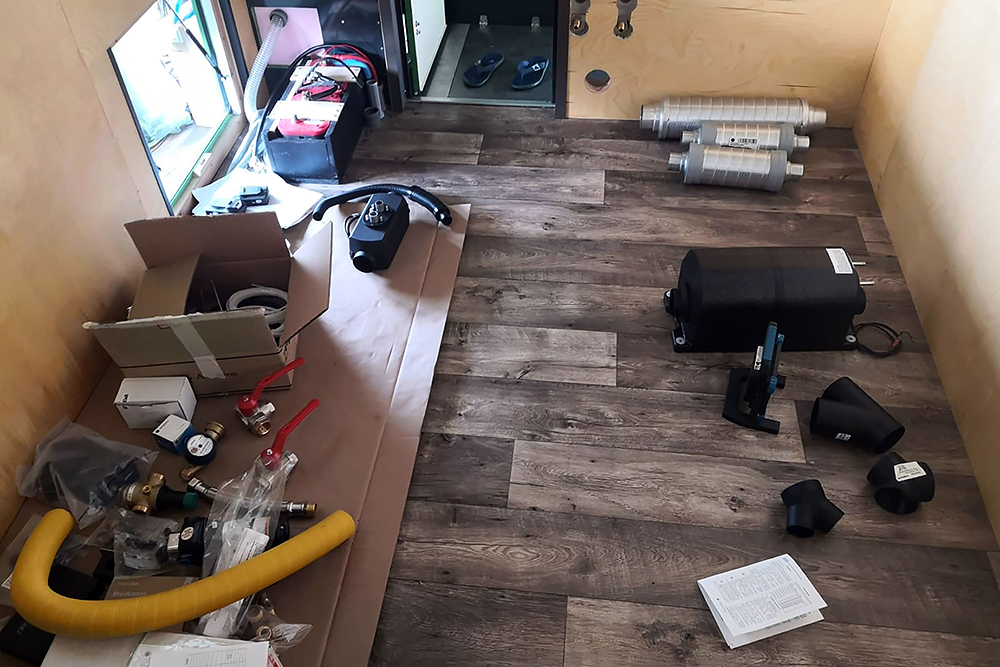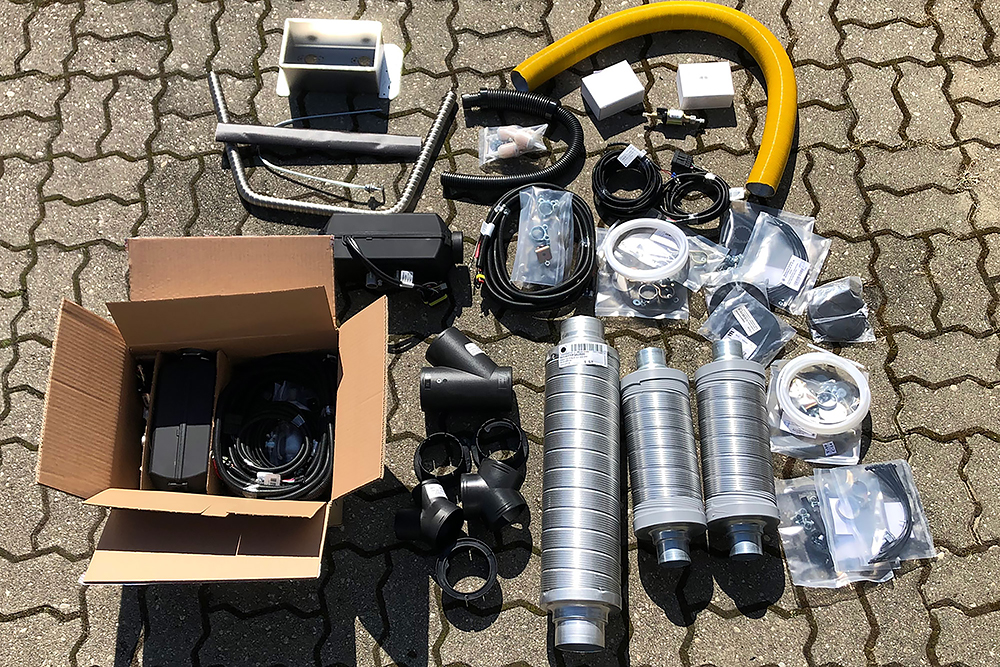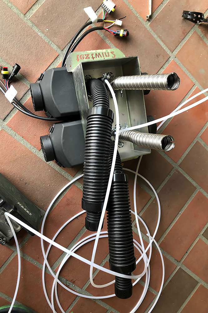 Als nächstes machen wir uns an die Heizung 2 x 2kW Dieselbrenner sollen im Winter nicht nur die Luft im Fahrzeug erwärmen, sondern auch 10L Wasser im Boiler für die Dusche. Im Sommer funktioniert dieser auch mit Strom.