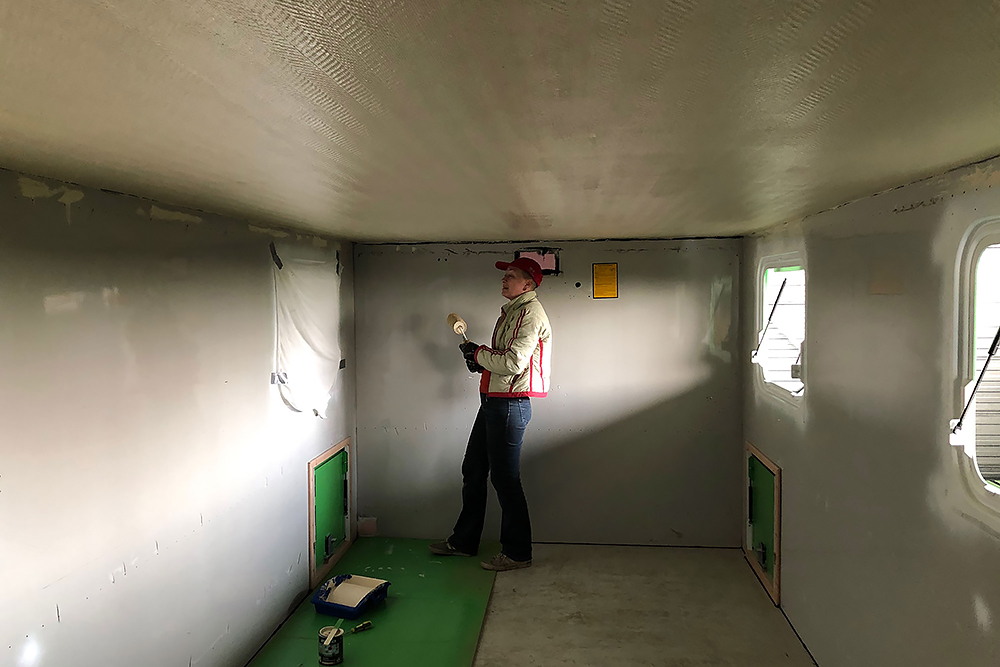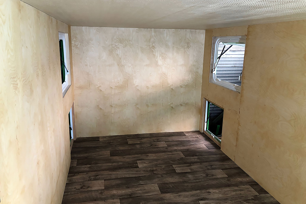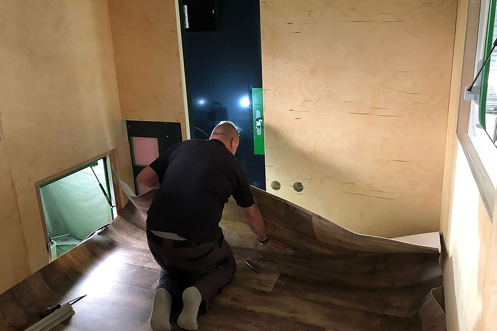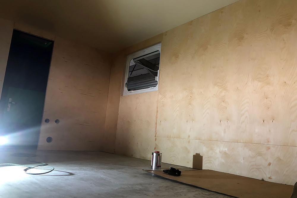 06.11.2021 Viel ist geschehen, doch leider hat bisher die Zeit oder Muße gefehlt, es hier zu dokumentieren! Wir haben die Wände mit 6 mm Birkensperrholz verkleidet, sie 3 x mit Naturöl gestrichen und neues PVC auf dem Boden verklebt, siehe da: