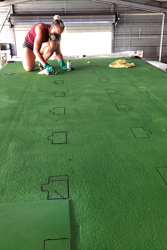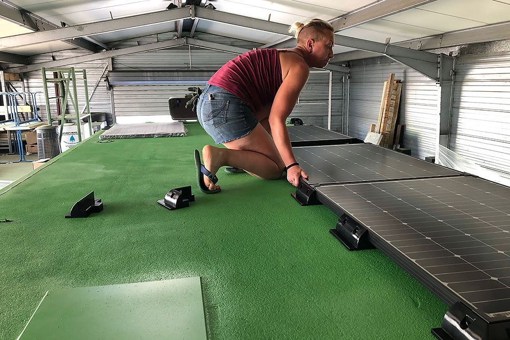 Als nächstes sorgen wir für etwas Ökostrom und kleben die Halter unserer 8 x 180Wp Solarpaneele auf das Dach, was mit Sika-Aktivator und Primer so gar nicht ökologisch ist!