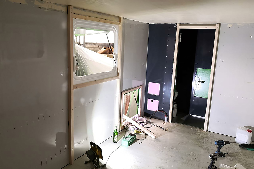 Den  zweiten Eingang aus dem Flur heraus bringen wir auch schon einmal auf das richtige Maß, denn noch steht der Wohnkoffer ja unten und das vereinfacht die Arbeit!