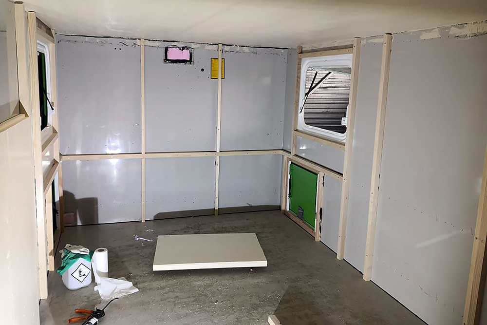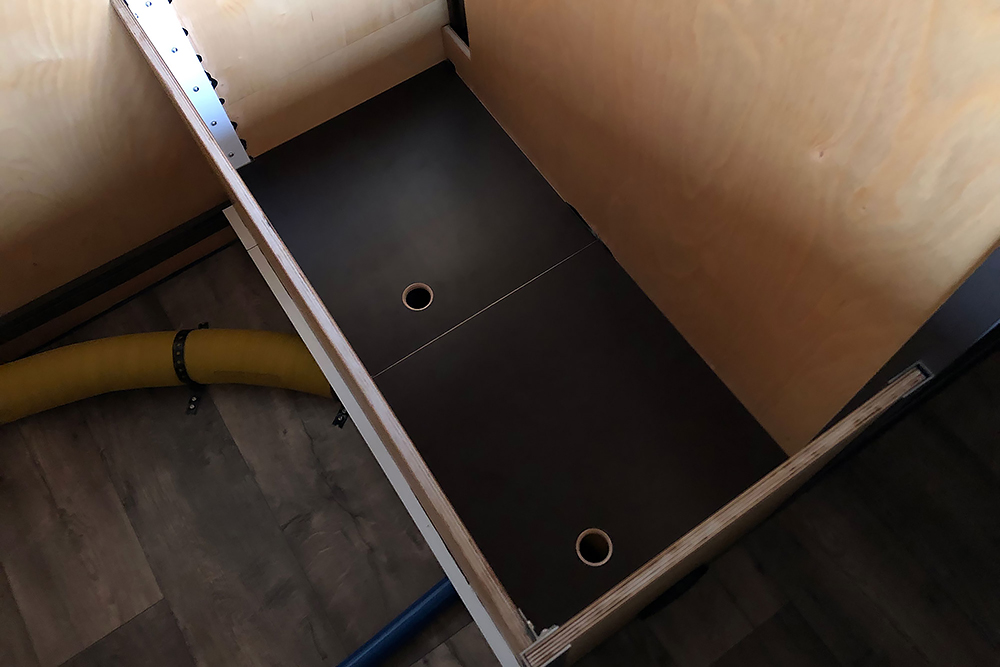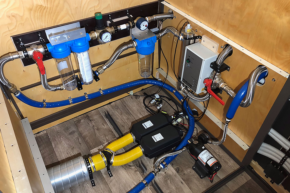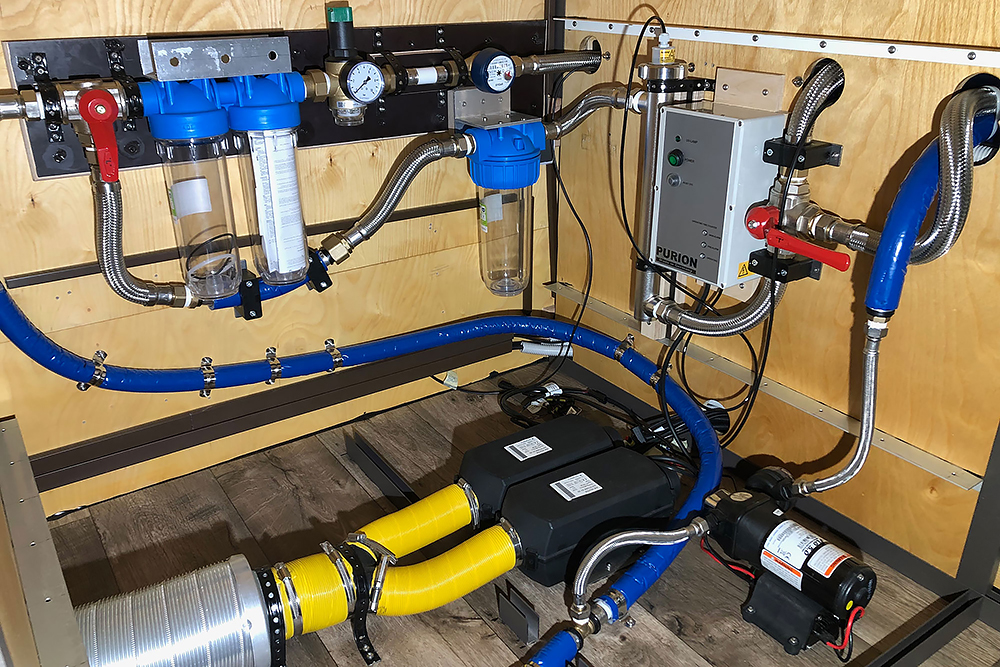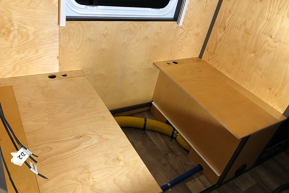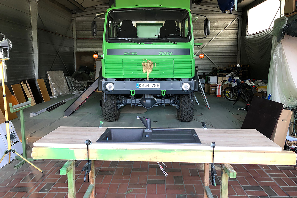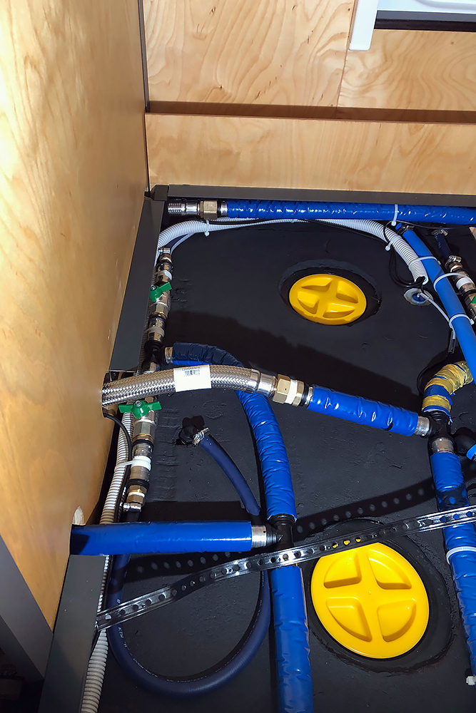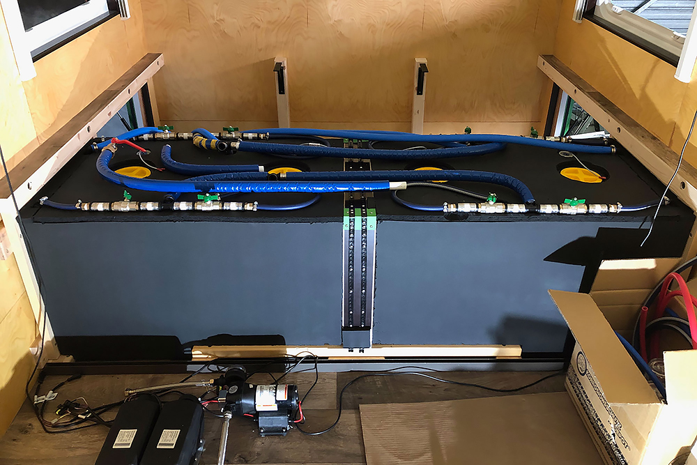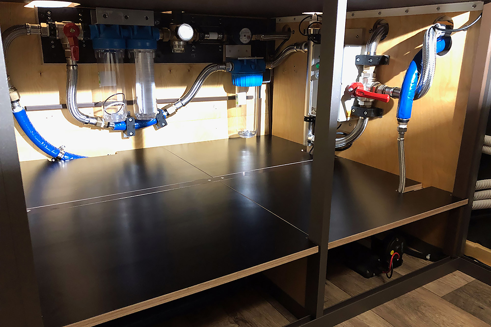 Die Trinkwassertanks (640L gesamt) haben ins Innere gefunden: