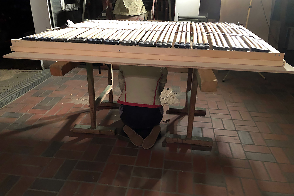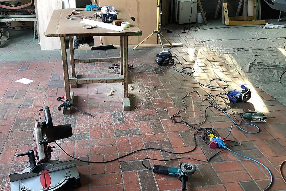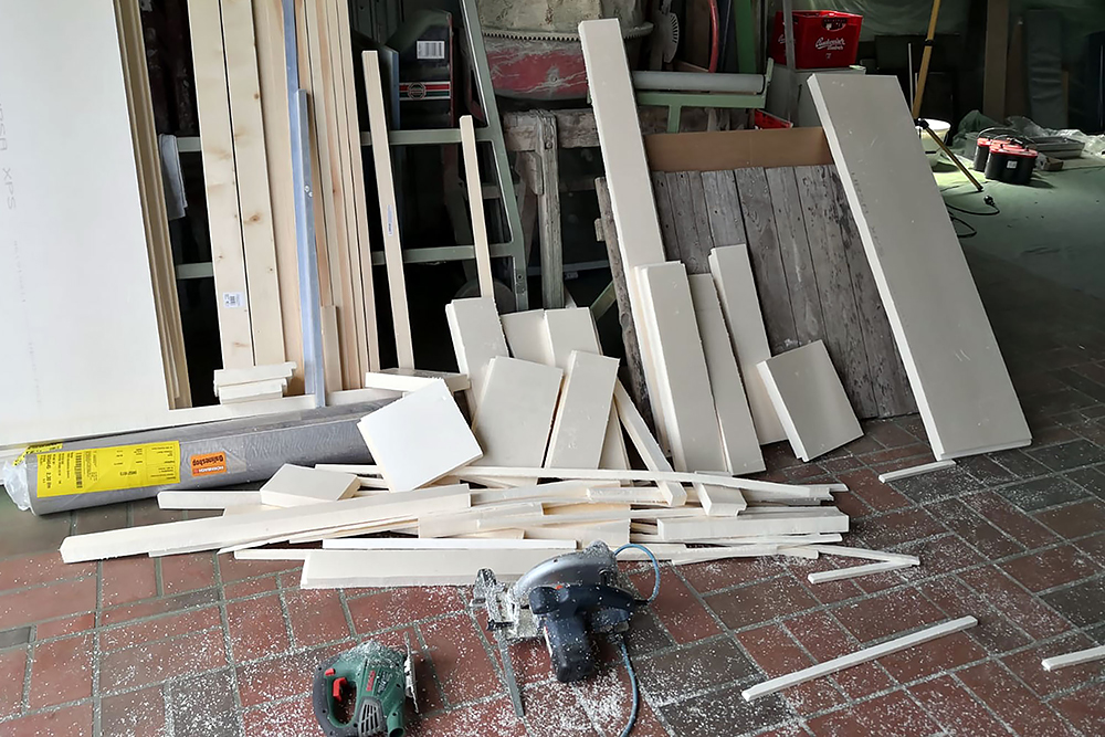 Wir beginnen mit dem Möbelbau, aus 15mm Platten Multiplex-Birke, die wir schleifen und ölen!