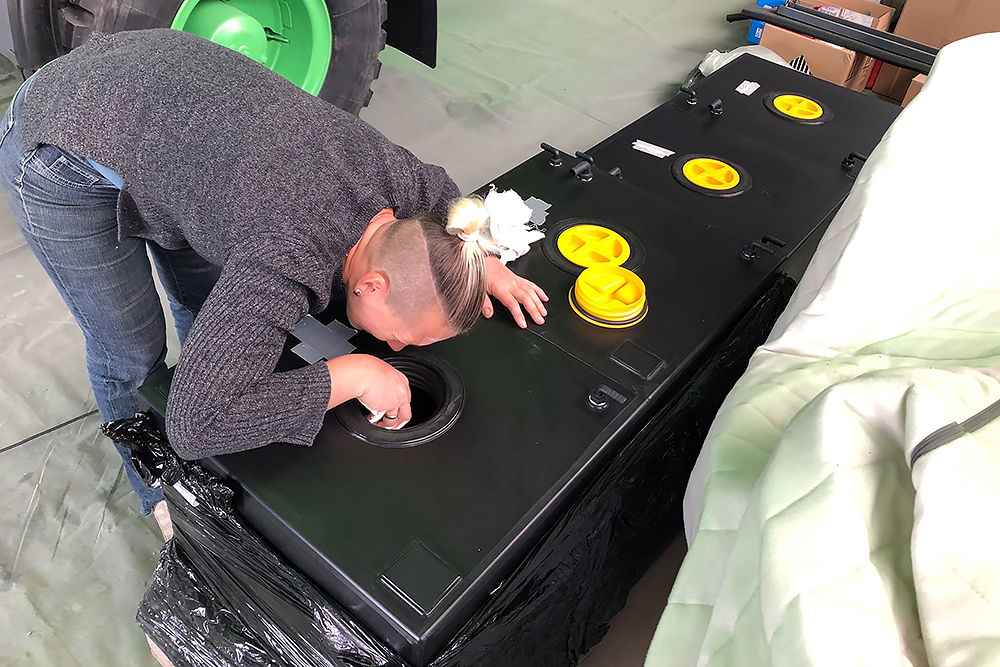 Mal eben ist das aber nicht gemacht! Dafür muss viel gesägt, gebohrt und geschraubt werden, auch Löcher für die Ansaugung in einem der neuen Tanks! Für alles muss der passende Platz gefunden und Befestigungsmaterial angefertigt werden. Laut der Bedienungsanleitung kann dies natürlich nur durch autorisiertes Fachpersonal erfolgen, aber das sind wir ja zum Glück! ;-)