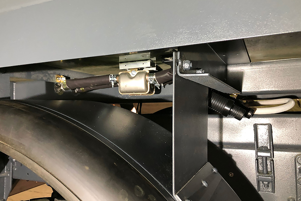 Das Wasser soll erst durch einen Zähler, dann durch einen Druckminderer, einen Grobfilter mit zwei Stufen und durch einen Feinfilter gepumt werden. Dann soll es noch eine UV-Bestrahlung erhalten, bevor es in den jeweiligen Tank läuft, der zuvor durch Öffnen eines Kugelhahnes angewählt wurde. So können wir überwiegend die beiden Tanks in der Fahrzeugmitte nutzen und für einem längeren Aufenthalt auch noch die beiden äußeren befüllen. Zusammen fassen die vier Tanks 640L Trinkwasser. Auf ein Jauchefass unter dem LKW haben wir bewusst verzichtet!