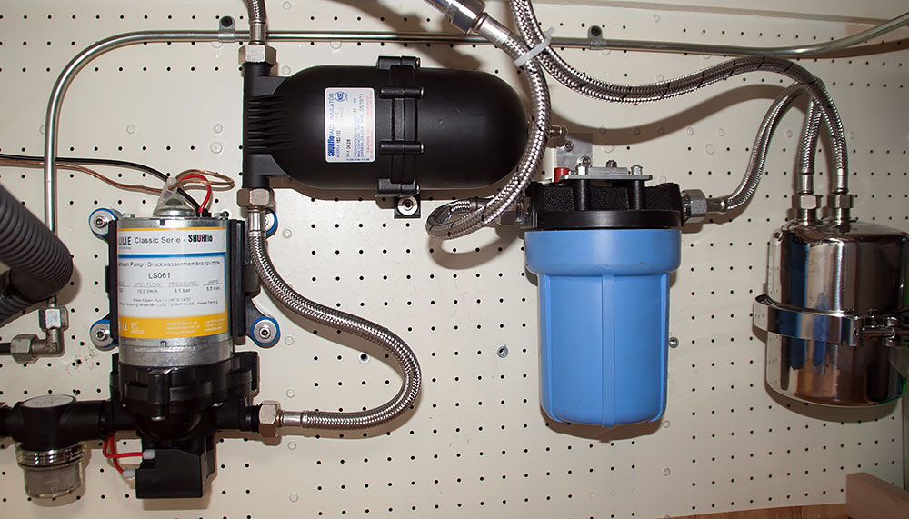 Shurflo-Druckpumpe und Ausgleichsbehälter,