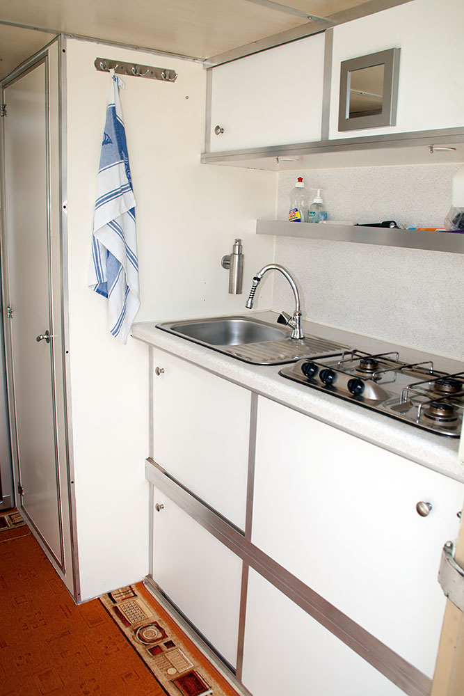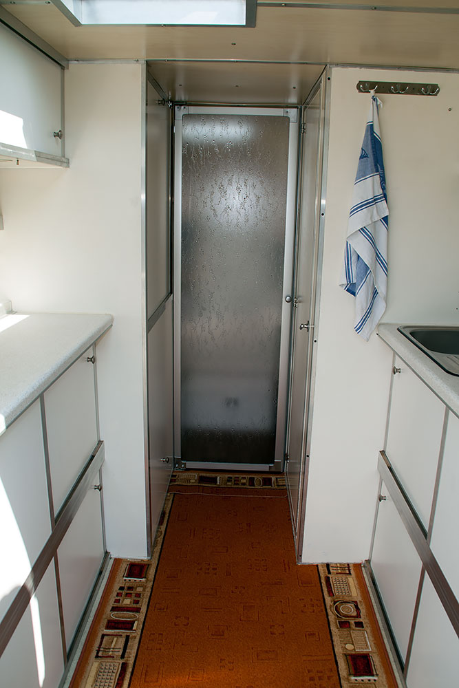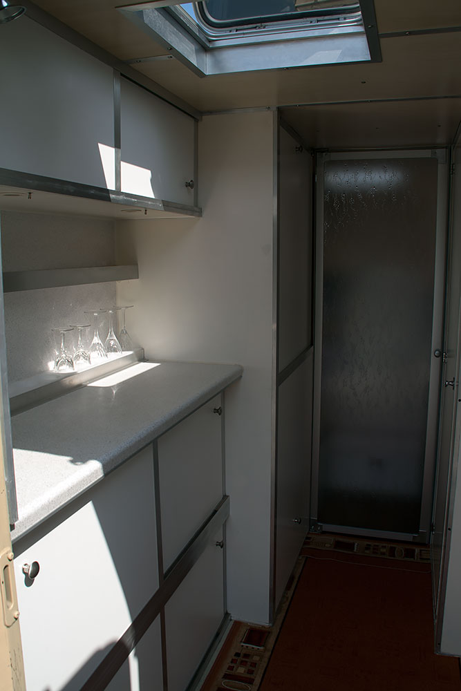 Staufächer, Tür zwischen Wohnbereich und WC/Küche, 320L-Trinkwasser,