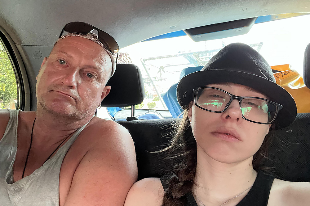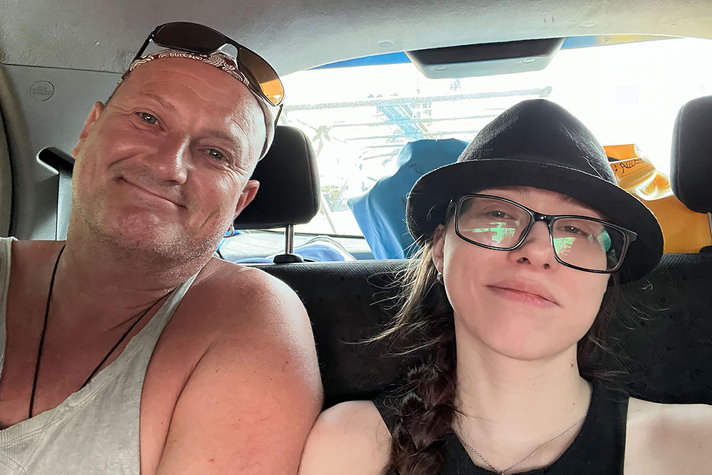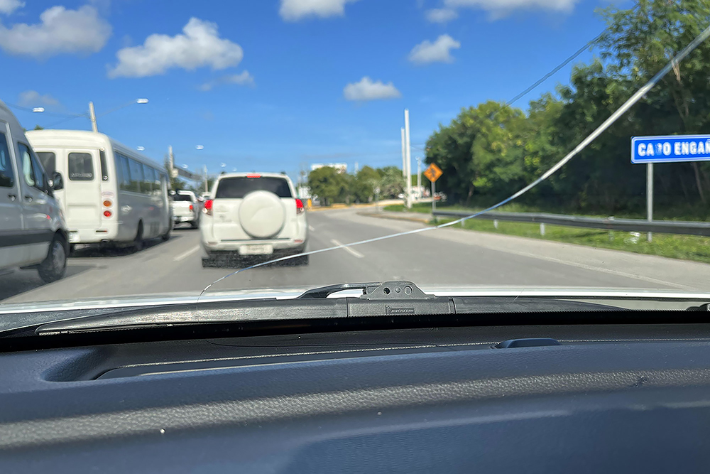 Wir haben noch einen langen Weg vor uns, stehen kilometerweit weg von einem Taxistand auf freiem Feld! Unseren Flug noch pünktlich zu erreichen halte ich langsam für aussichtslos und komme auf eine Idee. Ich stelle die Karre mitten auf die Straße, schließe sie ab und deute an uns mit dem Schlüssel von dieser auf dem Weg zu machen.