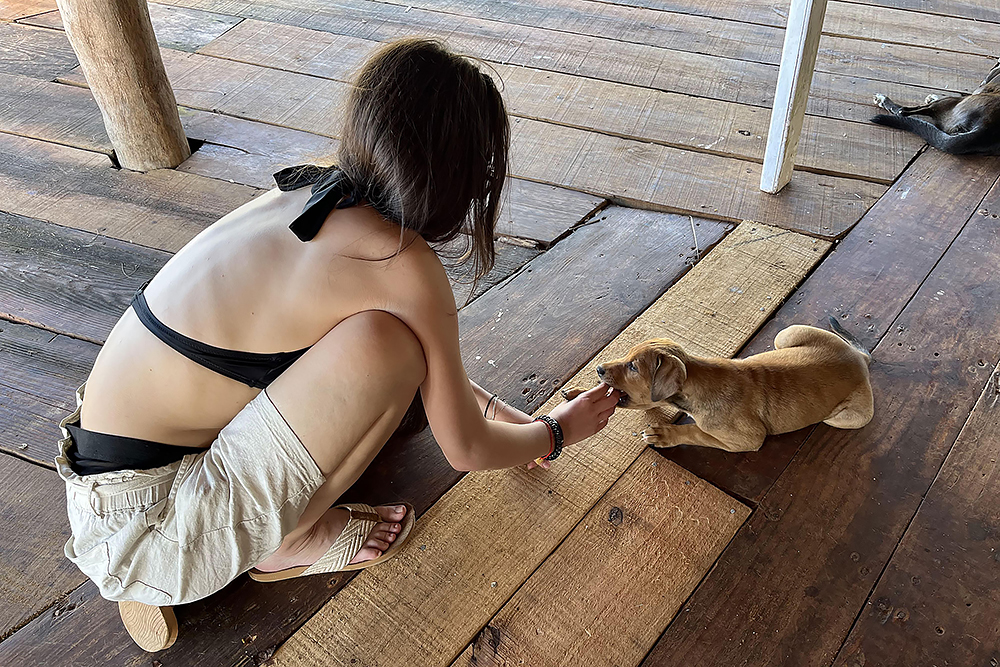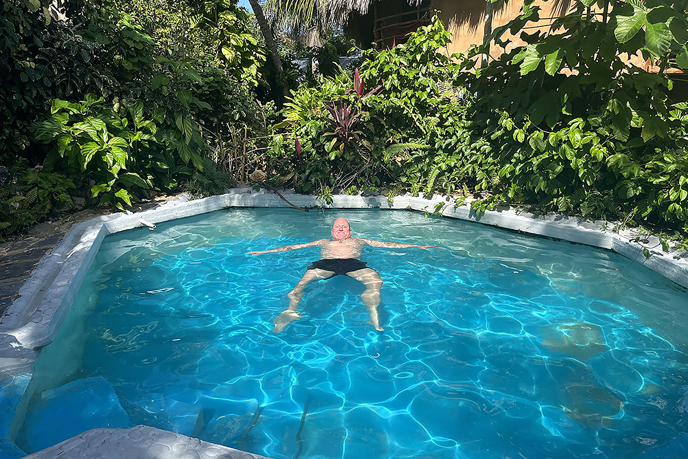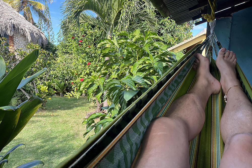 Ein ehemals Belgier vermietet hier runtergekommene Bungalows in seinem wunderschönen Garten. Seine belgische Ex, die Mitbegründerin, lebt jetzt in einer lesbischen Beziehung ganz in der Nähe und die neue Domenikanerin hat es dank ihm nicht mehr nötig zu arbeiten.