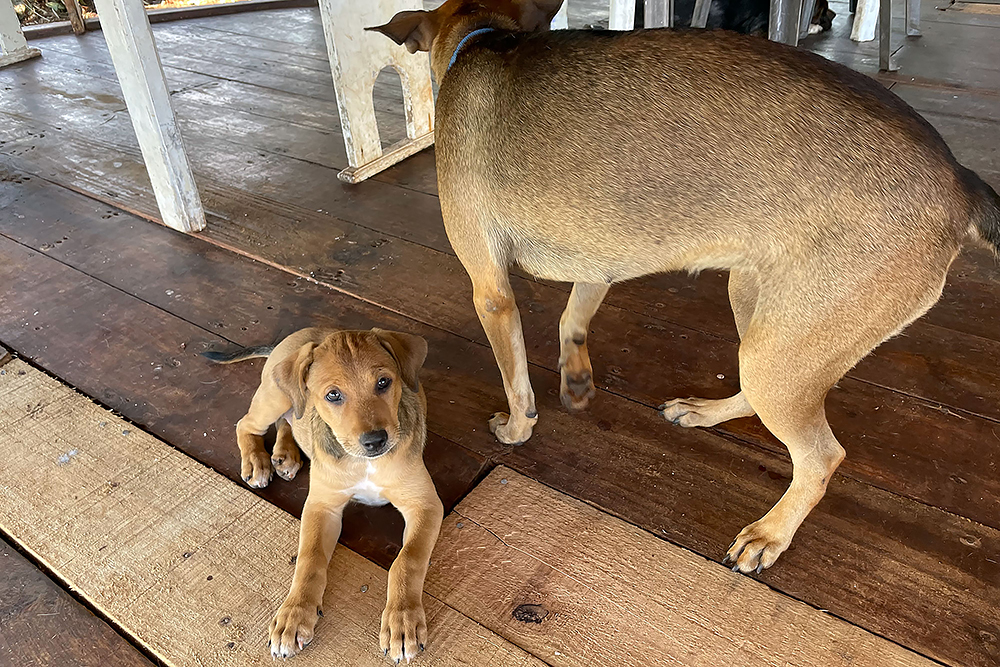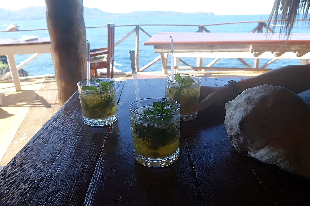 Wir bestellen Cocktails und fragen nach dem Namen seines kleinen Hundes, der schlicht "Baby" lautet, da ihm noch kein anderer eingefallen ist. Dann fragen wir nach dem Namen der Mutter des kleinen Hundes und bekommen  "Baby" als Antwort.  Naja fügt er hinzu, die Mutter ist halt "Baby one" und der Welpe "Baby two"! Alles kann so einfach sein!