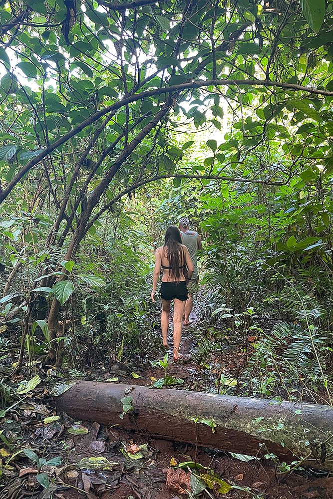 Auf dem glitschig nassen Boden ist kein Halt zu finden und so schliddern wir wie die Stadtidioten durch das Gebüsch! Stundenlang! Andere fahren mit einem Boot kurz zu diesem einsamen Piratenstrand und wieder zurück, was sind das nur für Looser, es geht doch auch auf dem Landweg!
