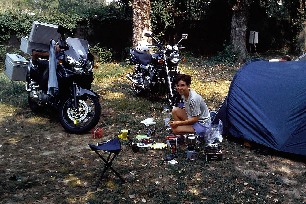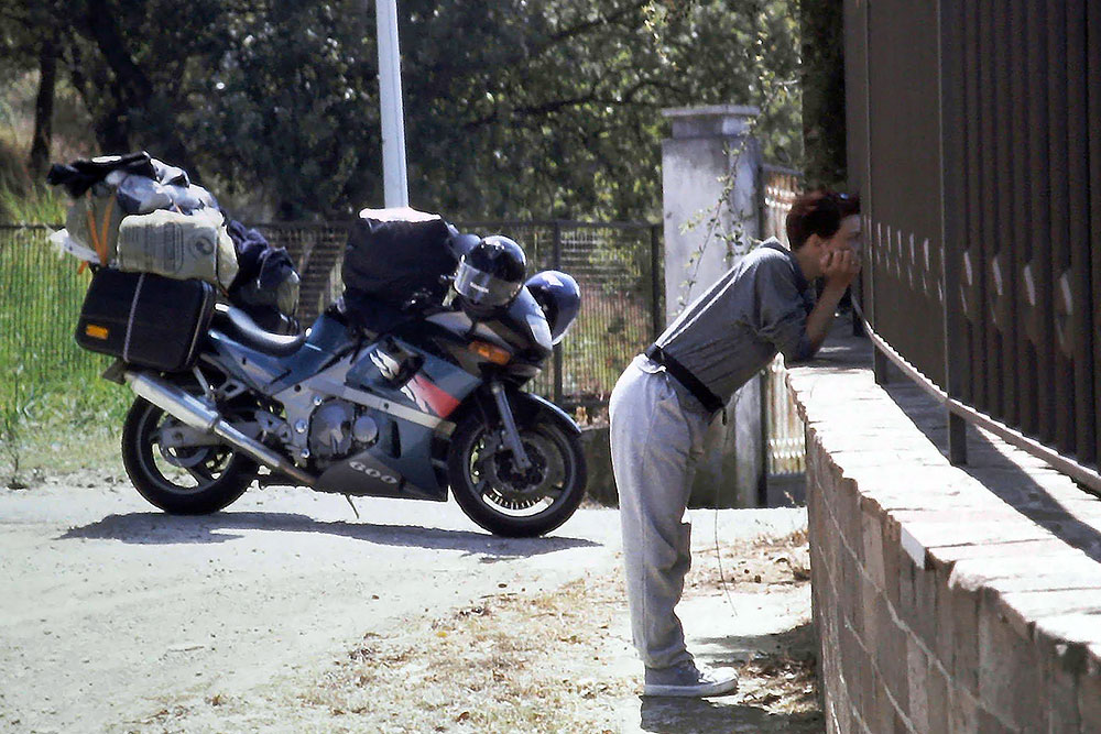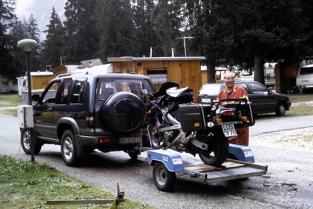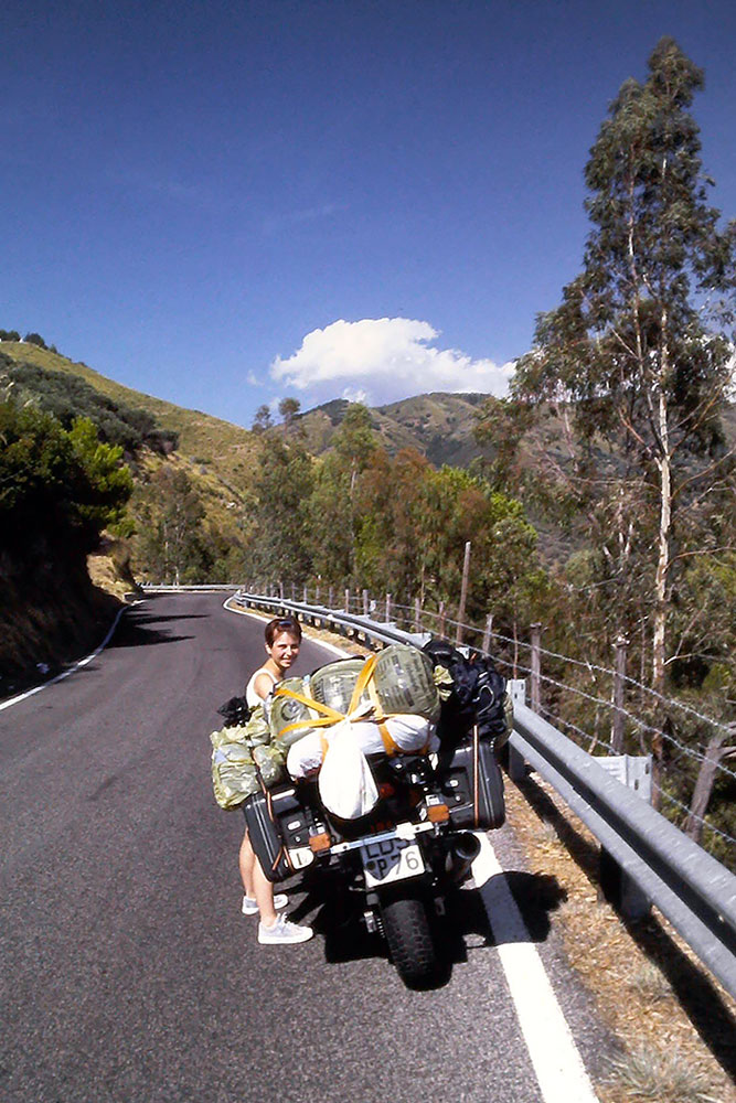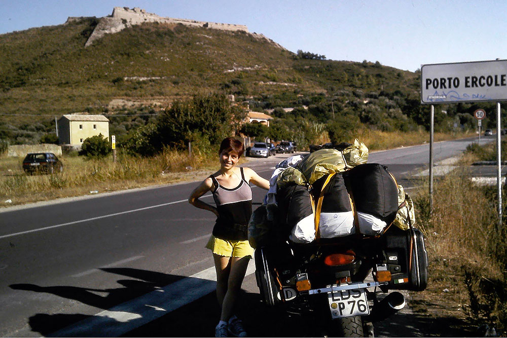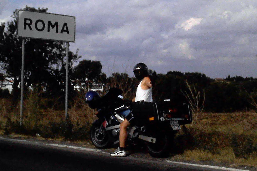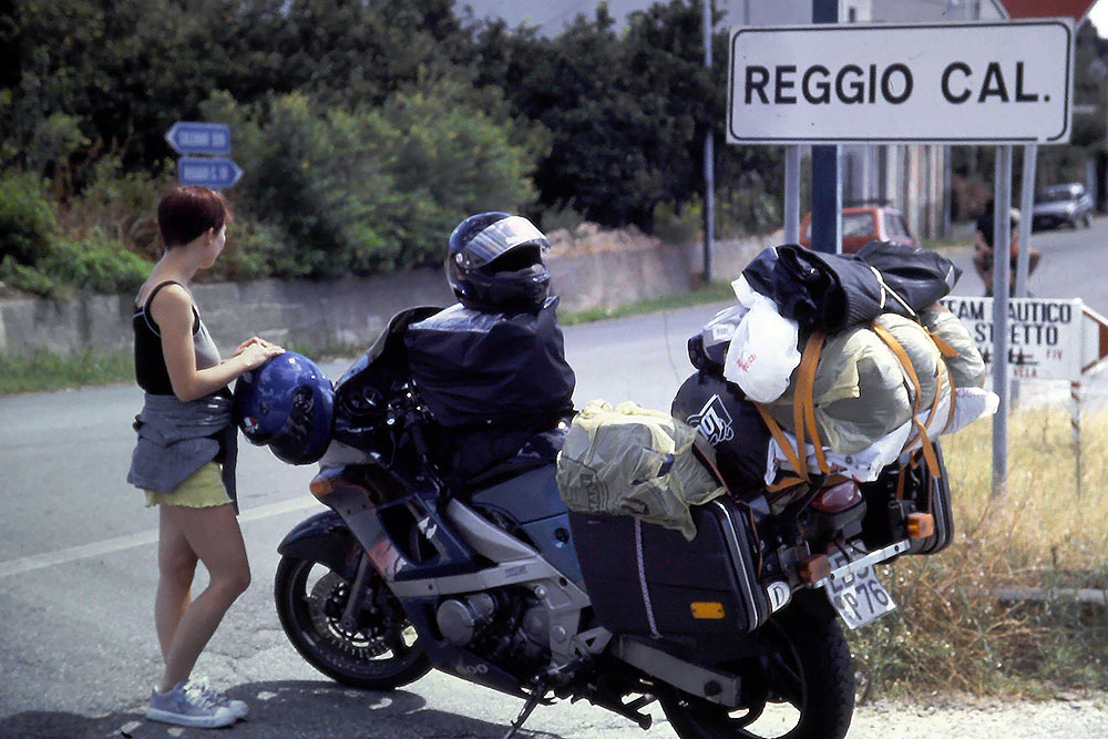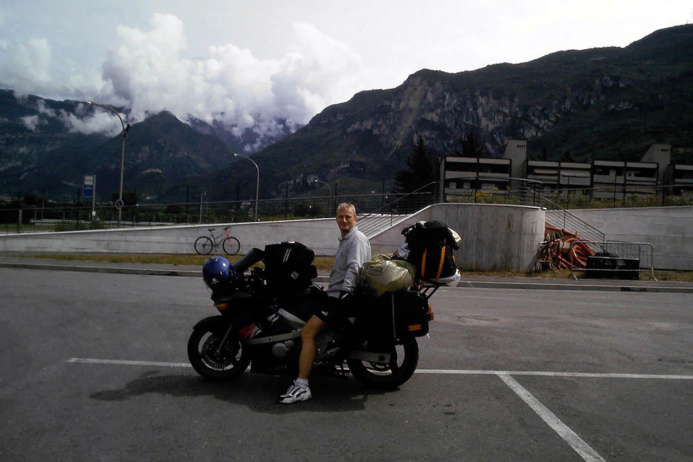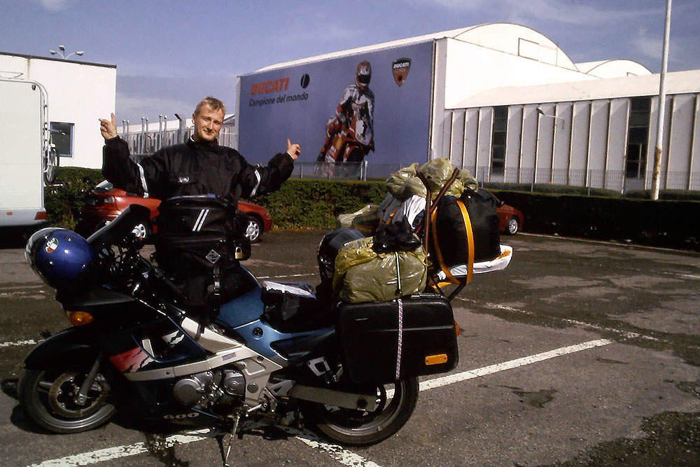 umrundet und auf dem Motorrad Mailand durchquert. 2003 auf dem Motorrad