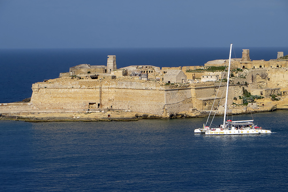 | BIRZEBBUGIA ganz im Süden der Insel hat einen Containerhafen und ist nicht ganz so schön! Wir haben uns dort nur eine Festung angesehen. Diese verfügt über unterirdische Tunnel zum offenen Meer. |