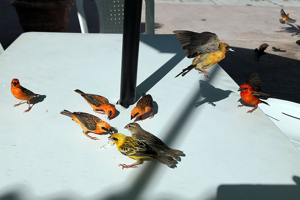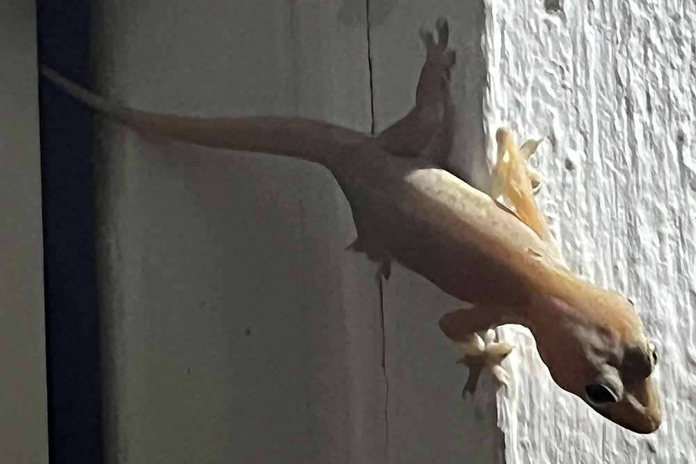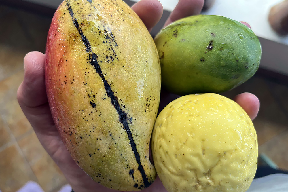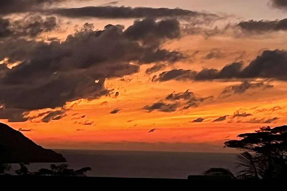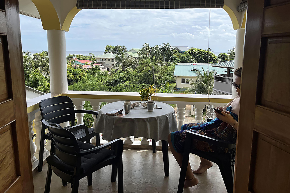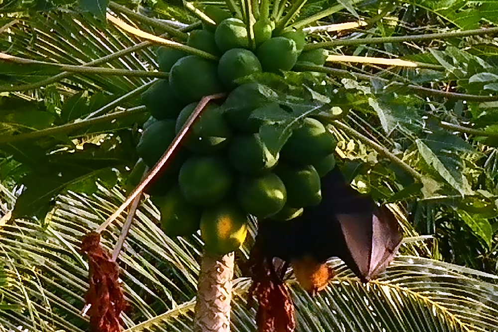 | 24.12.2022 Umzugstag, wir reisen in den Norden der Insel! In der zweiten Wohnung "Palmier" in der "Lemongrass Lodge" empfängt man uns mit gekühltem Lemongrasstea und Früchten aus dem eigenen Garten. Auch dies ist es ein Traumdomizil! Sehr gepflegt mit Meerblick, großem Balkon und Flughunden in den Mangobäumen direkt vor uns. |