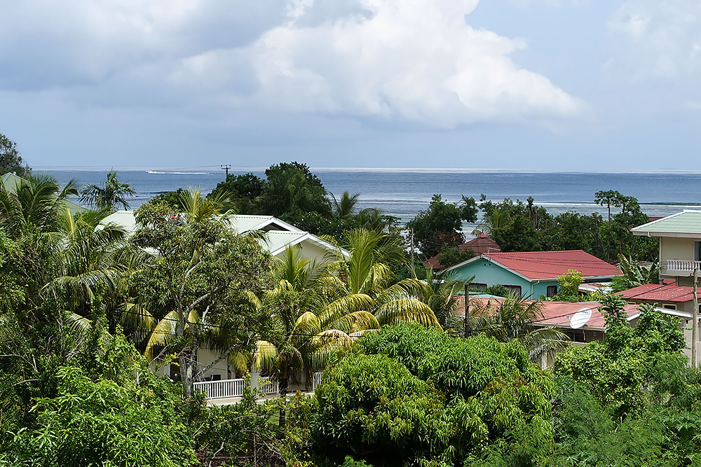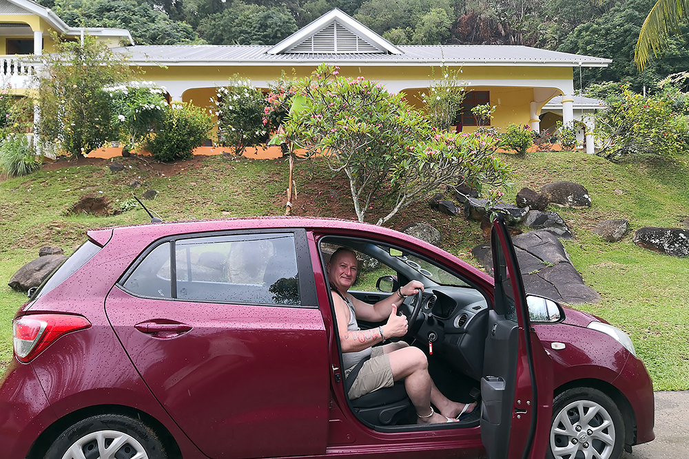 Kreditkarte. Es wird an Ort und Stelle ein Zettel mit den nötigsten Daten ausgefüllt und das Auto sogar wieder abgeholt, wo immer man es wünscht. Einfach das Auto dort hingestellt, den Schlüssel unter die Fußmatte gelegt, die Türen verriegelt und irgendwann kommt dann der Abholservice. Für 40,-€ am Tag ist die Miete sogar noch sehr erschwinglich! Bei Ankunft regnet es in Strömen, was das Fahren mit einem Rechtslenker im Linksverkehr, auf viel zu schmalen Straßen, zu einem Abenteuer macht. Da auch noch unsere App den Weg offline nicht anzeigen will, sind wir gezwungen schon nach wenigen Kilometern zu halten. Da hört es schlagartig auf zu regnen, es scheint die Sonne wieder und die App tut auch das, was sie soll. Willkommen auf den Seychellen! Ein paar Minuten später erreichen wir unsere erste Unterkunft "Maison Marikel" Mari (40) ist in Deutschland aufgewachsen und führt ihr Feriendomizil nach dessen Gründlichkeit, zusammen mit ihrer Mutter. Schöner kann man seinen Urlaub kaum verbringen! Mit Meerblick vom Balkon, dieses und Supermärkte quasi direkt vor der Tür und Restaurants nur ein paar Gehminuten entfernt. |