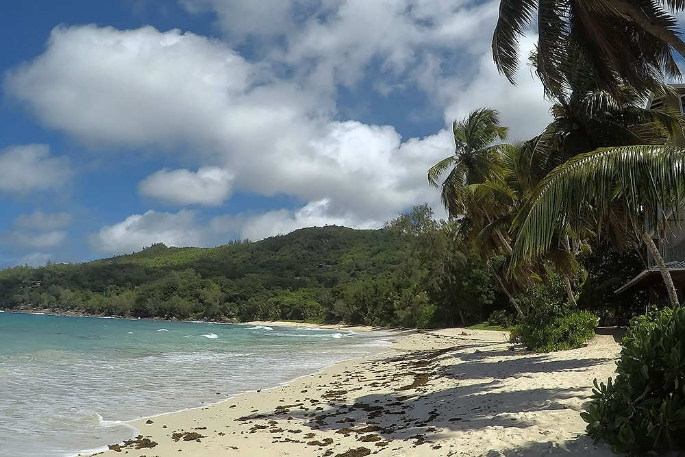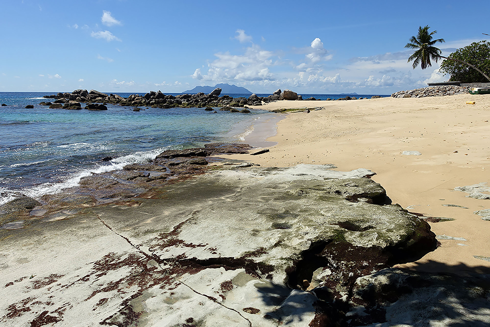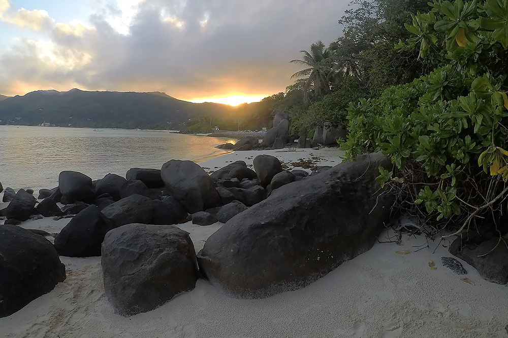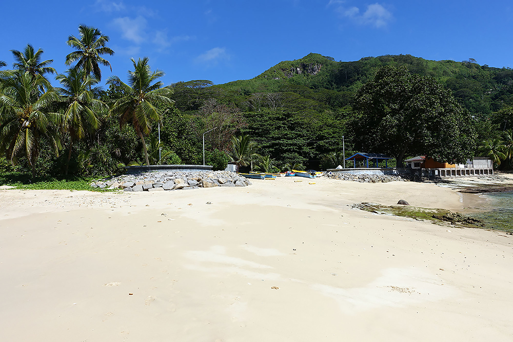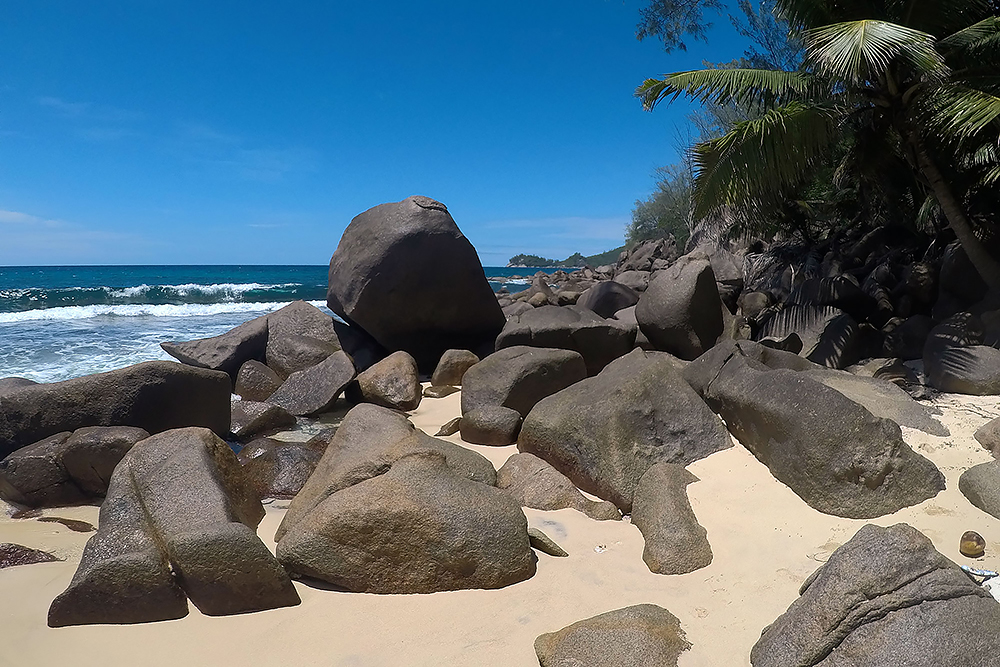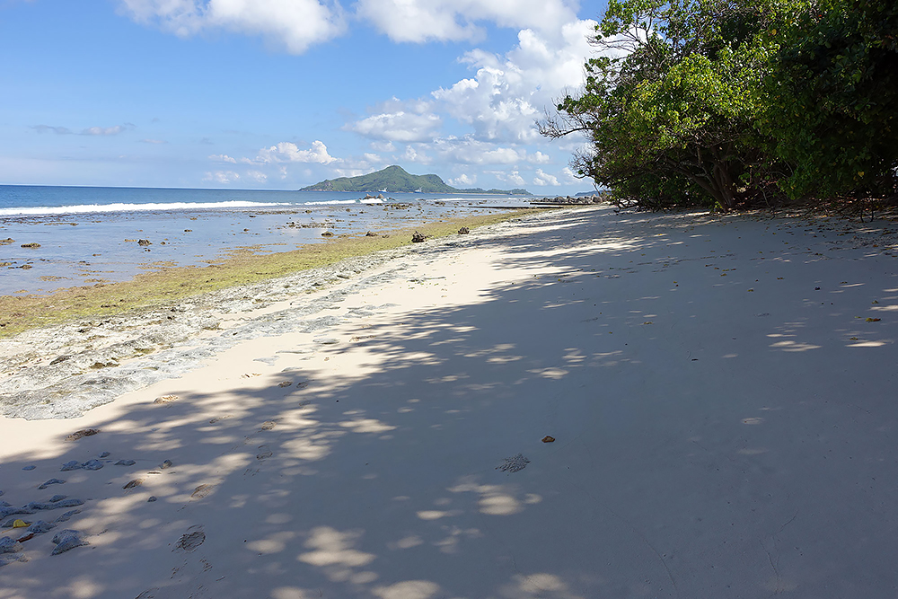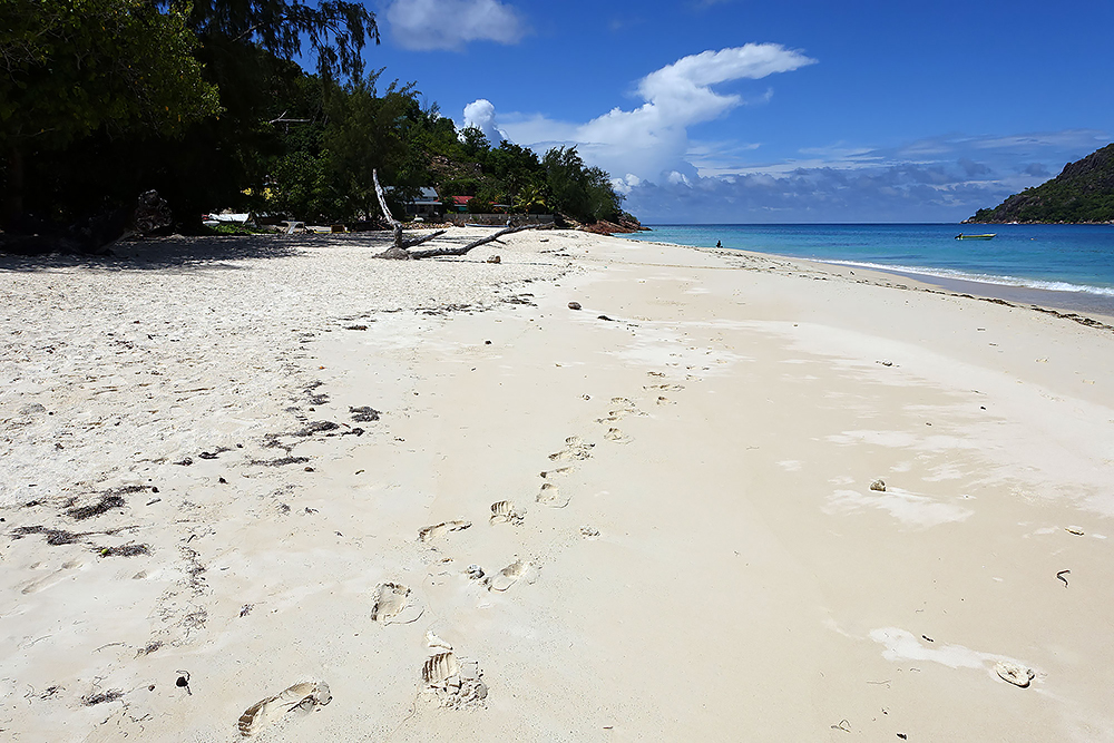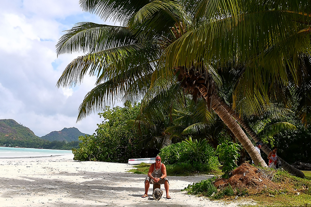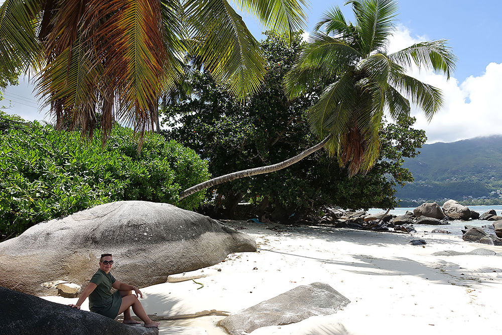 | 20.12.2022 Wir sind mobil und erkunden daher die Gegend am nächsten Tag etwas weitläufiger. Zu unserer freudigen Überraschung finden wir hier reichlich einsame Strände und fühlen uns sofort sauwohl auf den Seychellen! Am Strand Anse Gouverment in der Baie Lazar bleiben wir hängen. |