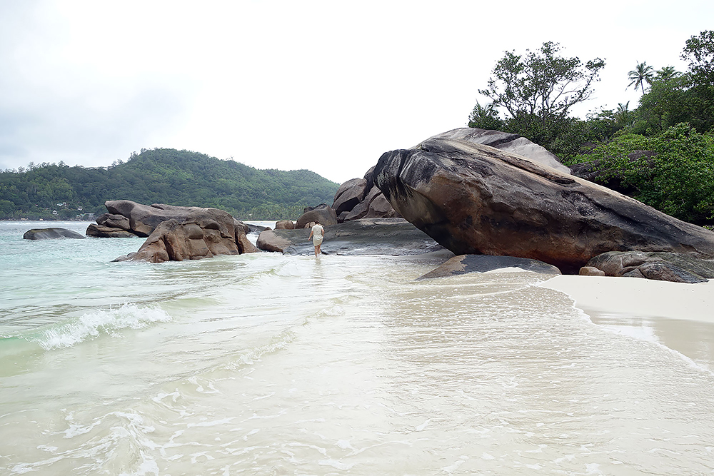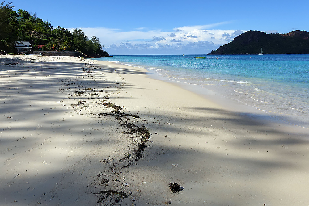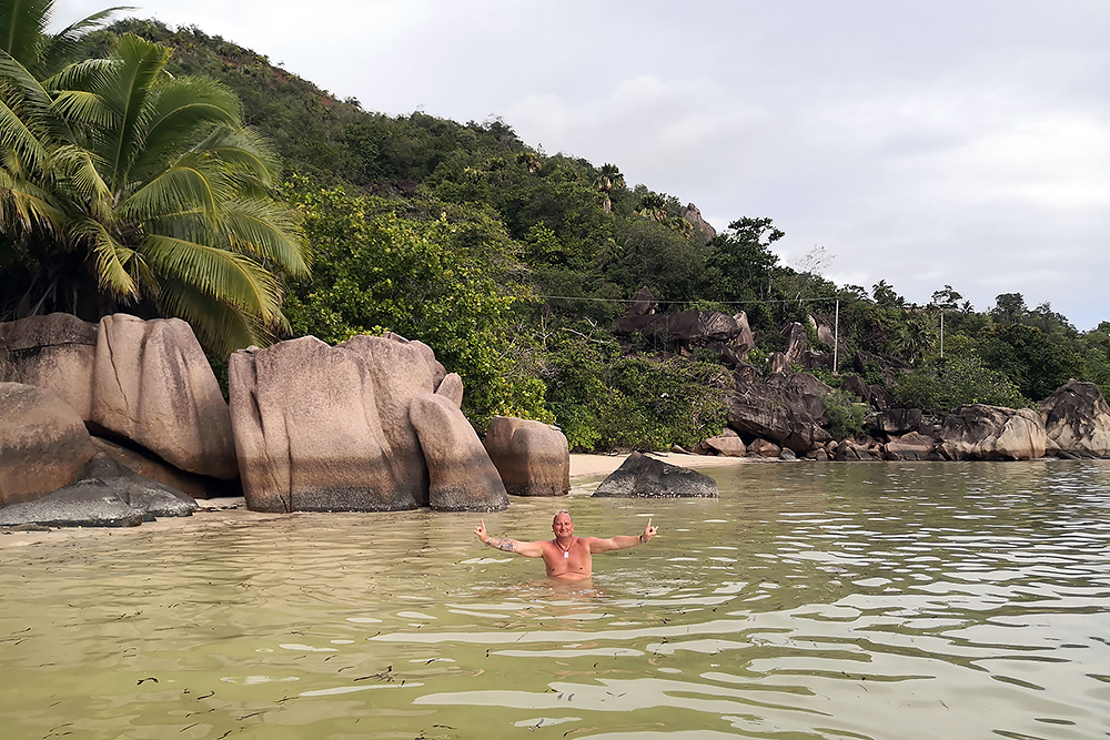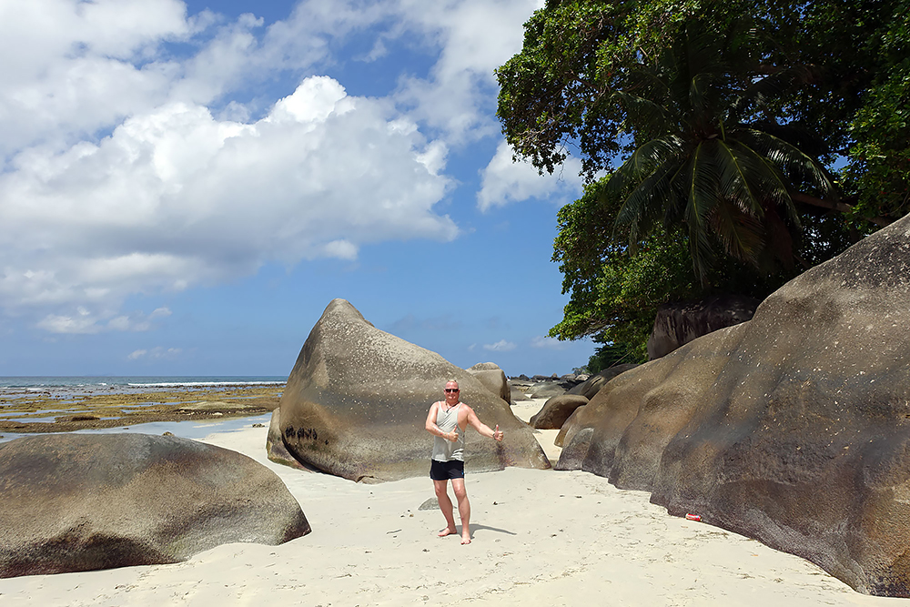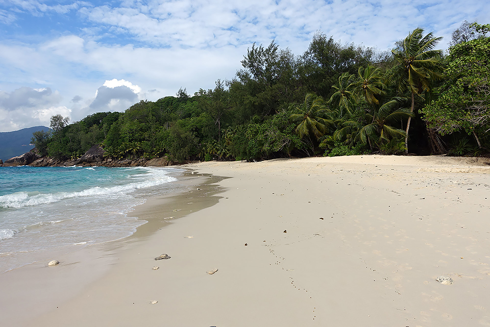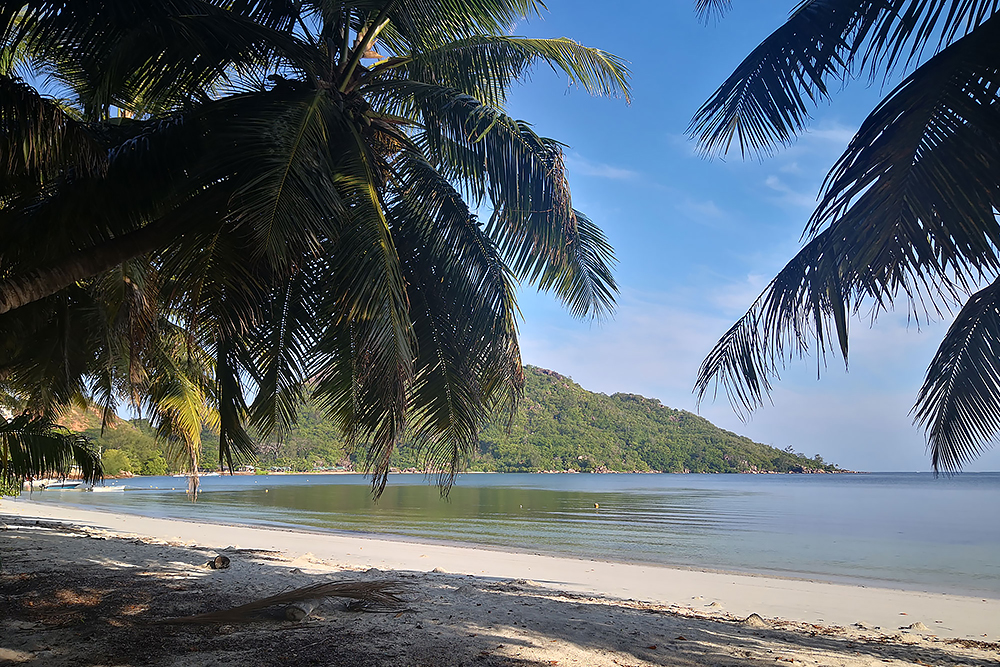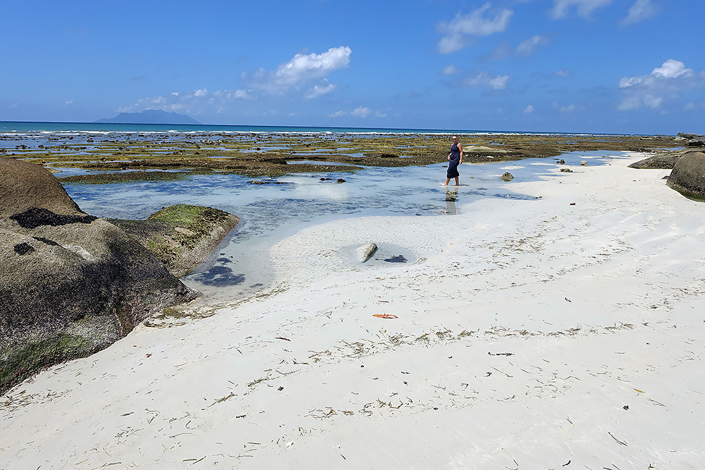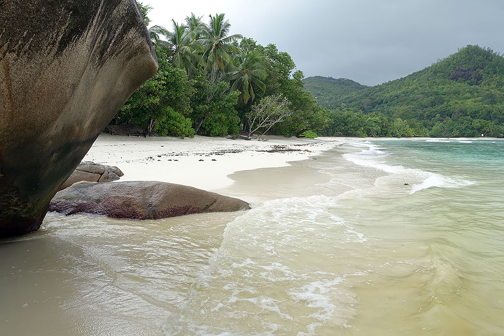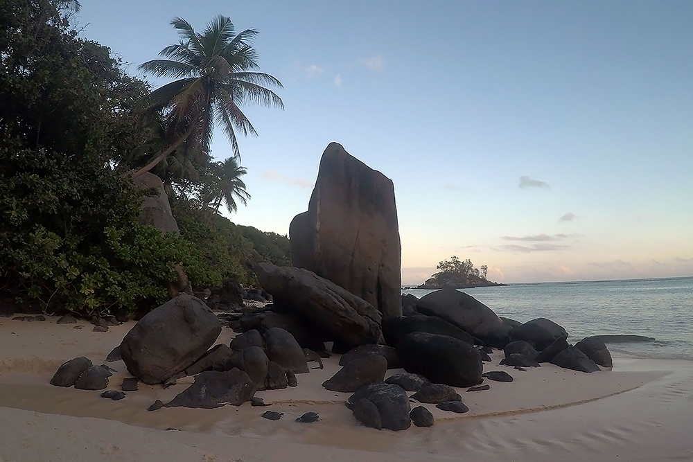 | 20.12.2022 Wir sind mobil und erkunden daher die Gegend am nächsten Tag etwas weitläufiger. Zu unserer freudigen Überraschung finden wir hier reichlich einsame Strände und fühlen uns sofort sauwohl auf den Seychellen! Am Strand Anse Gouverment in der Baie Lazar bleiben wir hängen. |