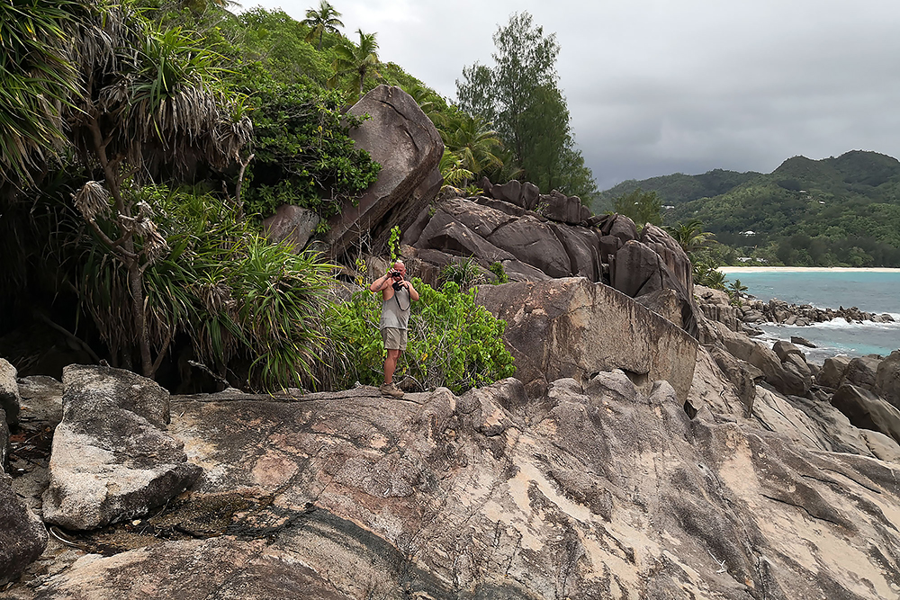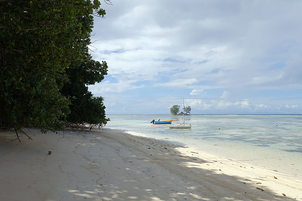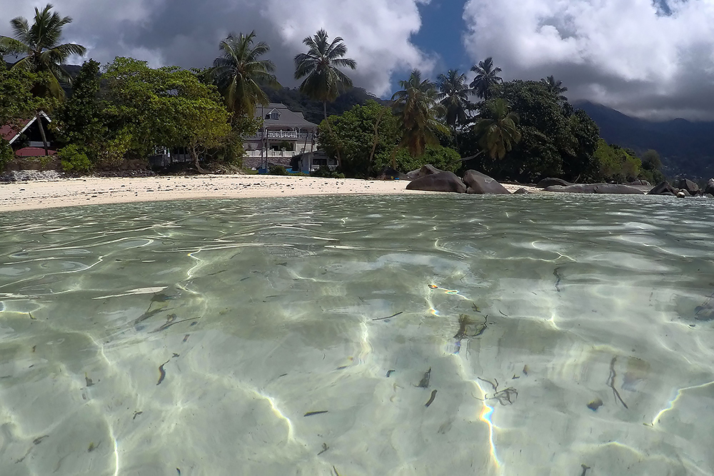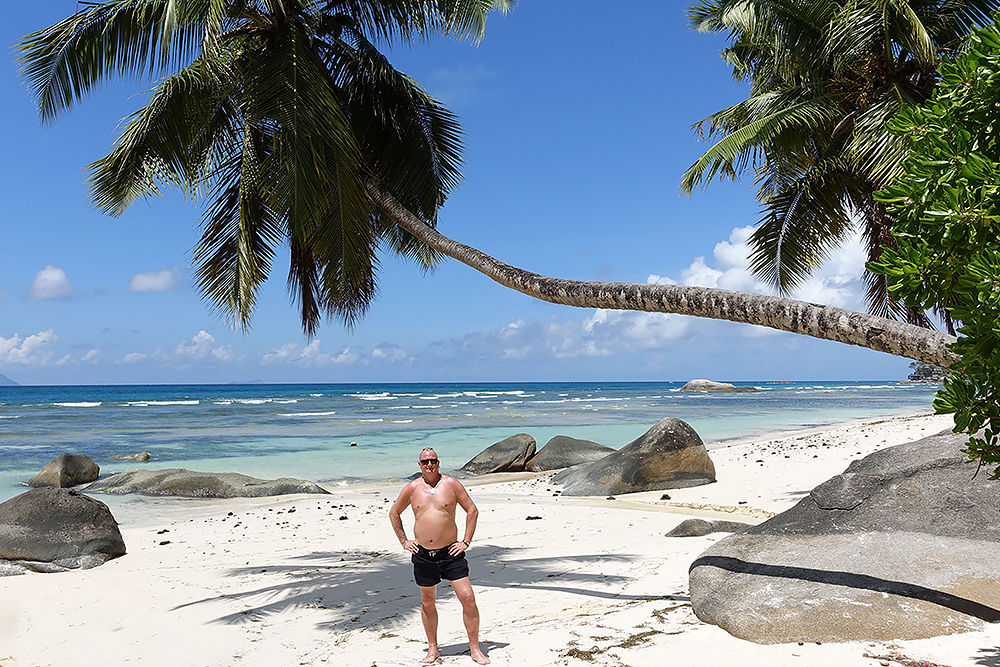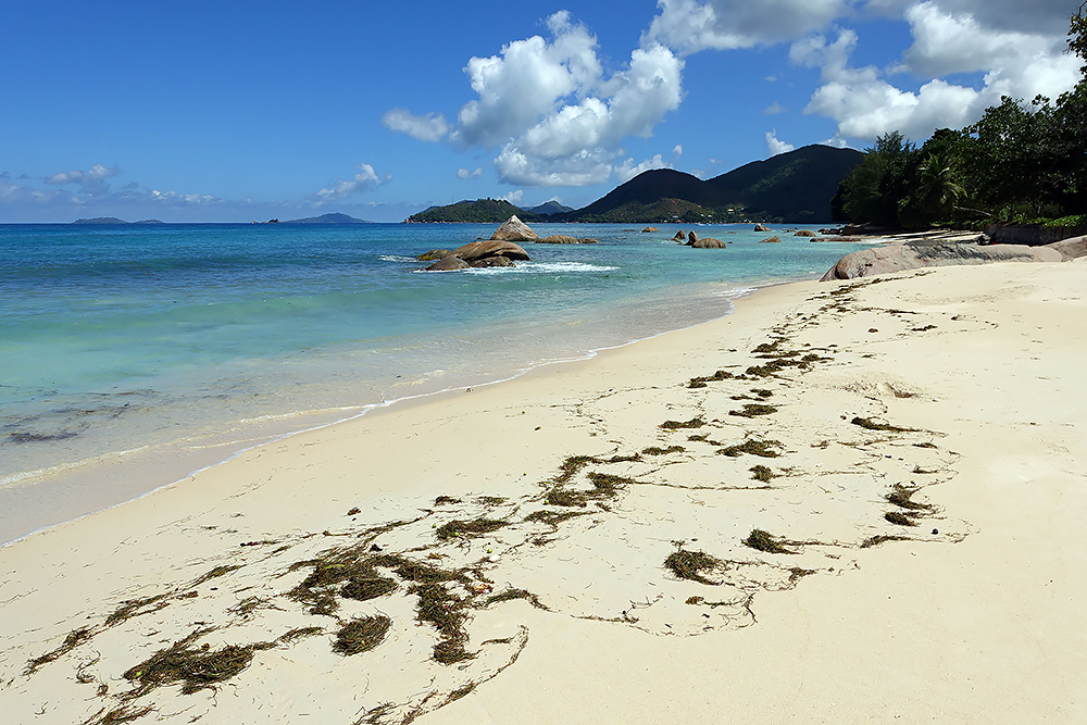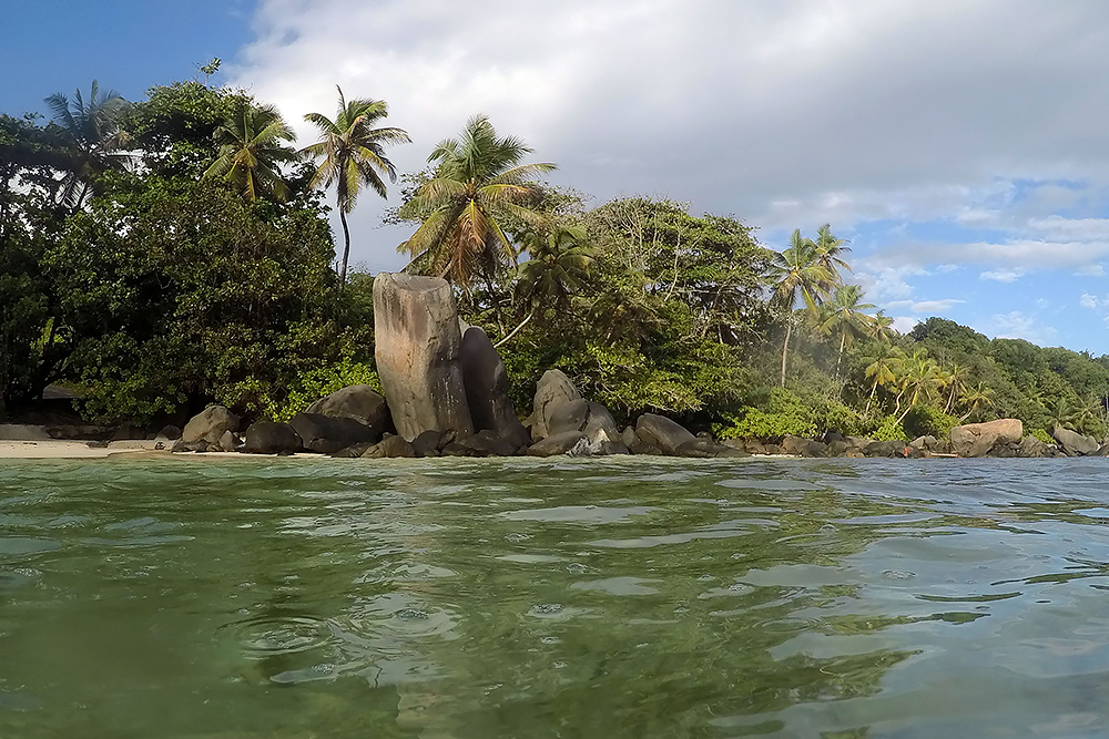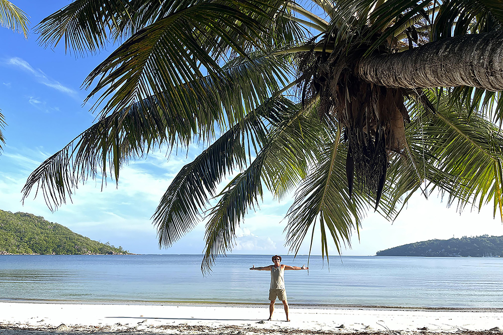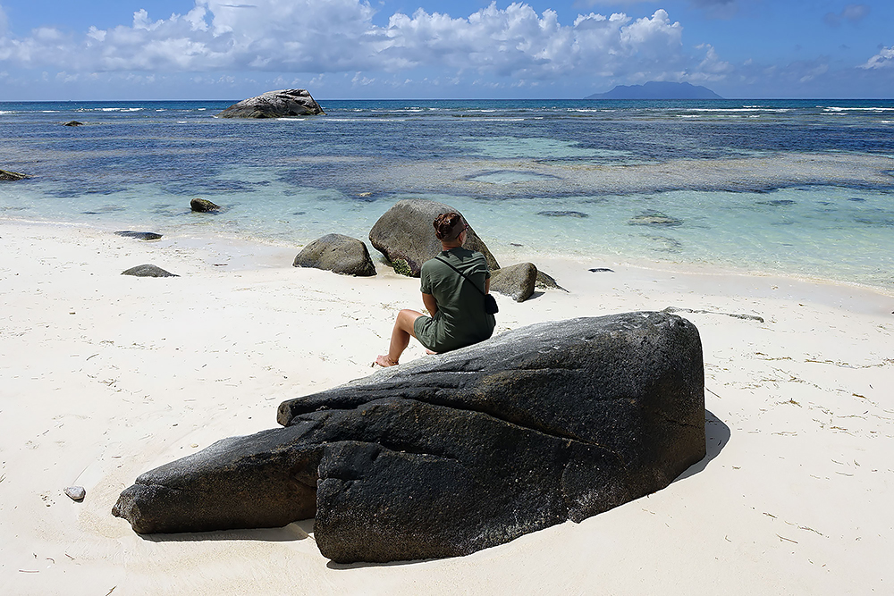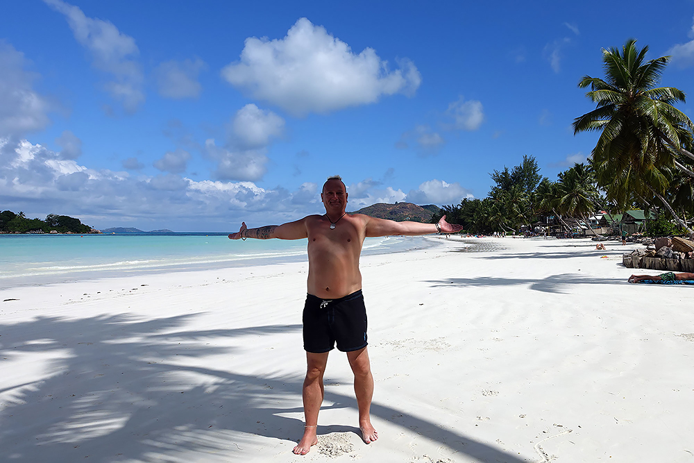| 20.12.2022 Wir sind mobil und erkunden daher die Gegend am nächsten Tag etwas weitläufiger. Zu unserer freudigen Überraschung finden wir hier reichlich einsame Strände und fühlen uns sofort sauwohl auf den Seychellen! Am Strand Anse Gouverment in der Baie Lazar bleiben wir hängen. |