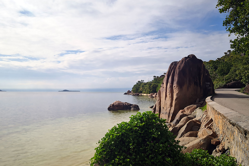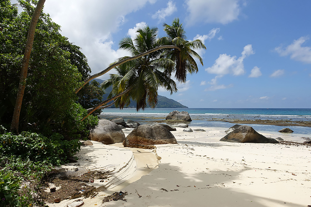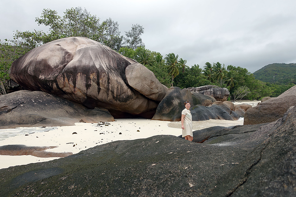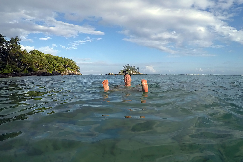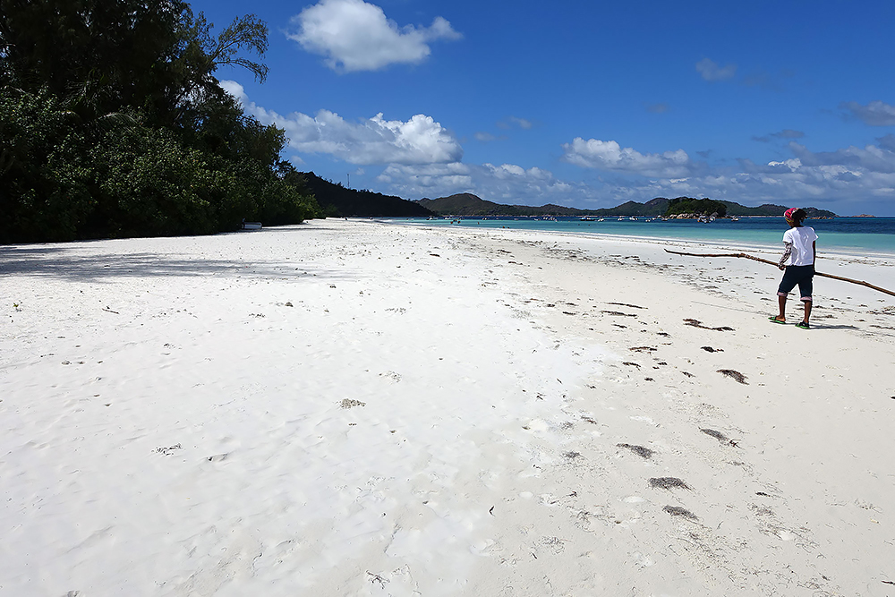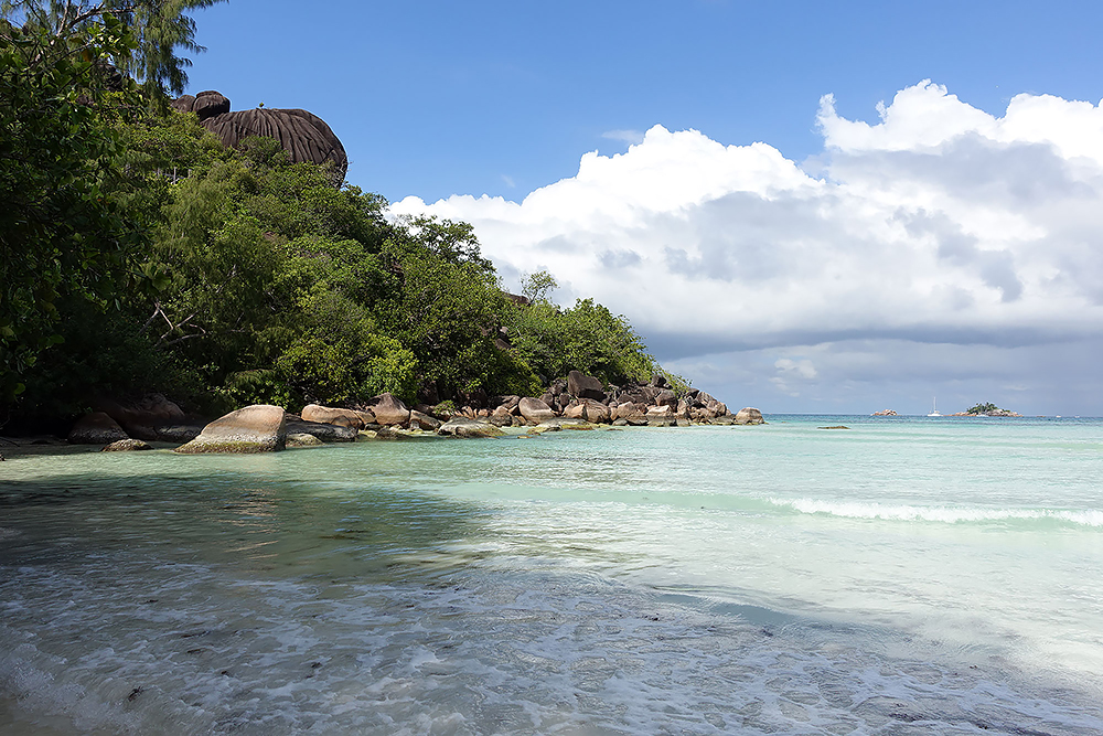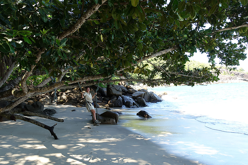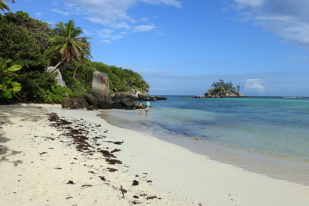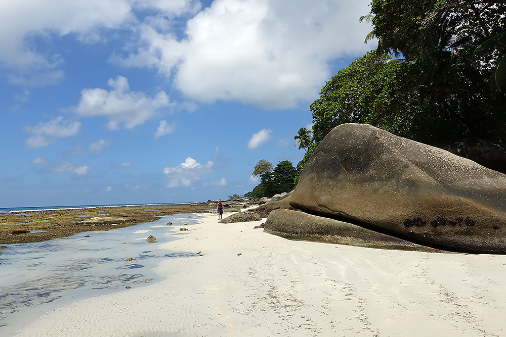 | 20.12.2022 Wir sind mobil und erkunden daher die Gegend am nächsten Tag etwas weitläufiger. Zu unserer freudigen Überraschung finden wir hier reichlich einsame Strände und fühlen uns sofort sauwohl auf den Seychellen! Am Strand Anse Gouverment in der Baie Lazar bleiben wir hängen. |