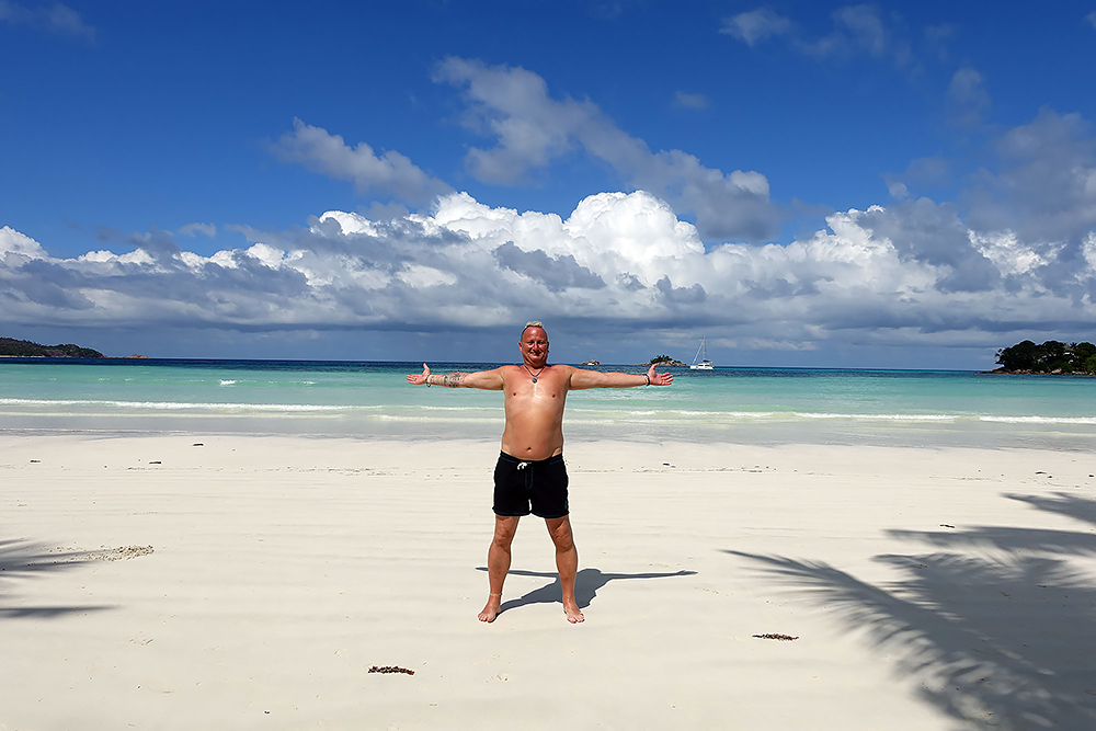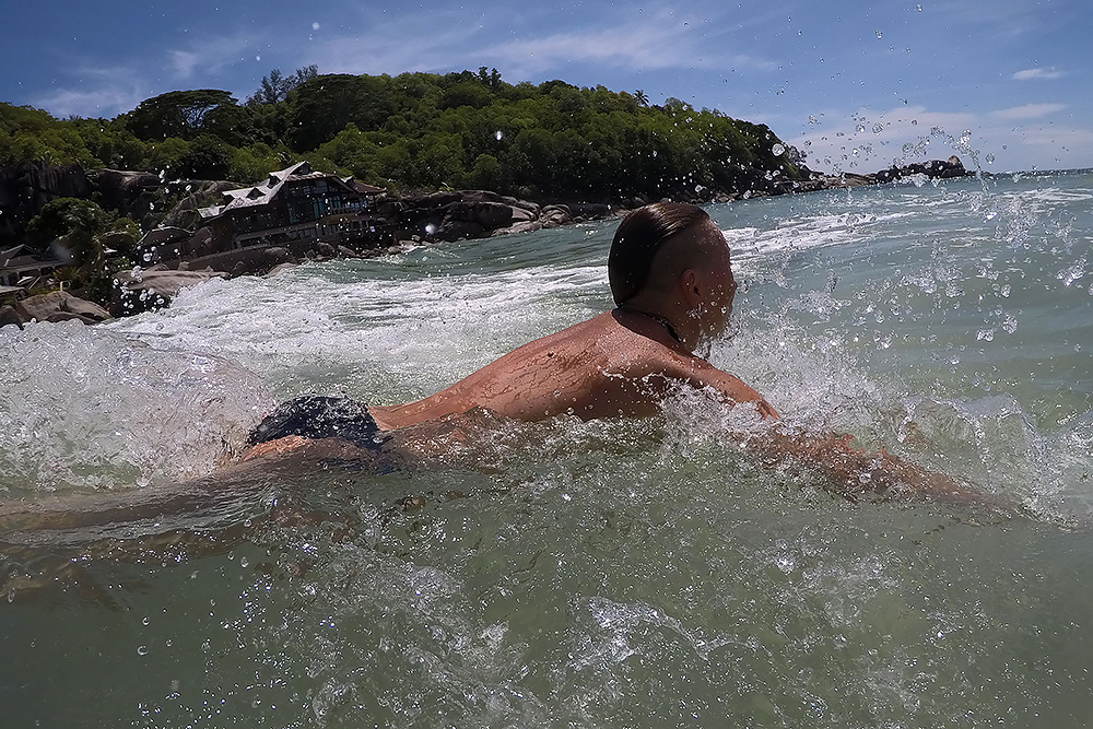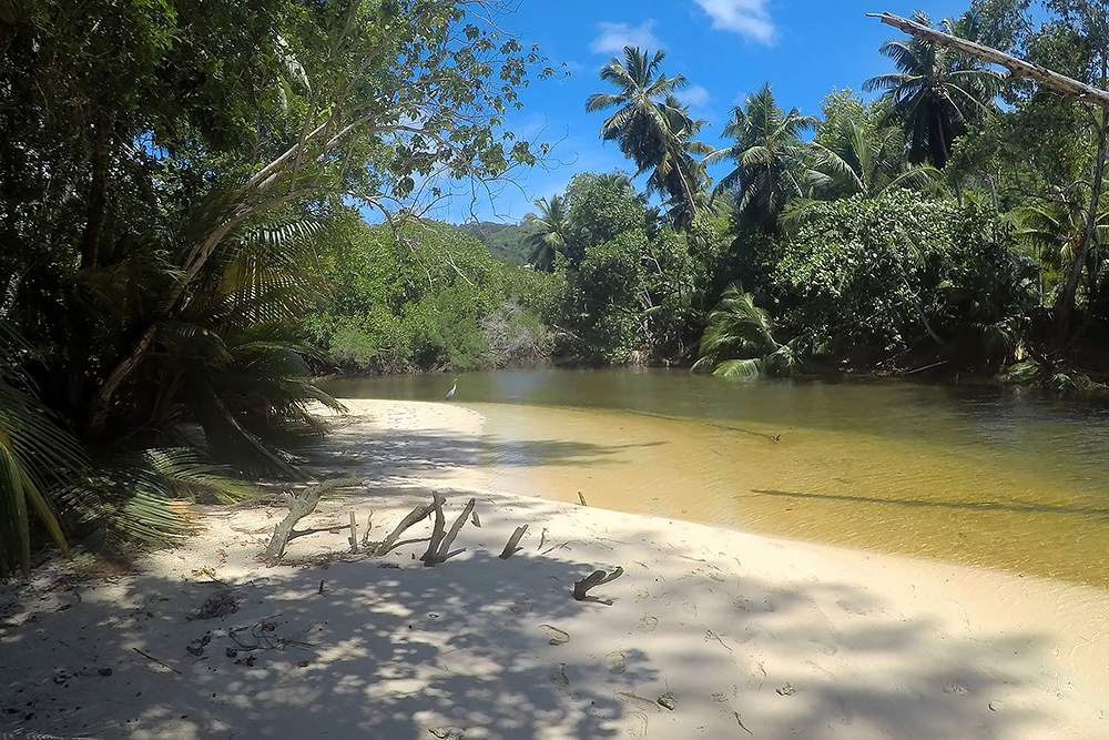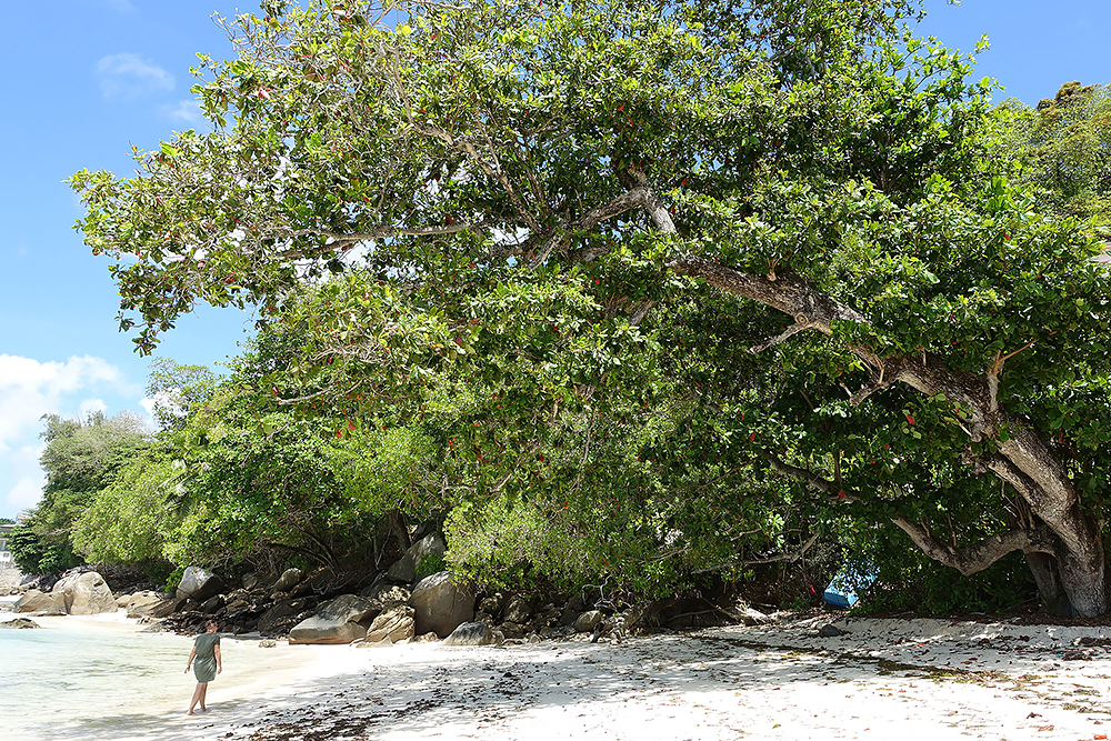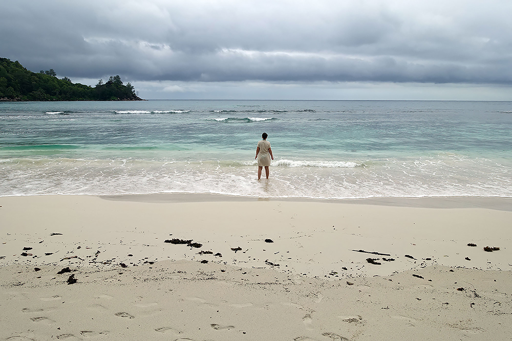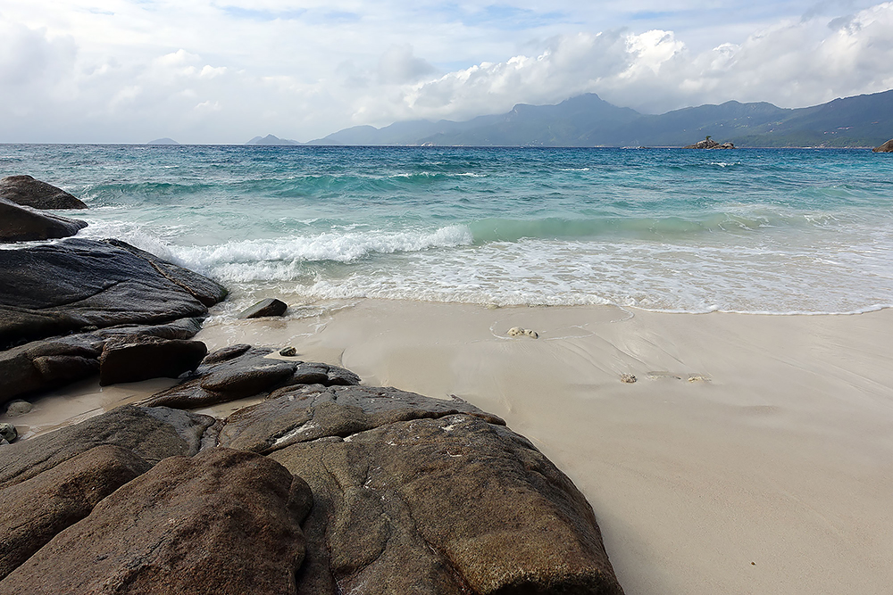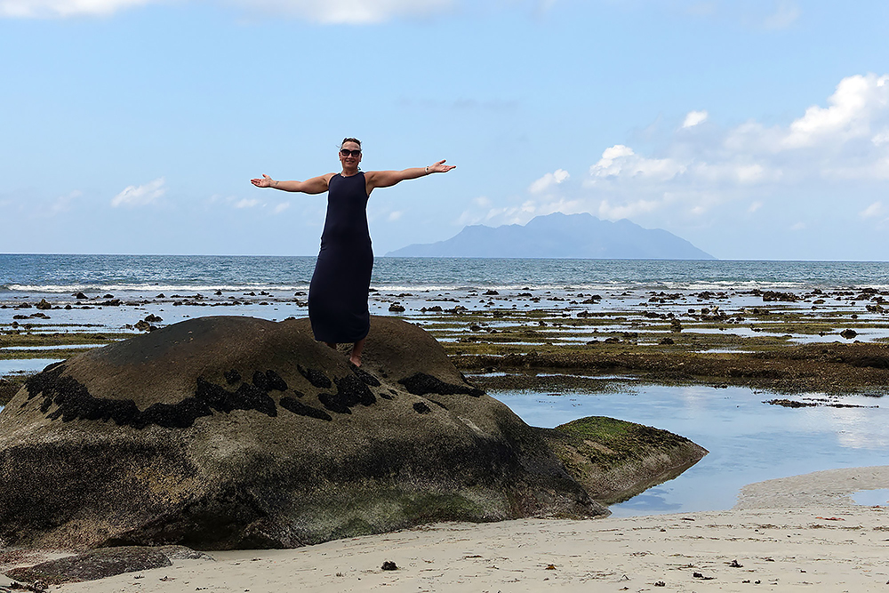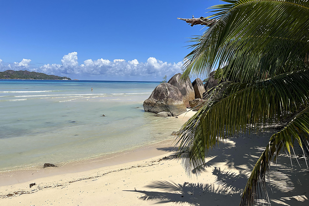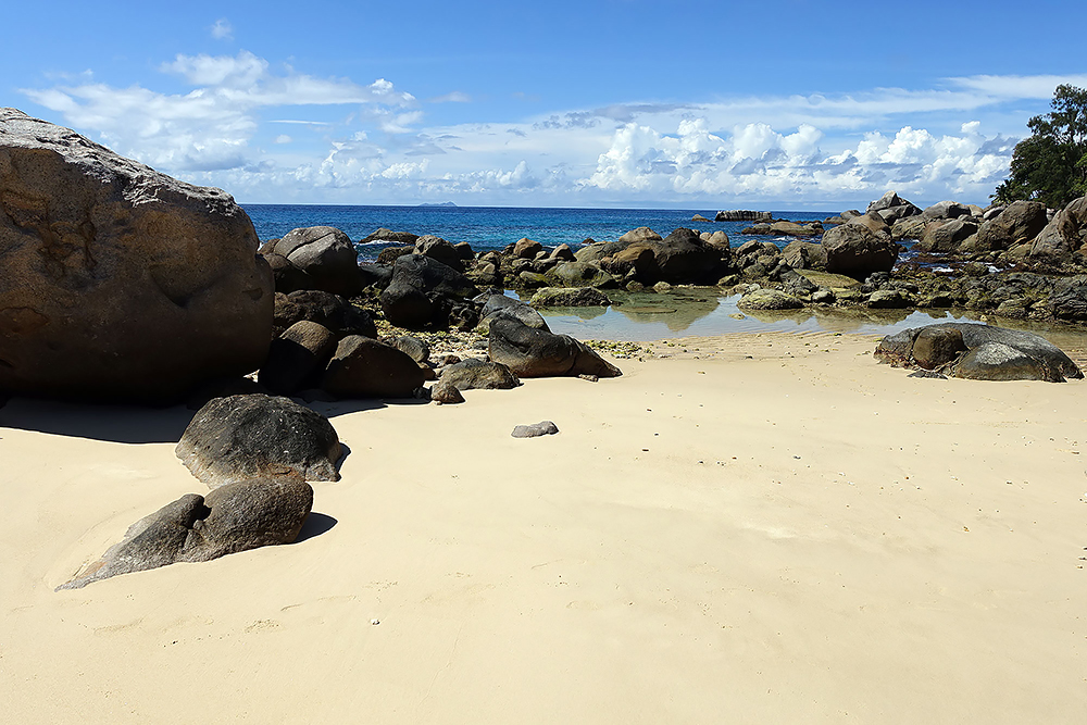 | 20.12.2022 Wir sind mobil und erkunden daher die Gegend am nächsten Tag etwas weitläufiger. Zu unserer freudigen Überraschung finden wir hier reichlich einsame Strände und fühlen uns sofort sauwohl auf den Seychellen! Am Strand Anse Gouverment in der Baie Lazar bleiben wir hängen. |