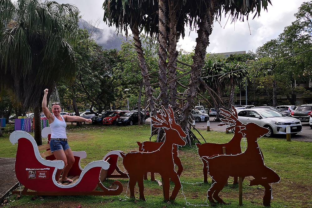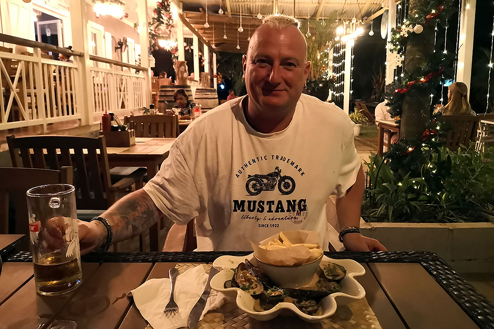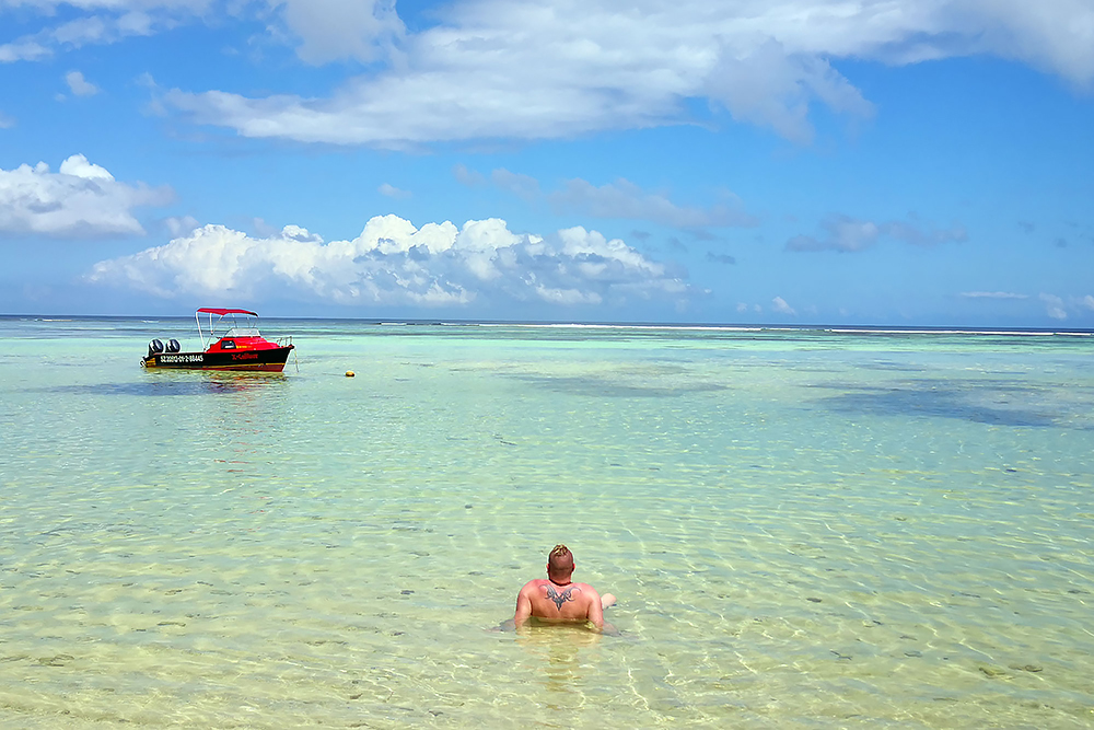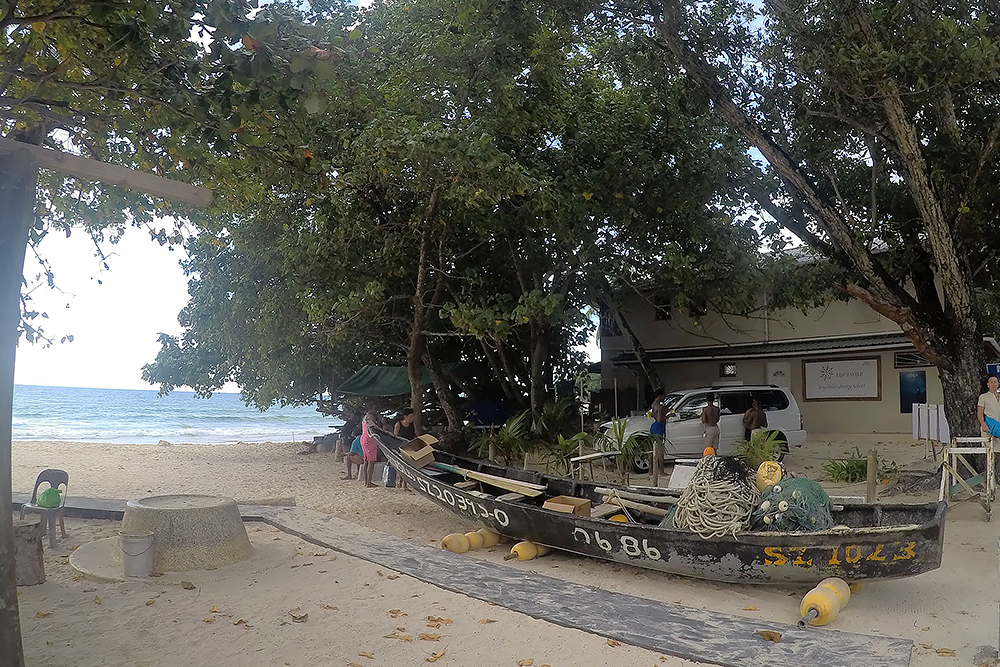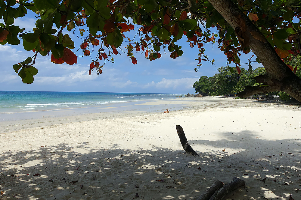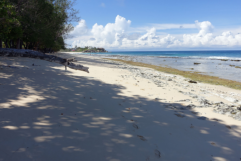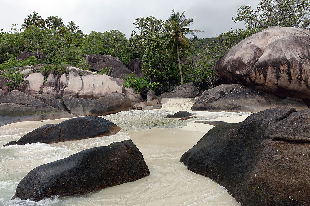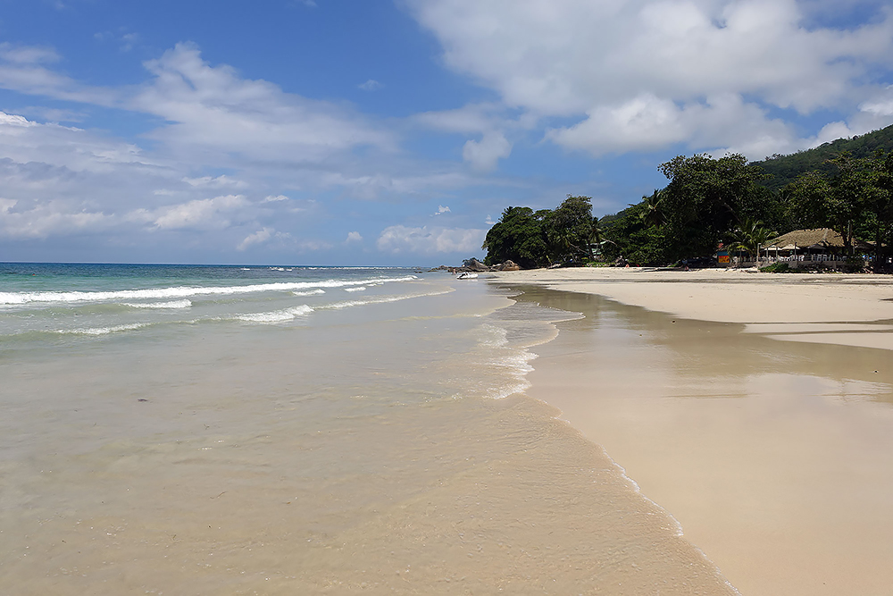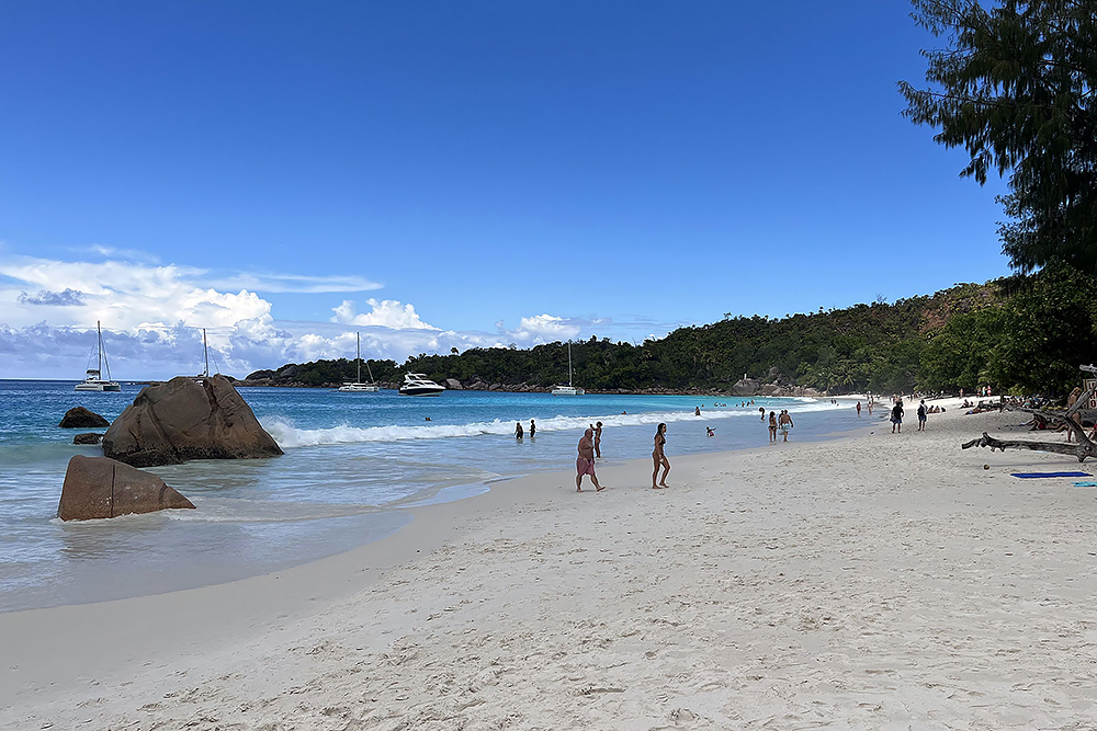 | 20.12.2022 Wir sind mobil und erkunden daher die Gegend am nächsten Tag etwas weitläufiger. Zu unserer freudigen Überraschung finden wir hier reichlich einsame Strände und fühlen uns sofort sauwohl auf den Seychellen! Am Strand Anse Gouverment in der Baie Lazar bleiben wir hängen. |
