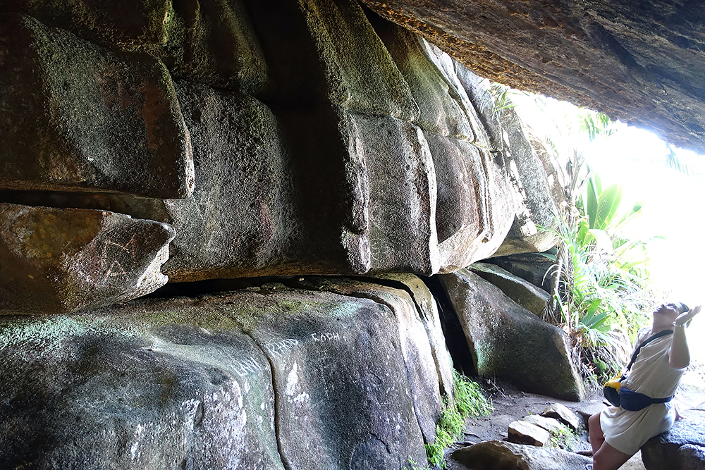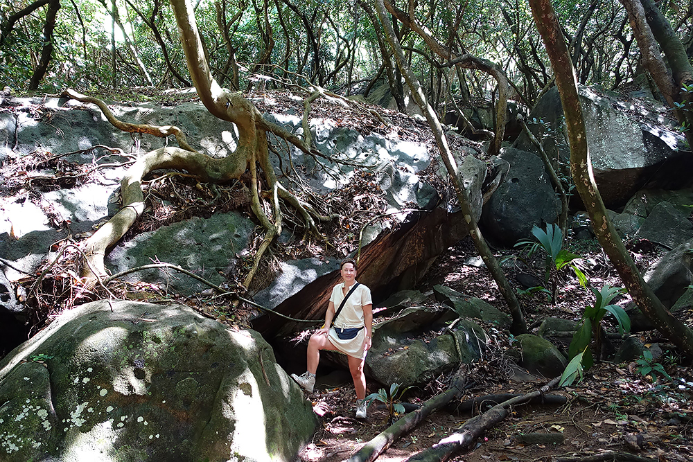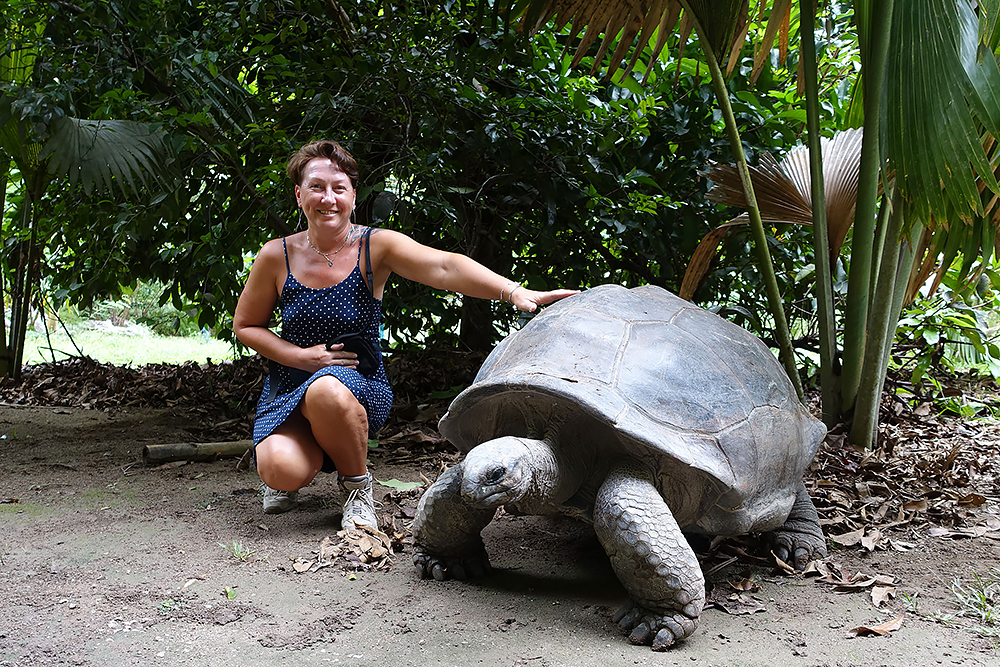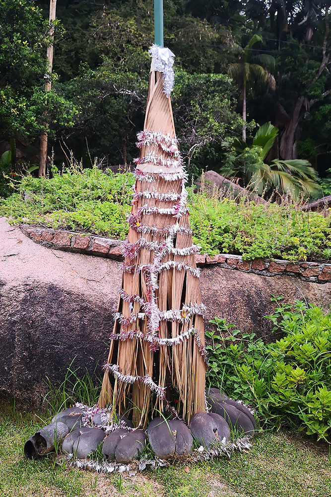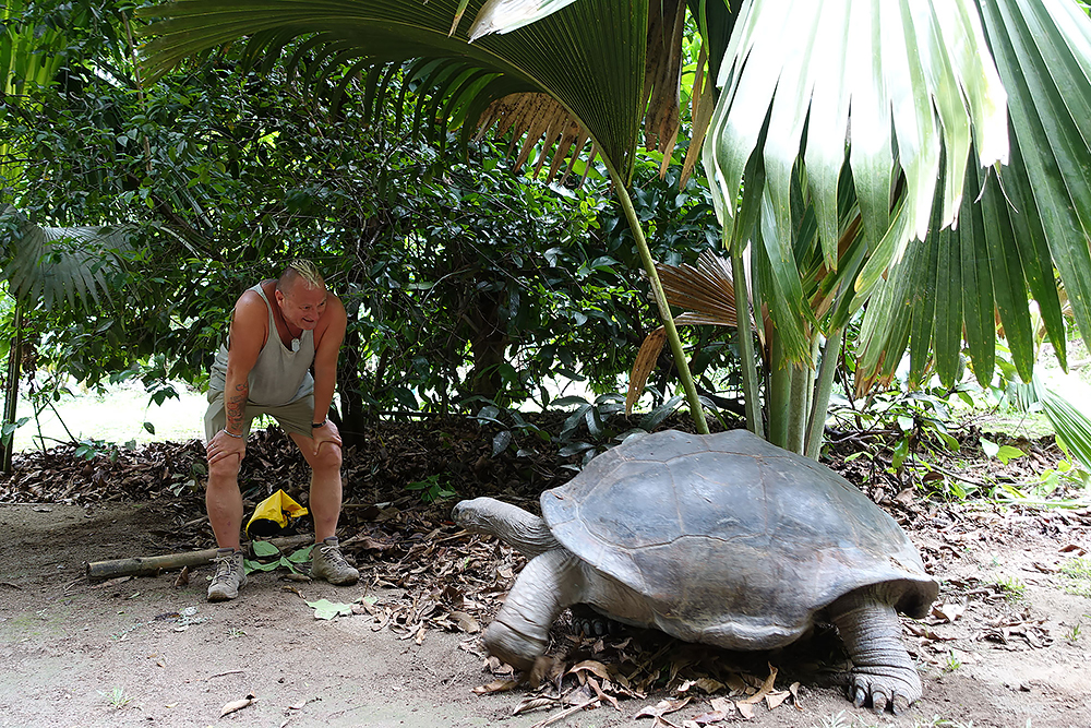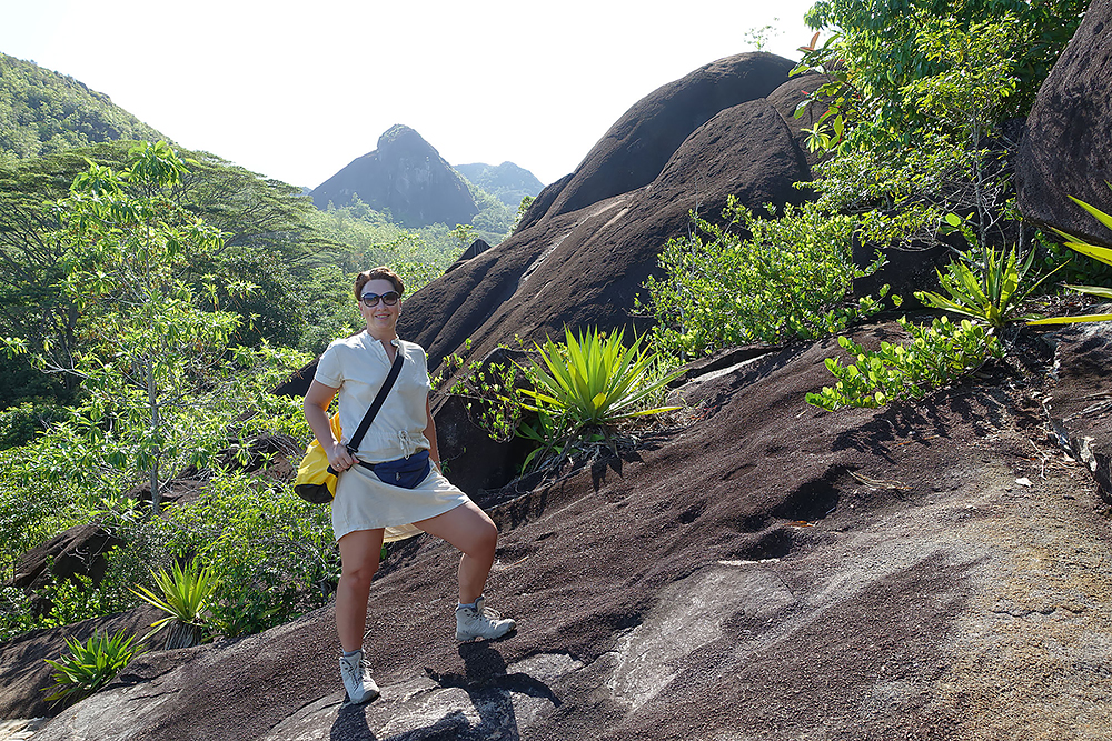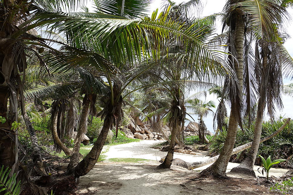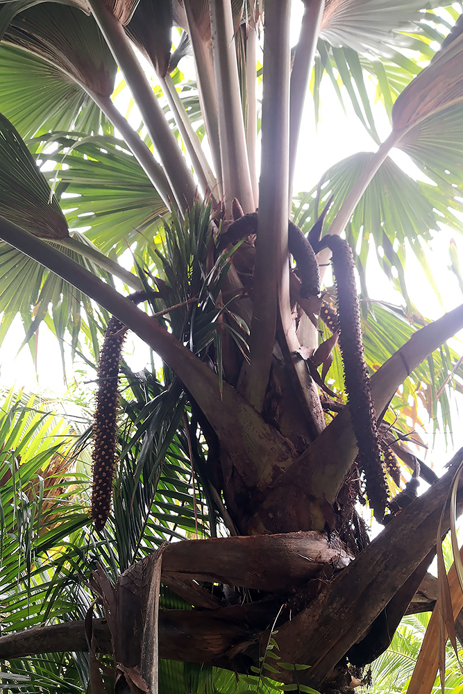 | 02.01.2023 Im neuen Jahr wandern wir durch den Ferdinand Nature Reserve, in dem unter anderem die riesigen Palmen wachsen, für denen die Seychellen so bekannt sind, denn sie wachsen nur hier. Ihre Kokosnussfrüchte, sind entwerder männlich oder weiblich. Das Abbild der weiblichen dient übrigens auch als Visastempel. Doch wer tropisches Klima kennt der weiß auch, so eine "jungle tour" ist nicht witzig, die kostet Kraft! |