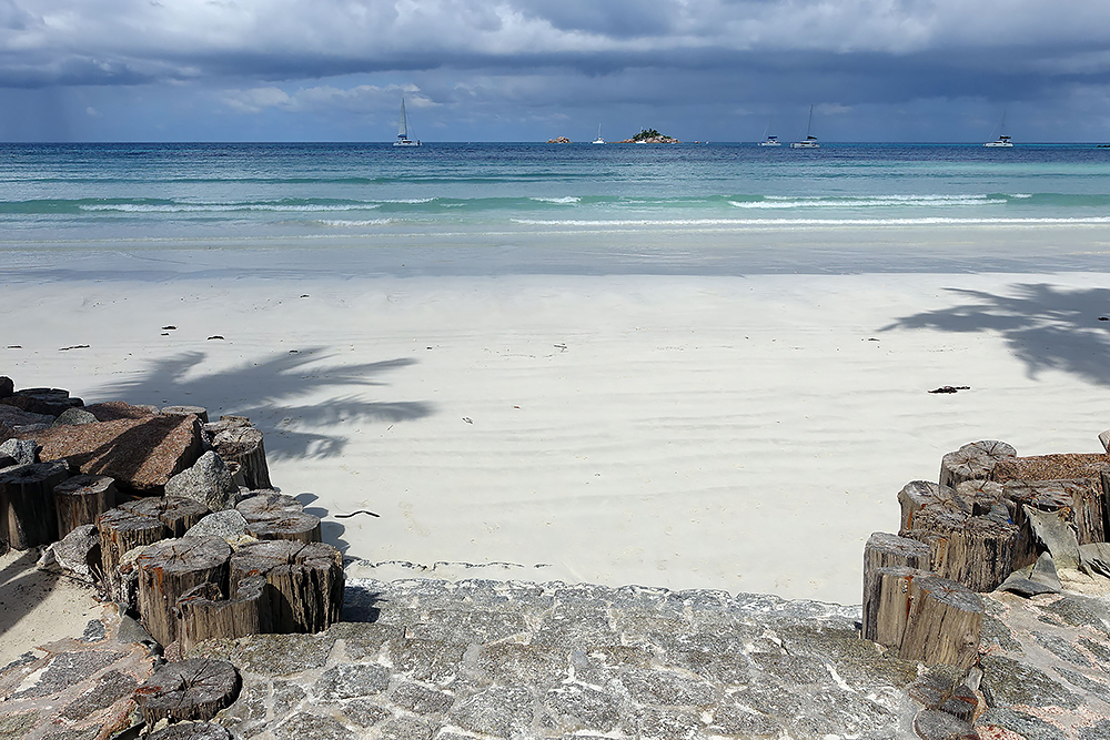 fünfzehn, Überfahrt zur Insel Praslin. Hier wollen wir am längsten