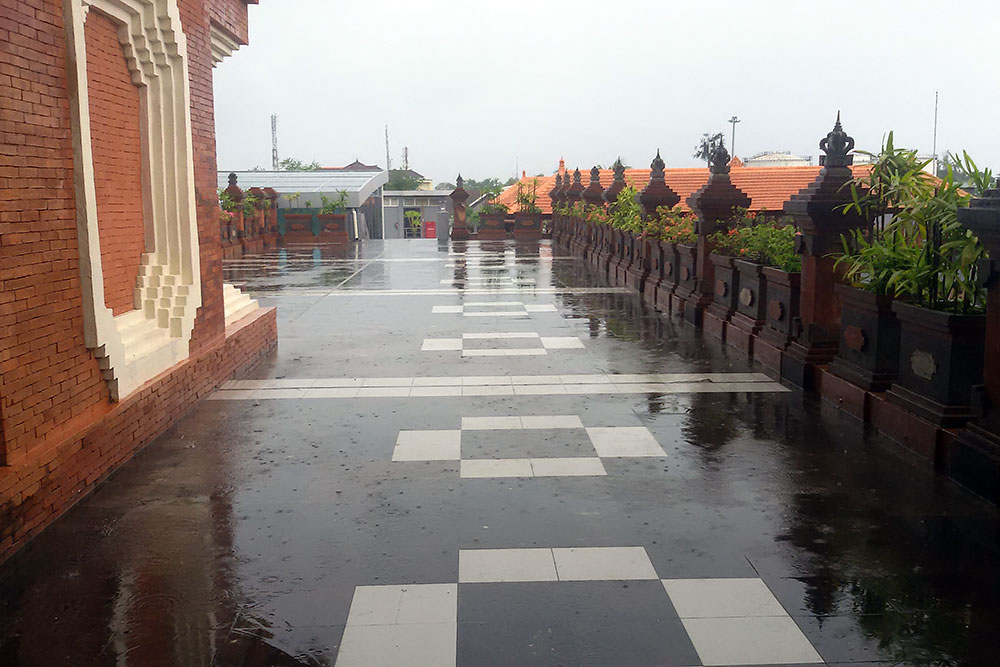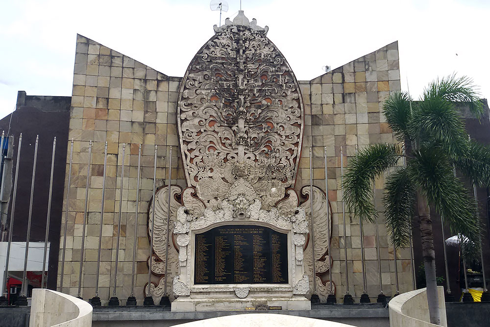 | Das Denkmal unten auf dem Bild erinnert im Stadtzentrum an den Anschlag vom 12. Oktober 2002, wo 202 Menschen getötet und über 209 zum Teil schwer verletzt wurden. Der Bombenanschlag war der bisher folgenschwerste Akt von Terrorismus in der indonesischen Geschichte. Die Opfer waren mehrheitlich ausländische Touristen, hauptsächlich Australier. Sechs Deutsche und drei Schweizer, aber auch viele Einheimische fanden sich unter den Toten. |