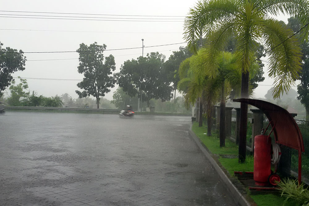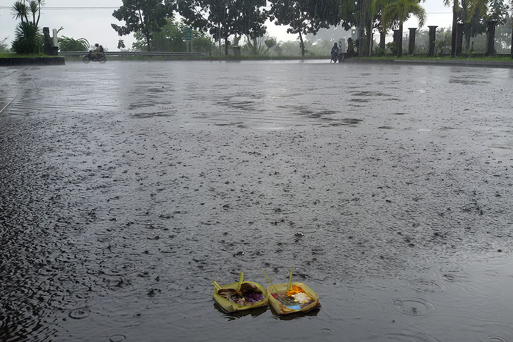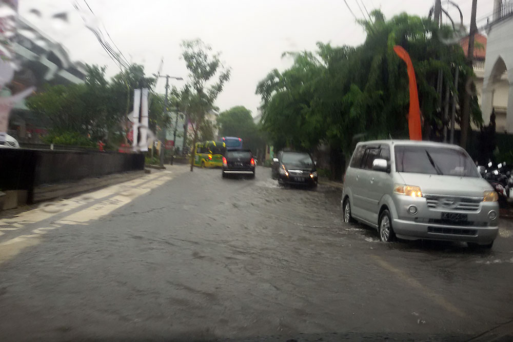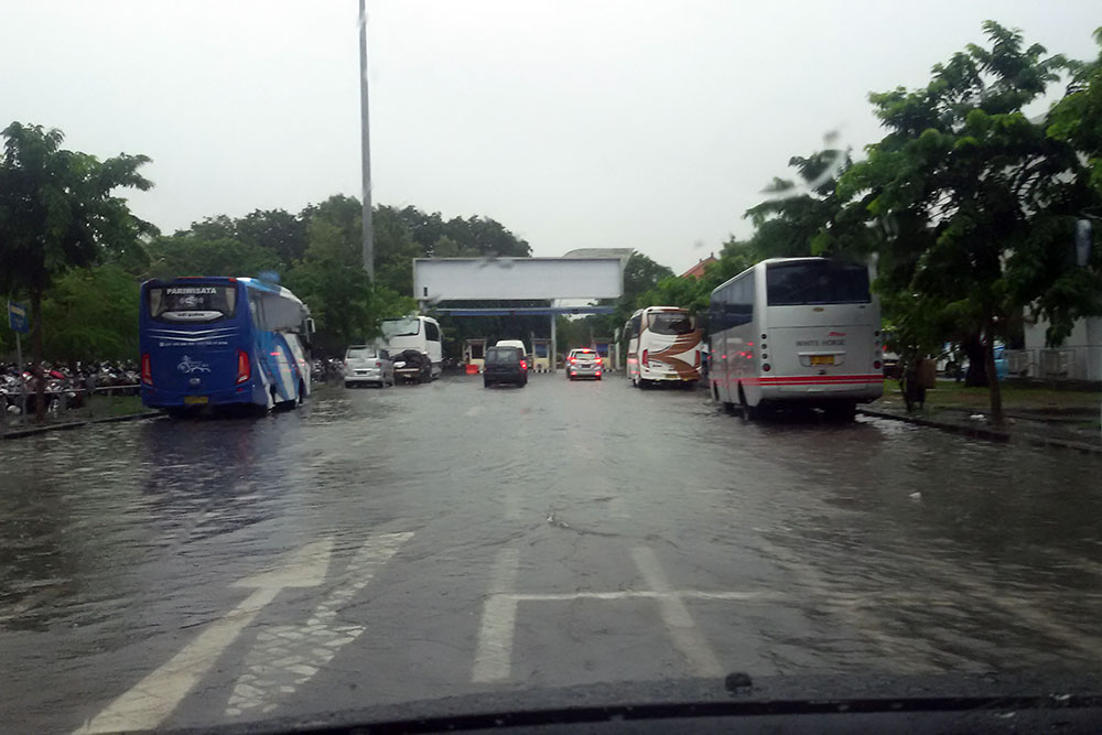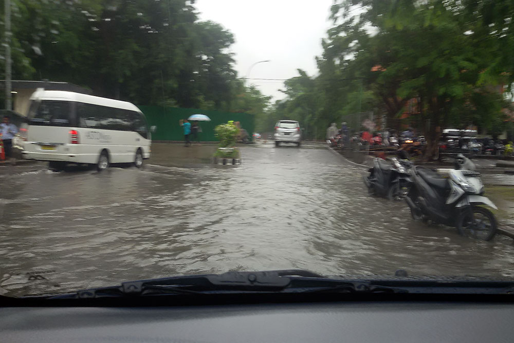Denpasar steht förmlich unter Wasser. Ein Shuttlebus soll es nicht