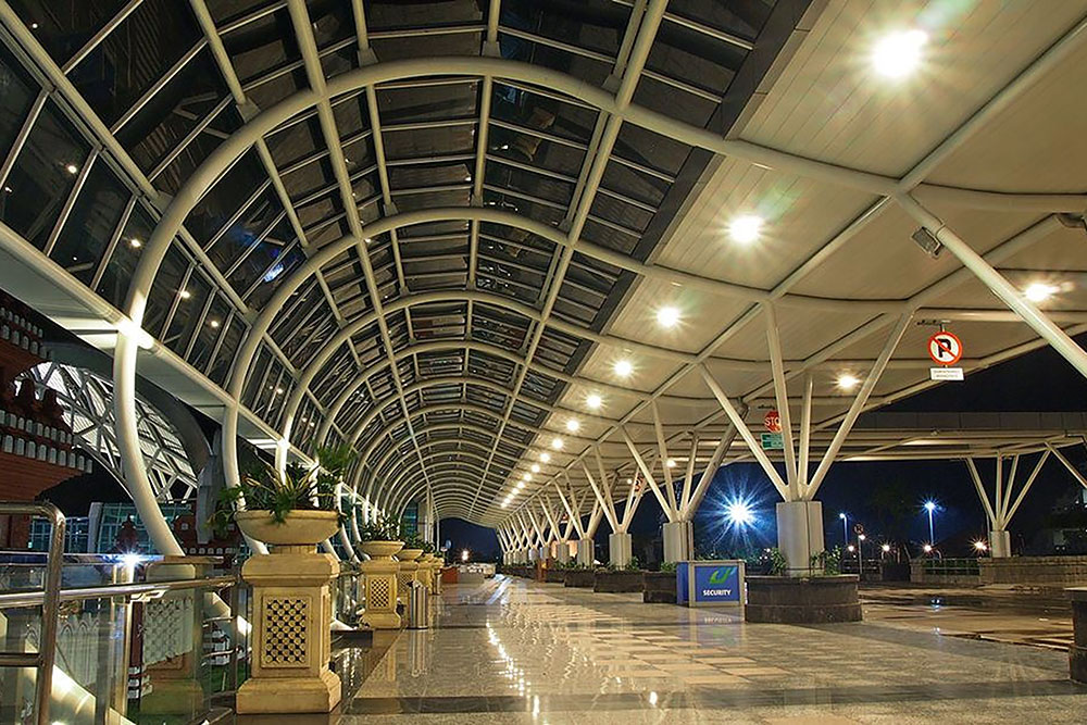 ASIEN INDONESIEN BALI Der internationale Flughafen Ngurah Rai (DPS) in Denpasar, der Hauptstadt der Provinz Bali, hat mit Abstand das schönste Flughafengebäude das ich je gesehen habe. Gebogene Rundrohre bis zu einem Durchmesser von 30 oder gar 40cm, mit Schifterschnitten versehen verschweißt = eine architektonische und handwerkliche Meisterleistung! ![]() ![]() |