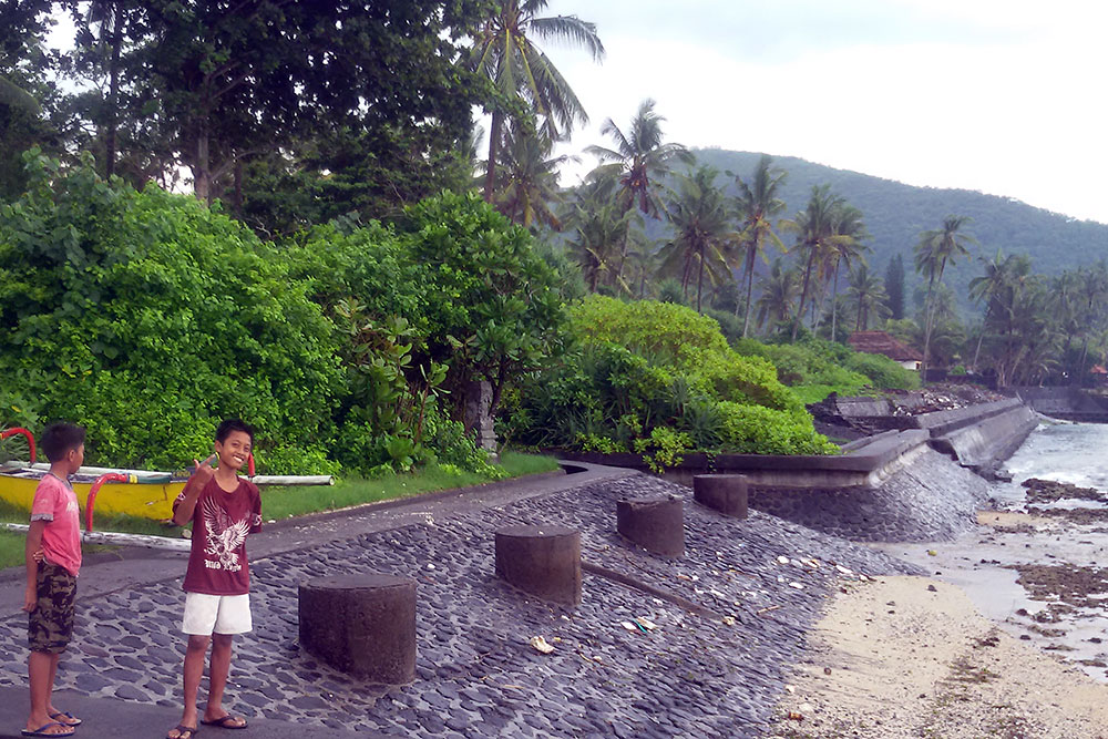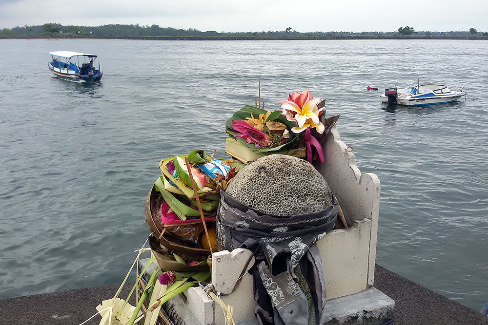 erhalten konnte. Im Internet finde ich später die Antwort darauf: „Candi Dasa, auch Candidasa, hätte wie Kuta einer der beliebtesten Badeorte auf Bali werden können. Doch unüberlegtes Handeln beim Bau neuer und großer Hotels in den 1980er-Jahren ließ den Traum vieler Investoren wie eine Seifenblase zerplatzen. Mit dem rigorosen Abbau des vorgelagerten Riffs zur Gewinnung von Korallenkalk als Baumaterial gingen verheerende Folgen einher. Je weiter das Riff abgetragen wurde, umso mehr Strand verschwand in Candi Dasa. Denn die Meeresbrandung traf nun mit voller Wucht auf die ungeschützte Küste, die Strömung spülte den meisten Sand zurück ins Meer. Geblieben sind nur einige wenige, kleine Strandstücke sowie im Nachhinein errichtete Stein- und Betonwälle zum Schutz des Küstenstreifens.“ Wie genial, die Gier des Menschen hat ihn gerichtet und die Natur erhalten, das stimmt mich fröhlich! |