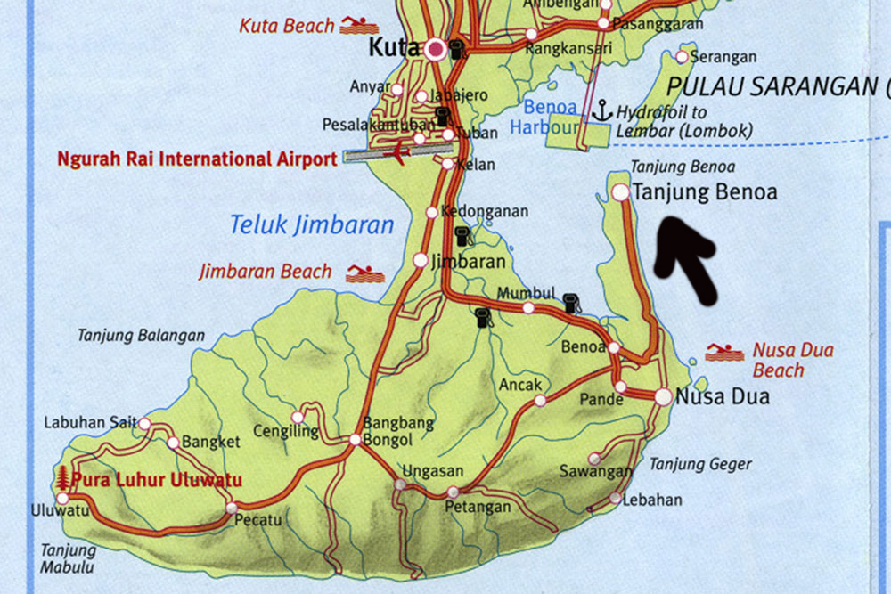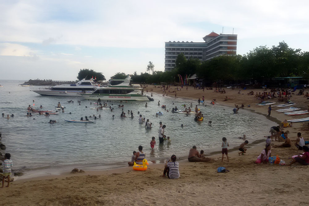 | Mein erstes Ziel ist der Ort Nusa Dua auf einer Halbinsel im Süden von Bali. Es ist ein reiner Touristenort der gehobenen Kategorie bzw. der Luxusklasse und ich will sehen, wie die Reichen und „Schönen“ ihren Urlaub verbringen. |