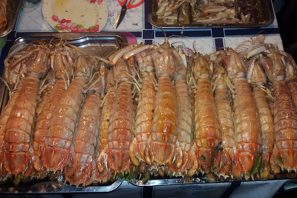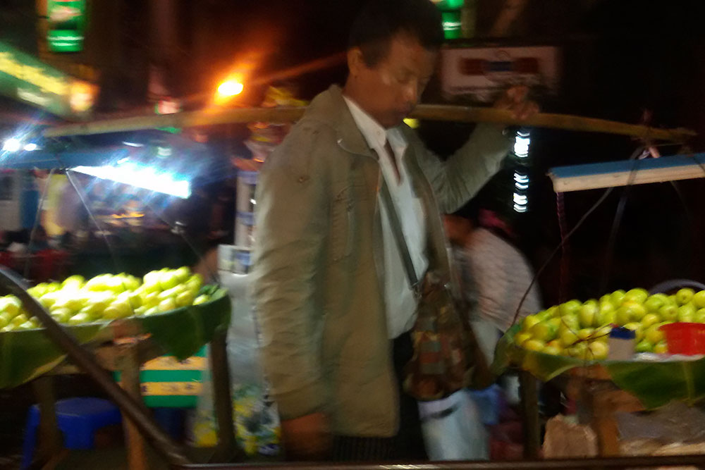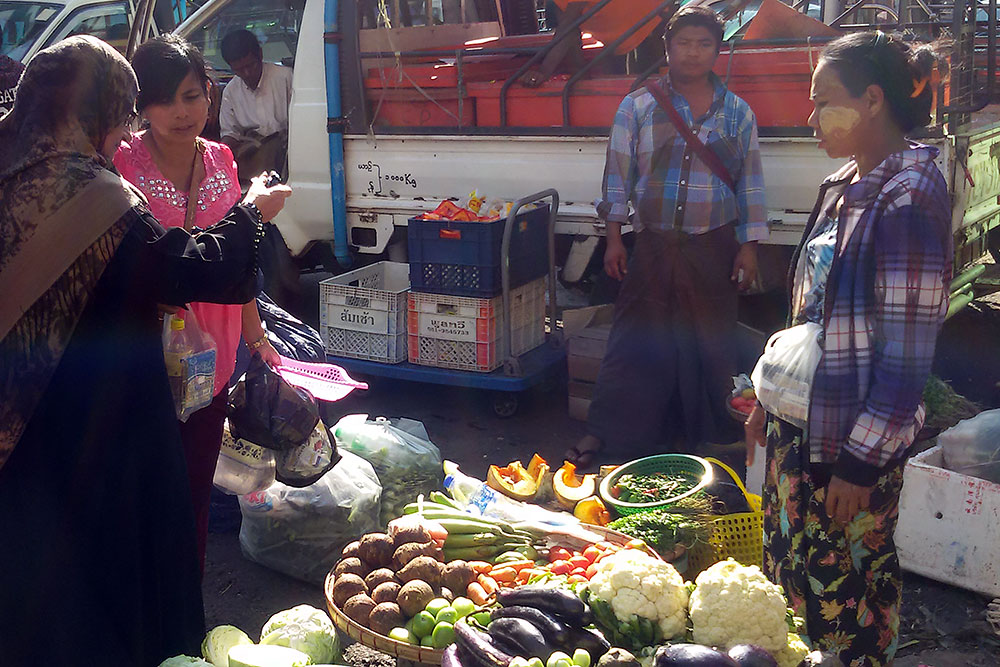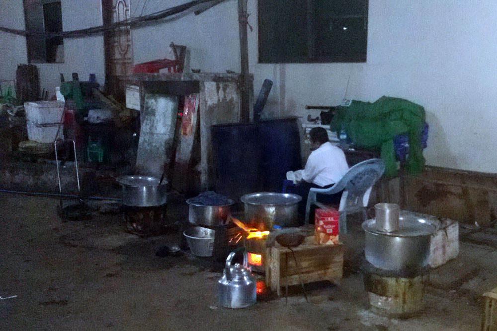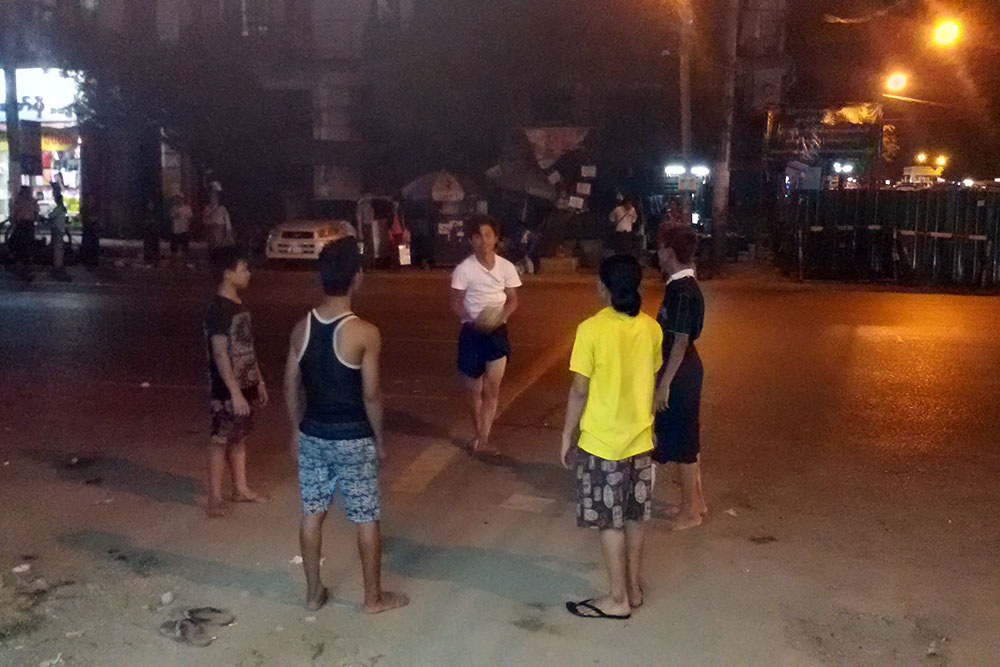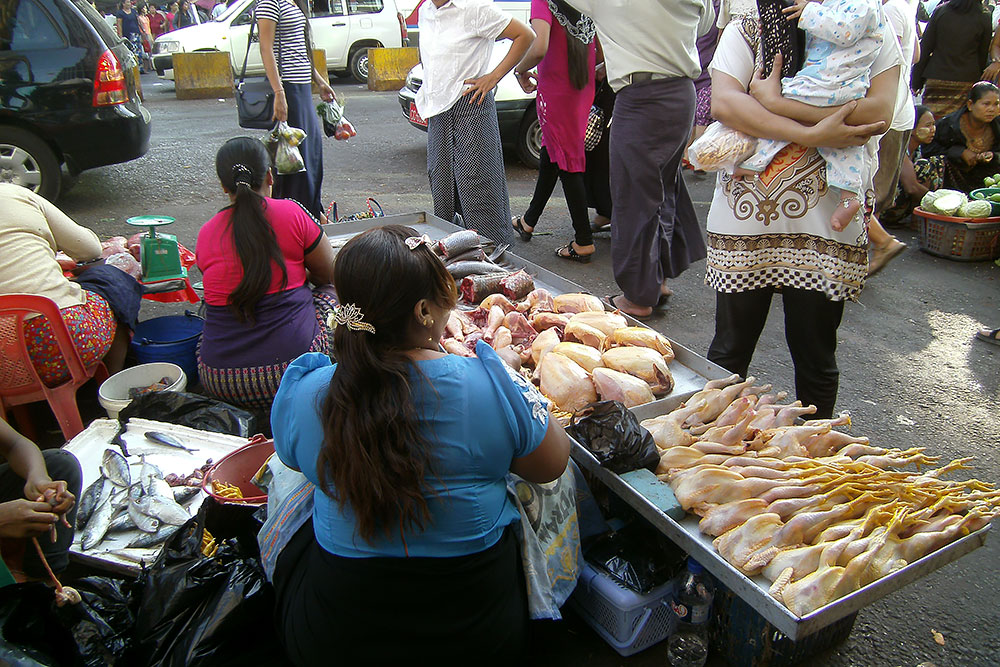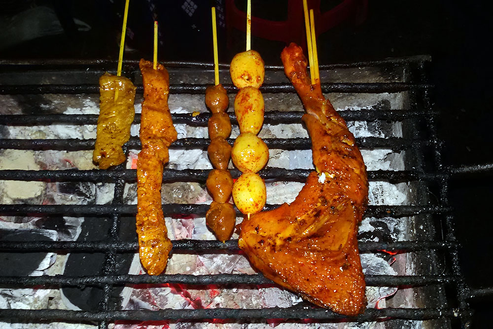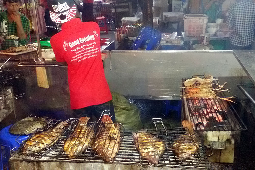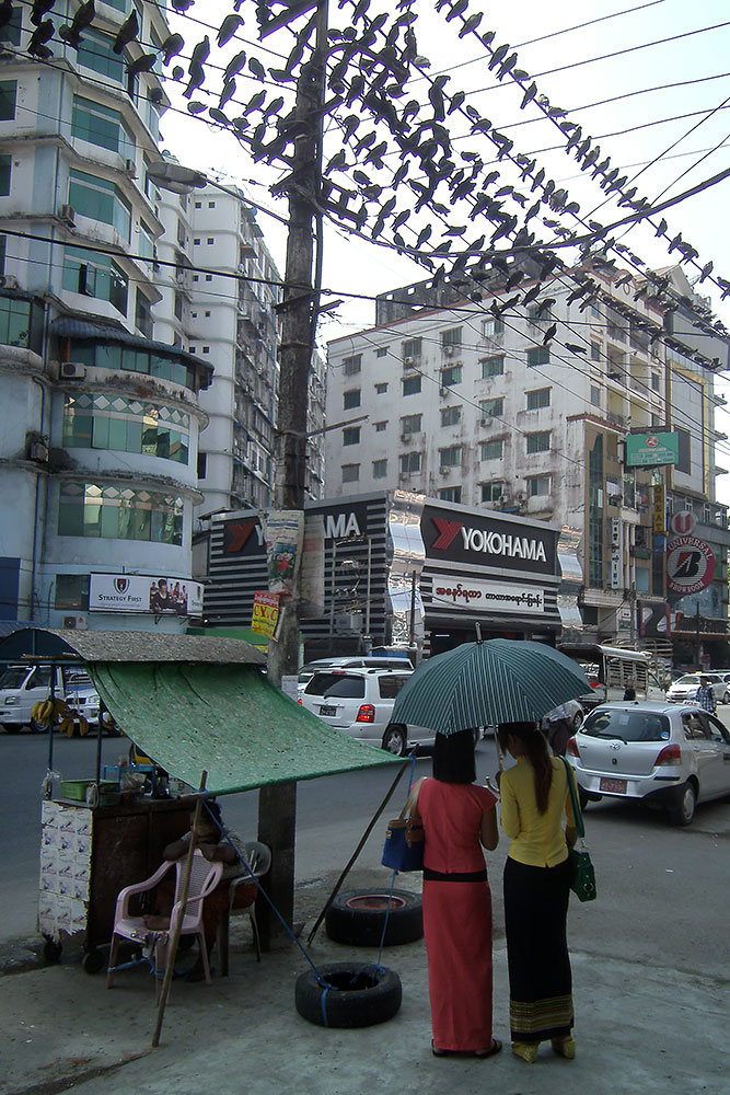 Sport in Myanmar. Der Hunger treibt mich weiter und in einer belebten Straße werde ich sehr lecker satt: |