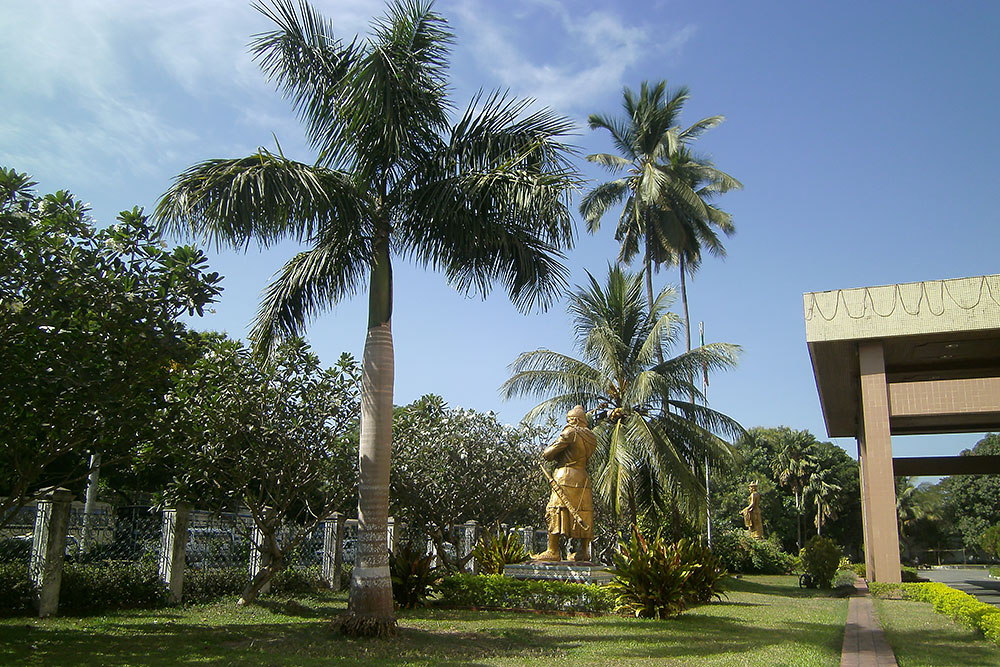 Singuttara-Hügel überragt das Bauwerk die größte Stadt des Landes. Am oberen Ende des südlichen Aufgangs, zwei neun Meter große Wächterfiguren: |